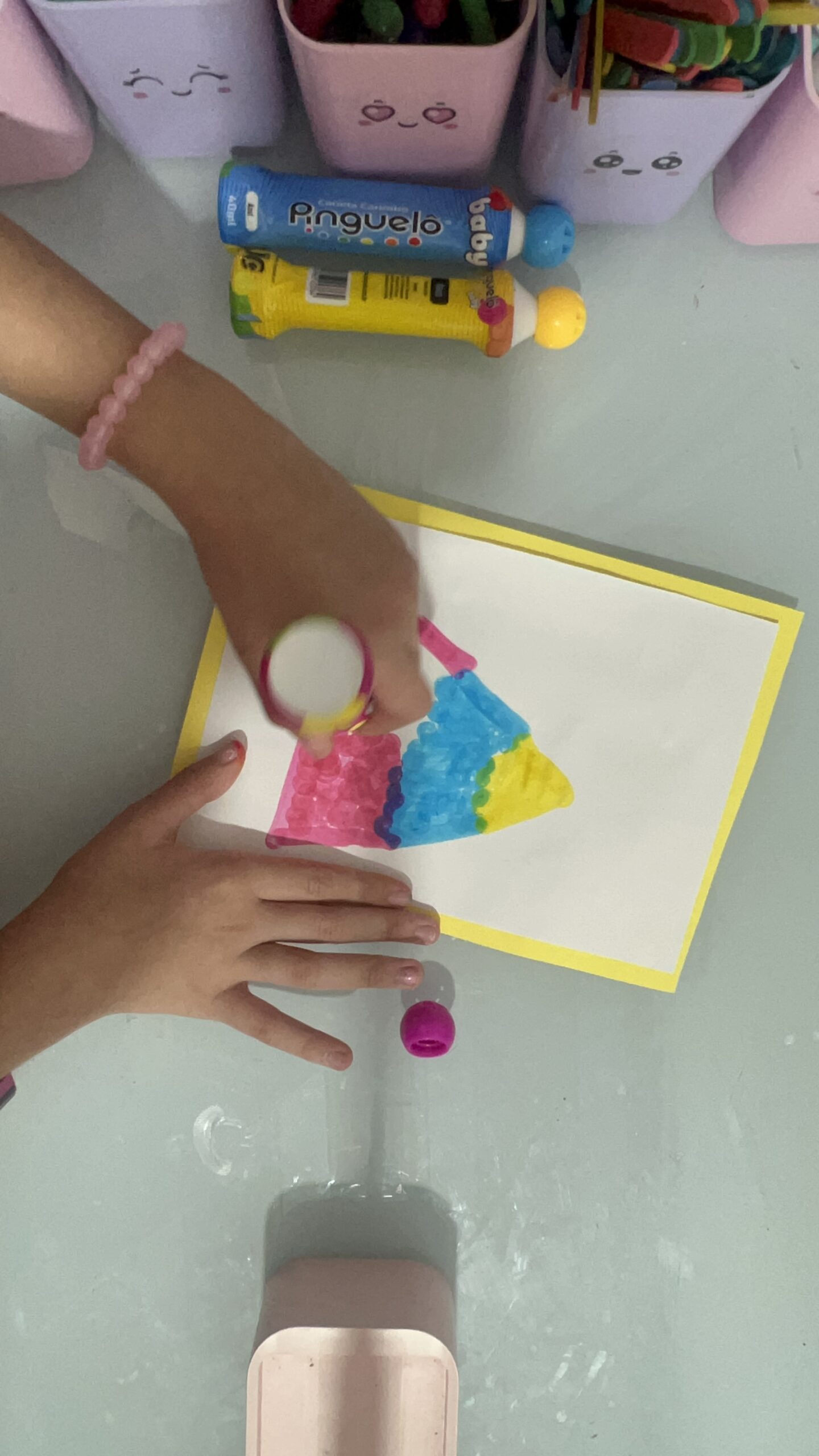 A proposta é simples, mas abre espaço para infinitas possibilidades: cada criança pode criar seu próprio personagem usando apenas as Canetas Carimbo Pinguelô.