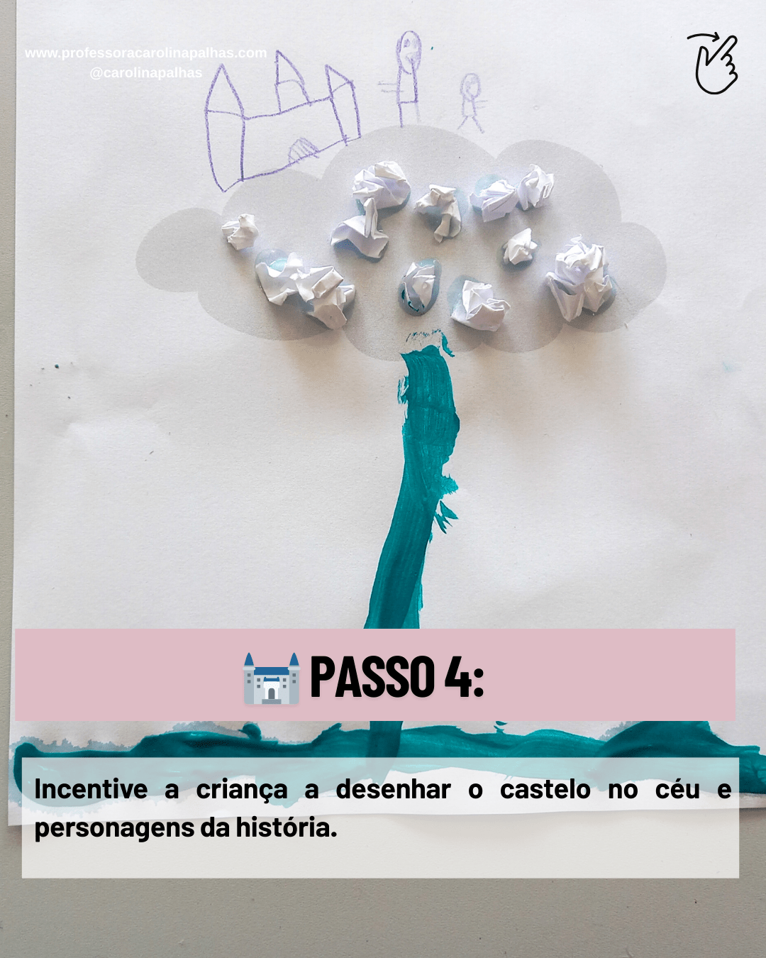 “Incentive a criança a desenhar o castelo no céu e personagens da história.”
