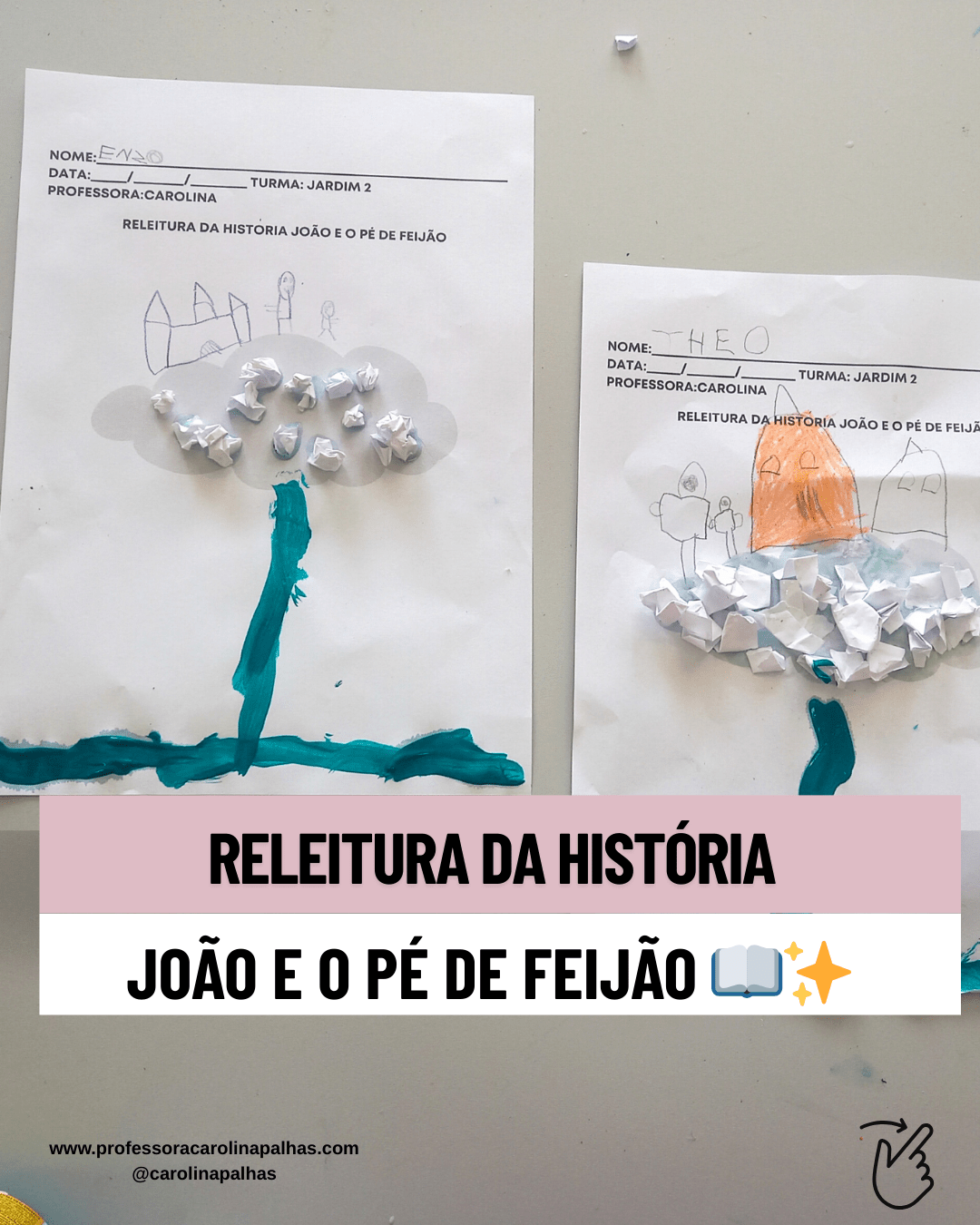 Palavras-chave: releitura João e o Pé de Feijão, atividade de releitura, atividade lúdica, educação infantil, coordenação motora, reconto, atividade com tinta, atividade com papel, atividade de arte, BNCC, criatividade infantil, dica de atividade, atividades práticas para professores, atividade com história infantil