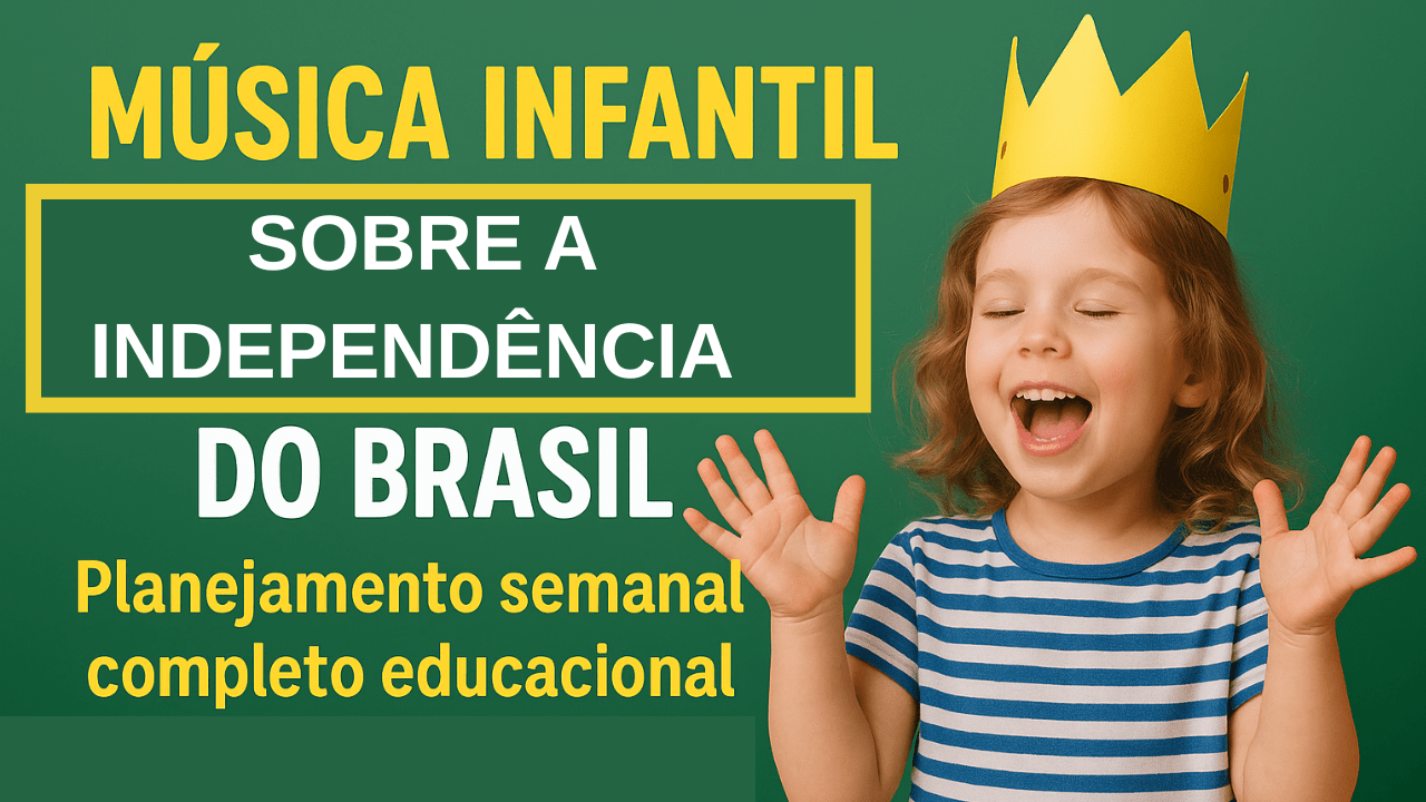 Palavras-chave: música infantil, independência do Brasil, planejamento semanal, atividades lúdicas, educação infantil, Dom Pedro I, BNCC, pedagogia, desenvolvimento infantil, aprendizado divertido, datas comemorativas, história do Brasil, canção educativa, atividades musicais, educação criativa, sala de aula, recursos pedagógicos, música com movimentos, ensino da história, música infantil Brasil