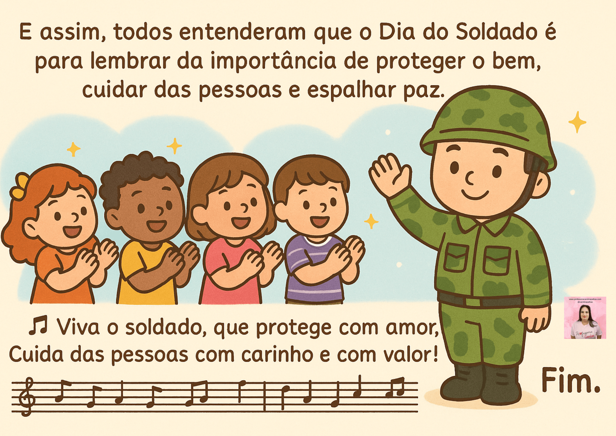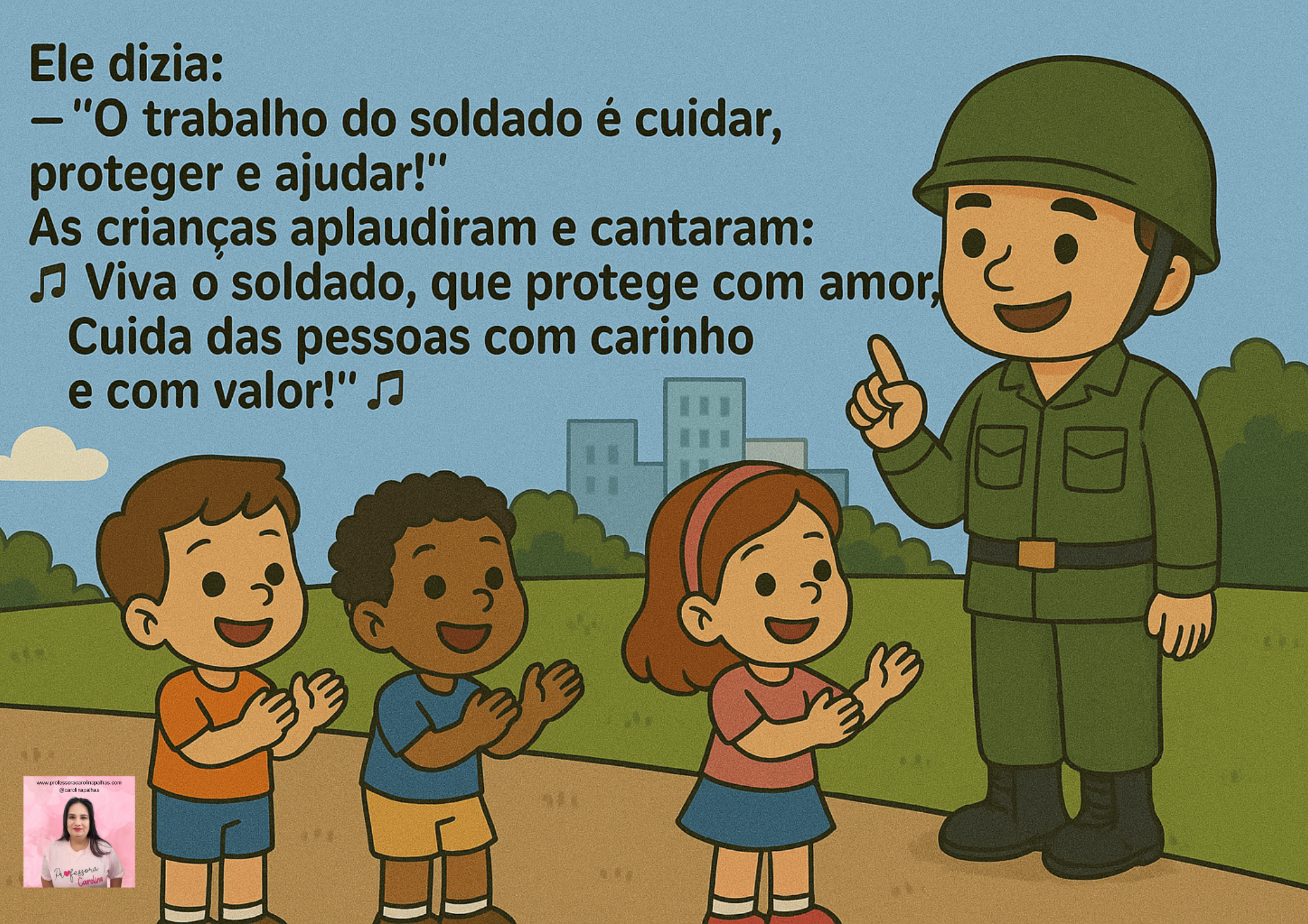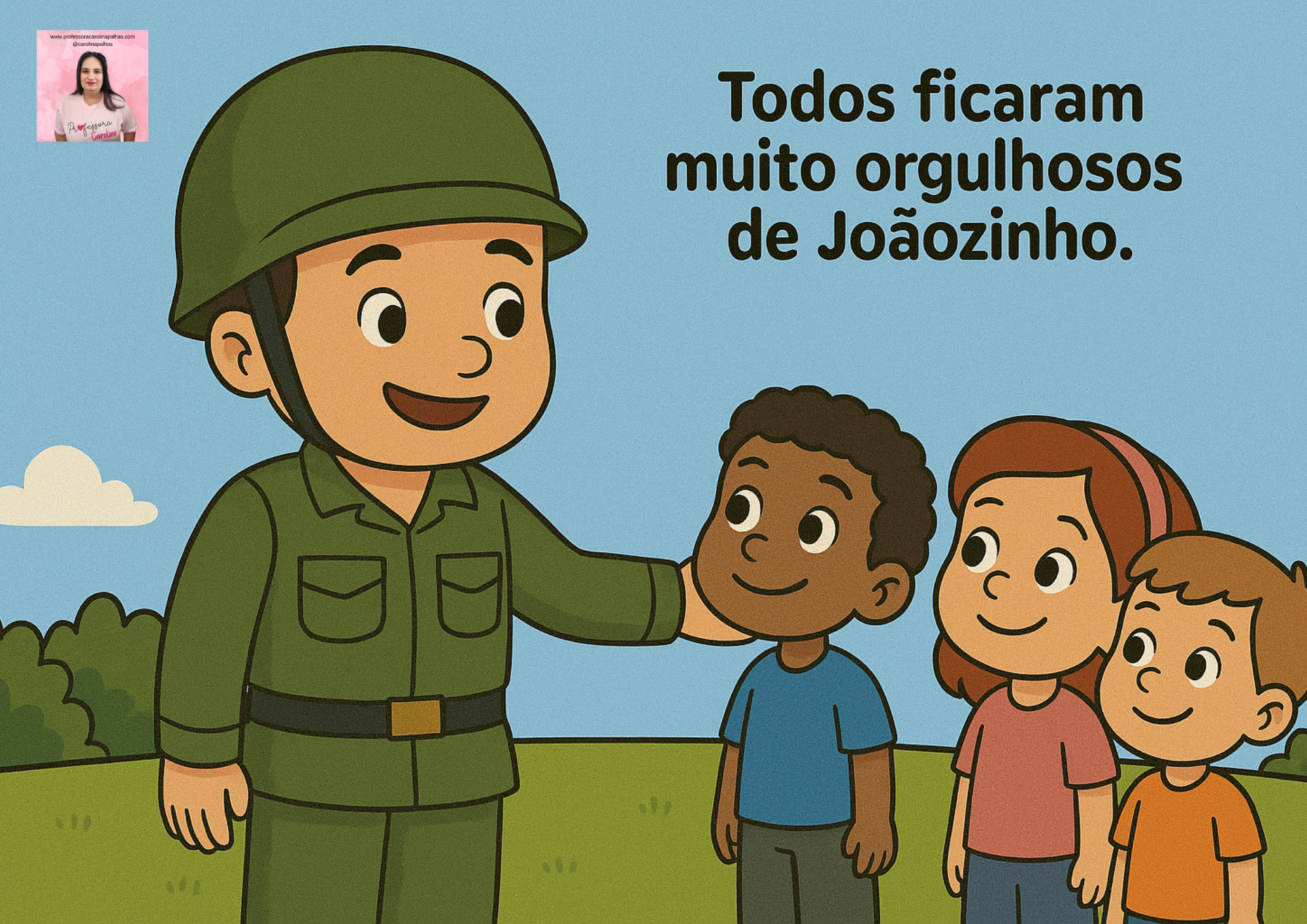 E assim, todos entenderam que o Dia do Soldado é uma data para lembrarmos da importância de proteger o bem, cuidar uns dos outros e espalhar paz.