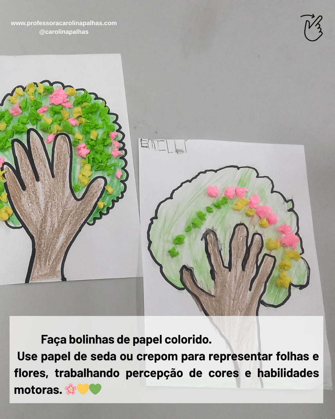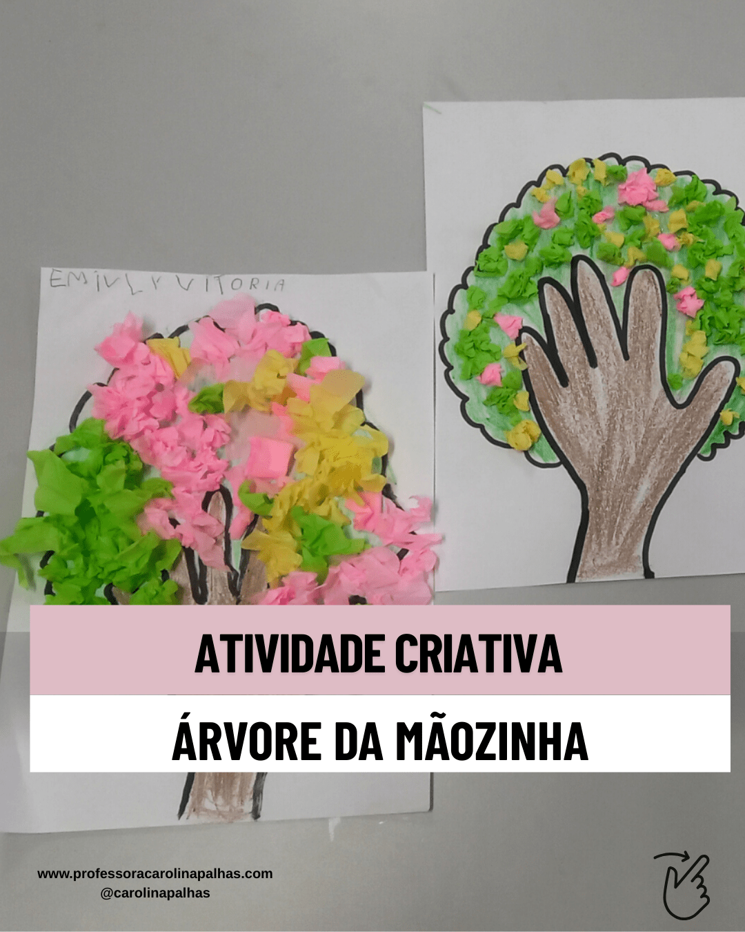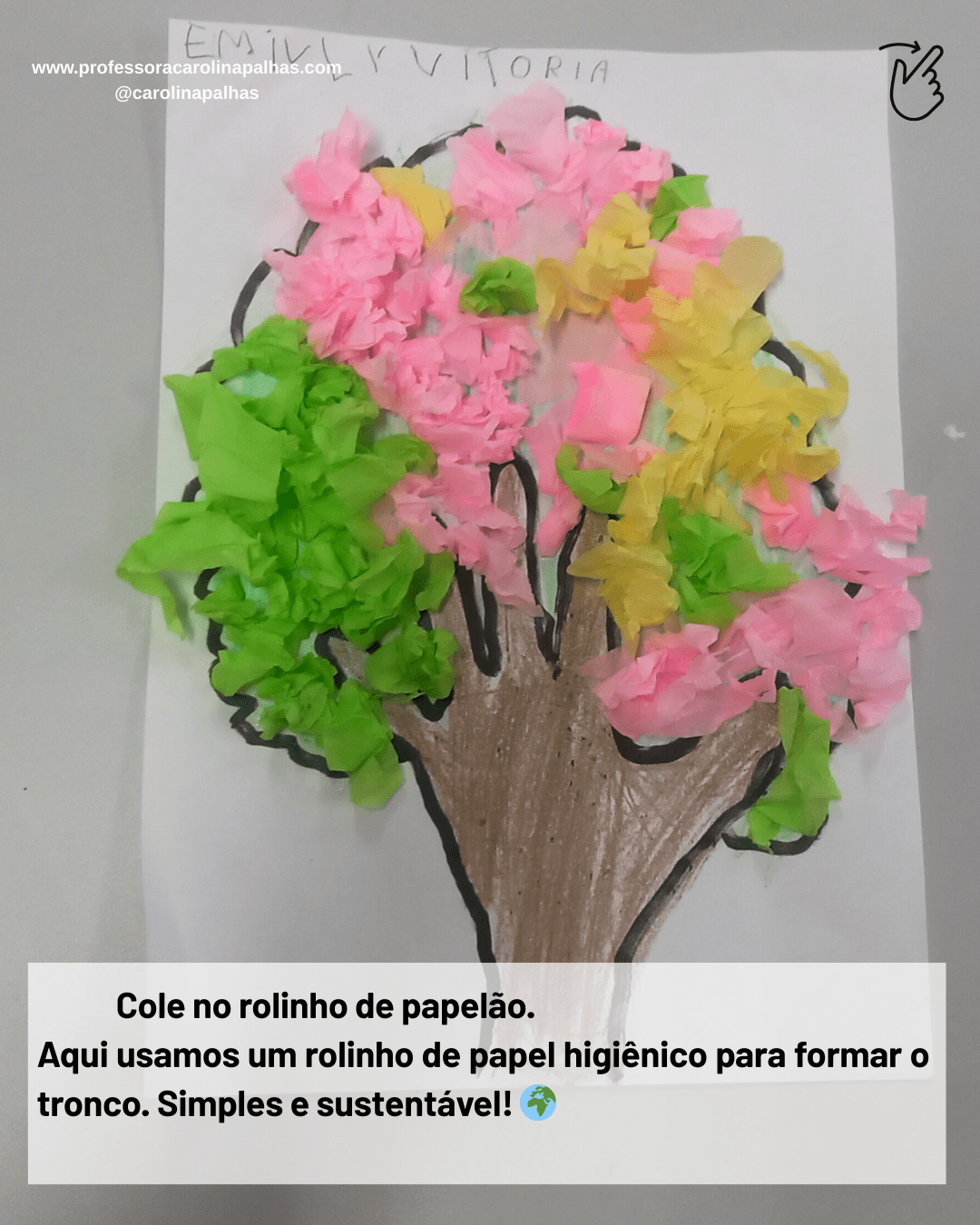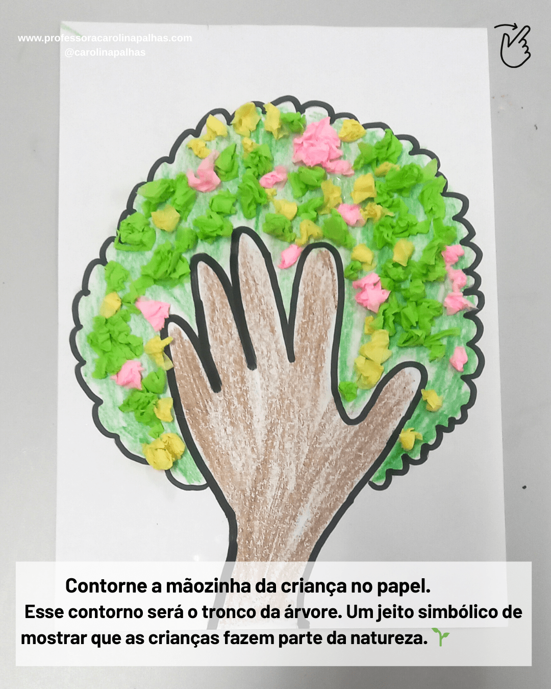 Palavras-chave: árvore da mãozinha, atividade infantil, coordenação motora fina, consciência ambiental, criatividade, educação infantil, atividade pedagógica, arte na infância, BNCC, pedagogia criativa, aprender brincando