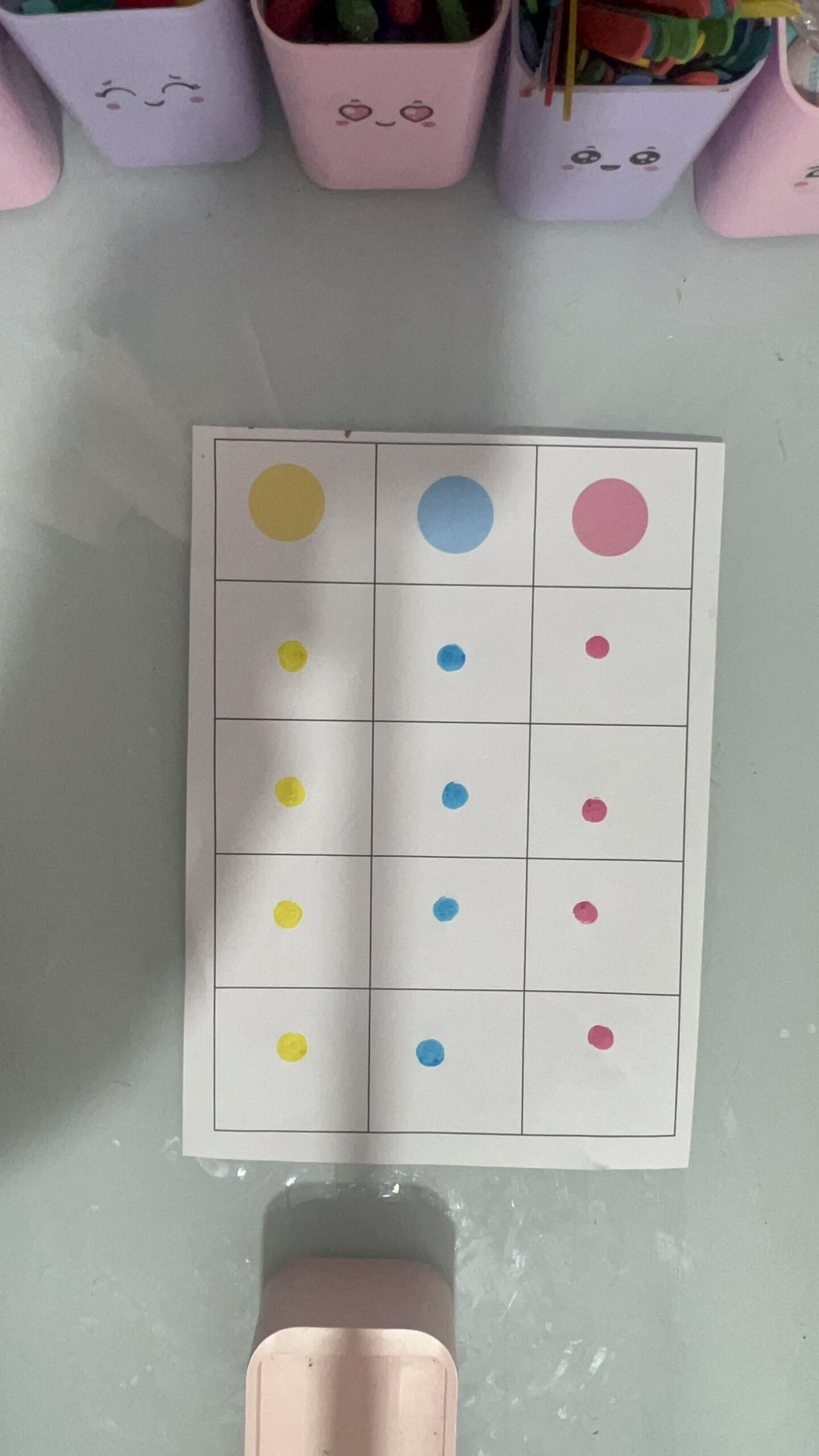 Incentive a criança a completar sozinha, observando e reproduzindo as cores.