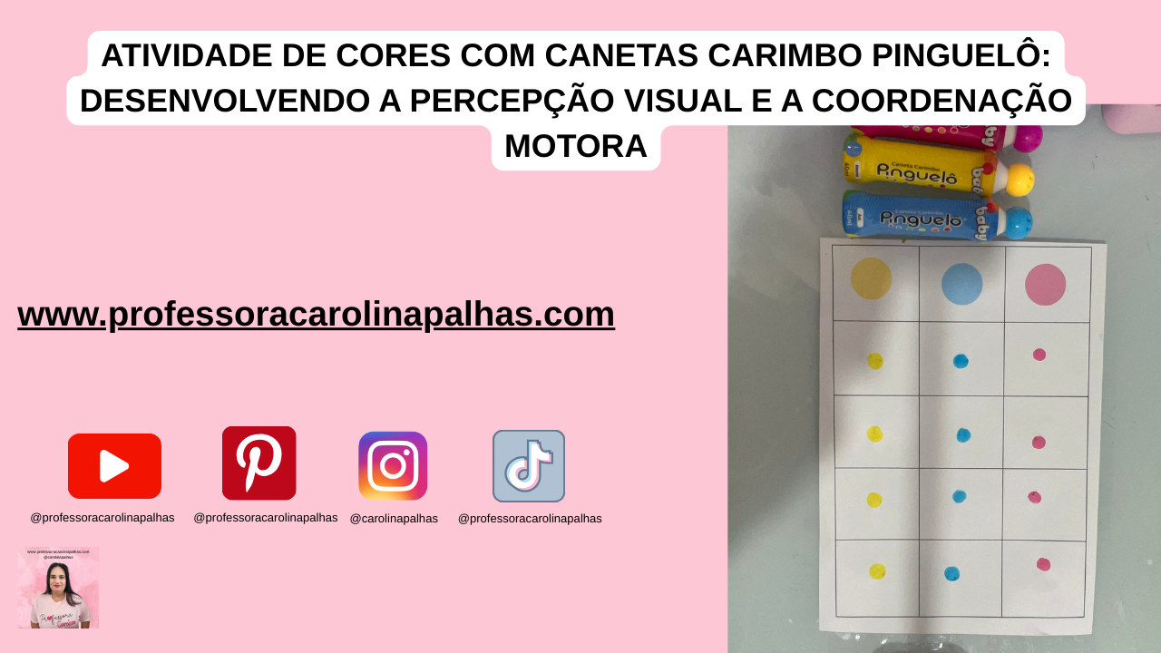 Palavras-chave: Canetas Carimbo Pinguelô, atividade com cores, atividades para educação infantil, coordenação motora fina, percepção visual, educação infantil, aprender brincando, associação de cores, atividades criativas, Shopee, recursos pedagógicos, caneta carimbo infantil, atividades práticas para professores, atividades lúdicas para crianças