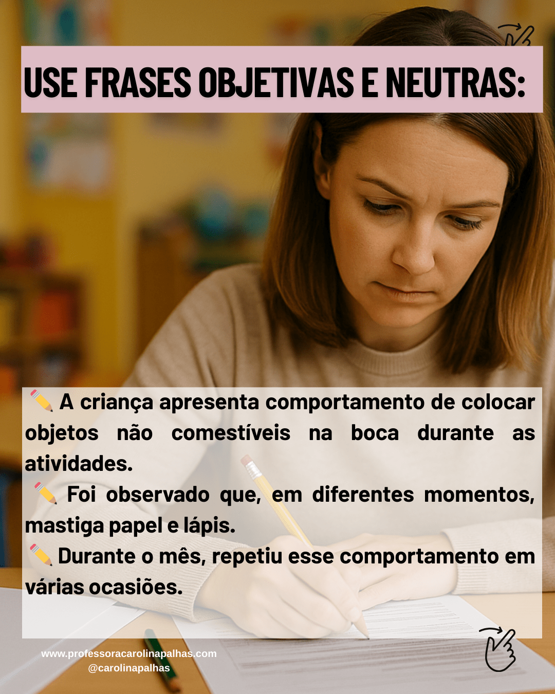 ✏️ “Em diferentes momentos, foi observado mastigar papéis e lápis.”