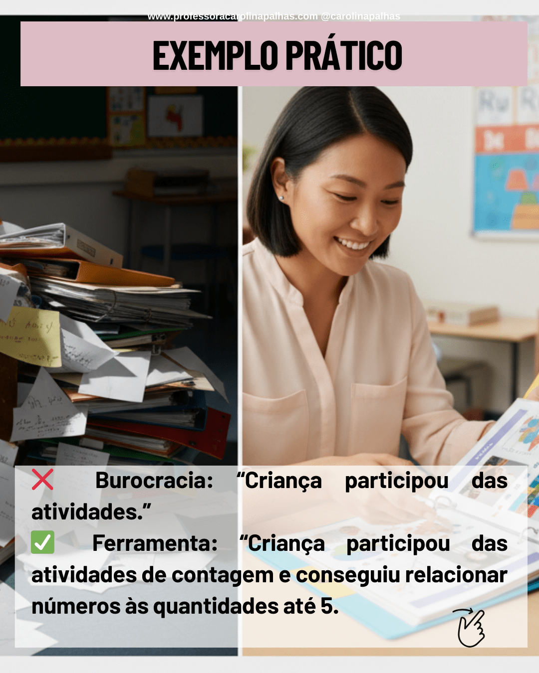 Frases como essa parecem elogiosas, mas não dizem nada sobre as conquistas específicas, os avanços reais ou as necessidades da criança. Pais e responsáveis não conseguem enxergar o desenvolvimento do filho, e o professor perde a oportunidade de refletir sobre sua prática.