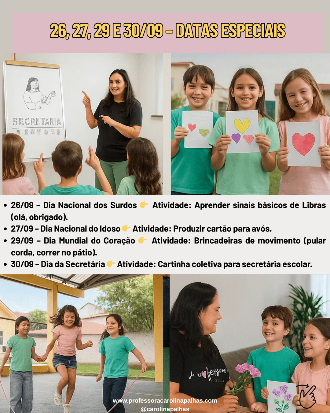 ✅ Sugestões de atividades lúdicas para cada data comemorativa de setembro.