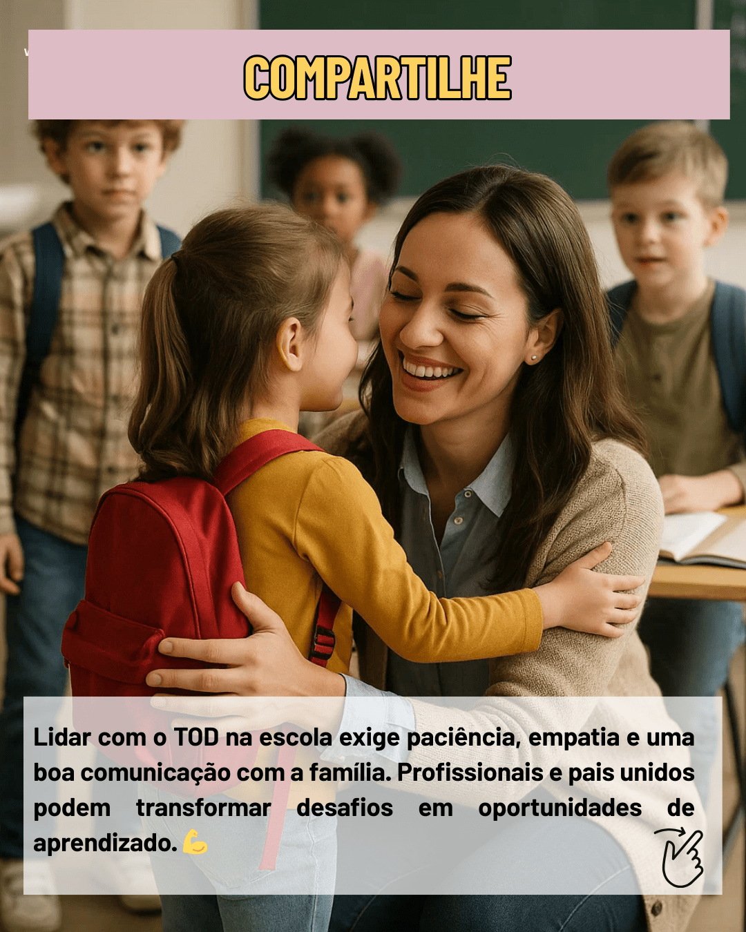 💜 “Lidar com o TOD na escola exige paciência, empatia e comunicação com a família. Juntos, pais, professores e profissionais podem transformar desafios em oportunidades de aprendizado.”