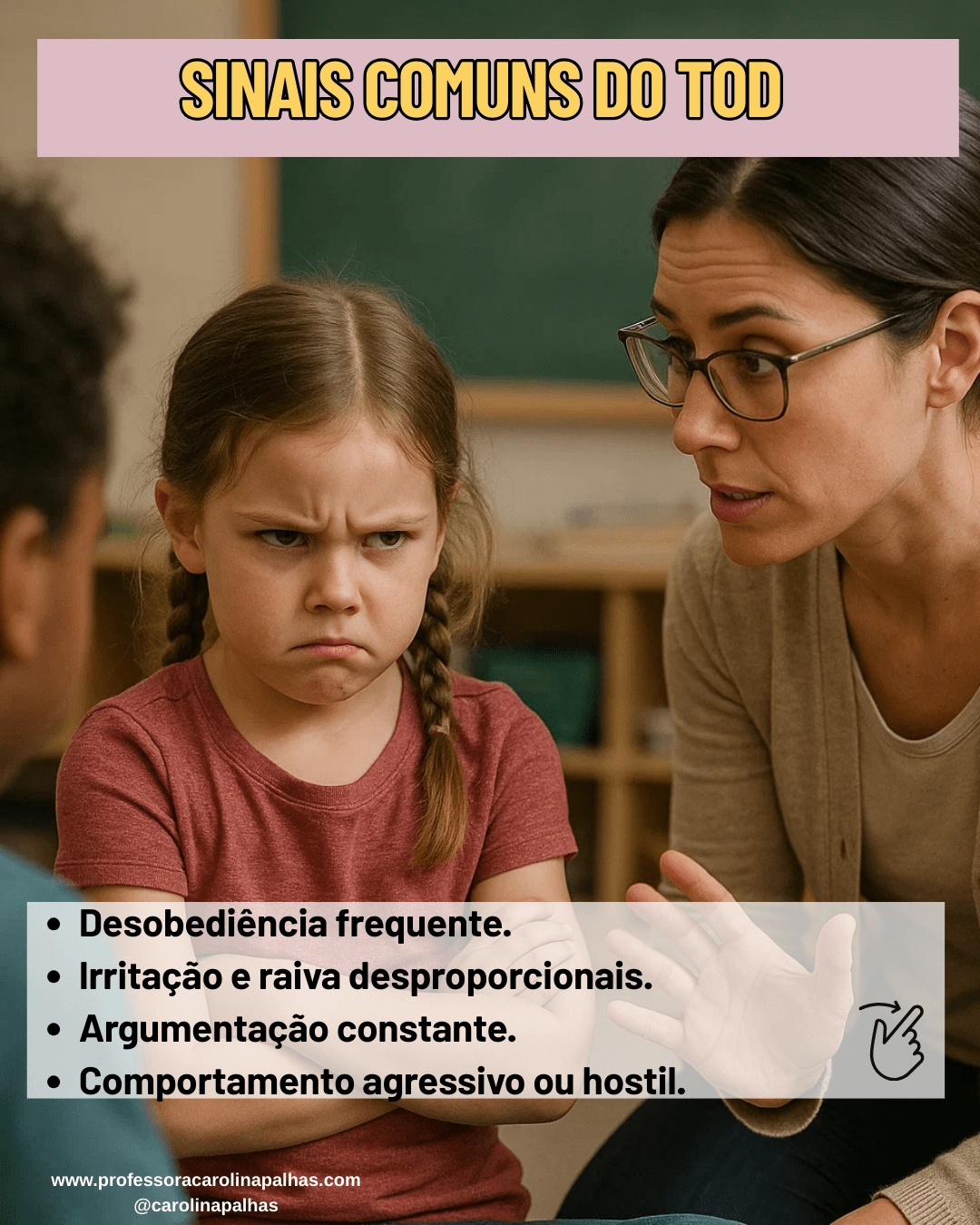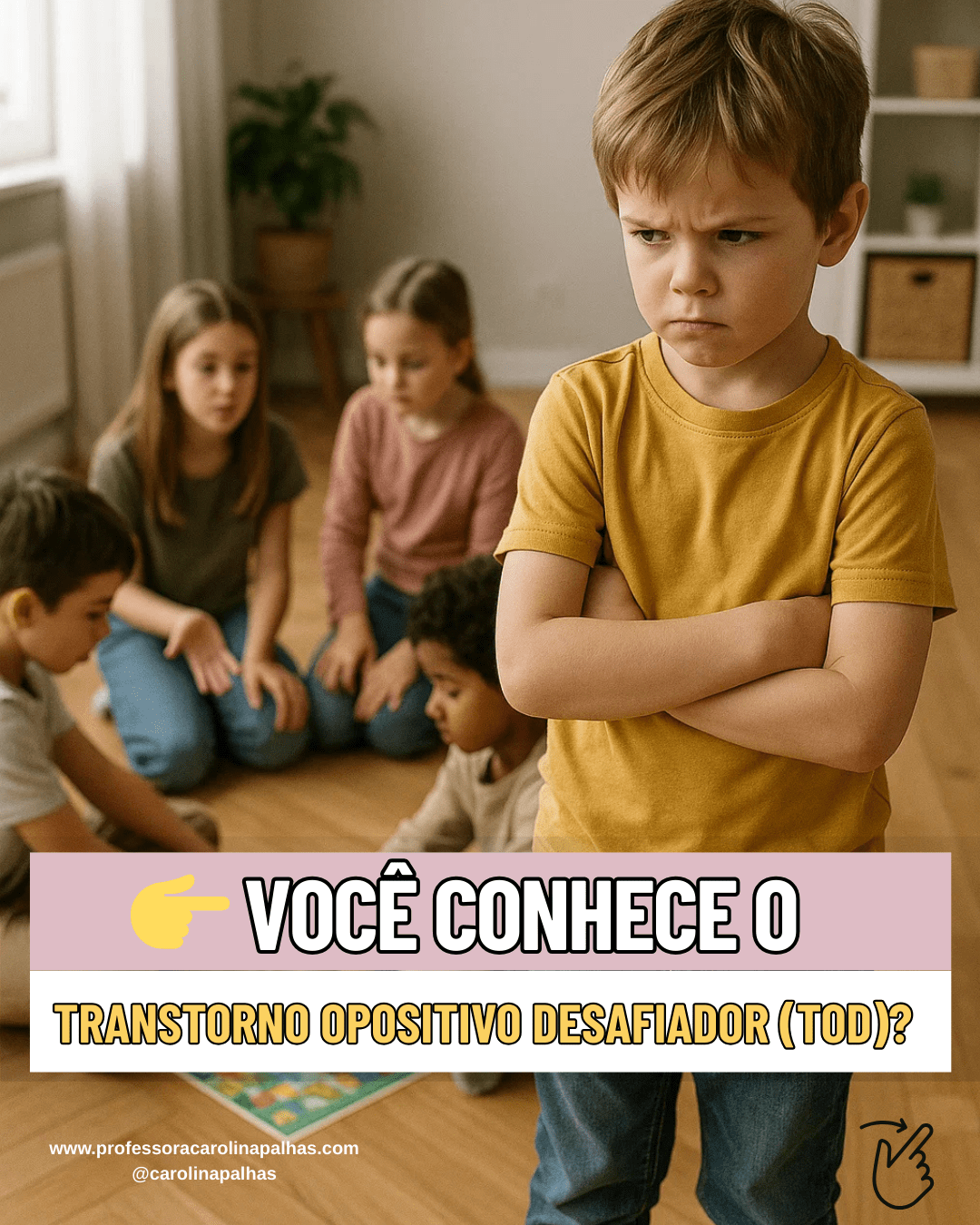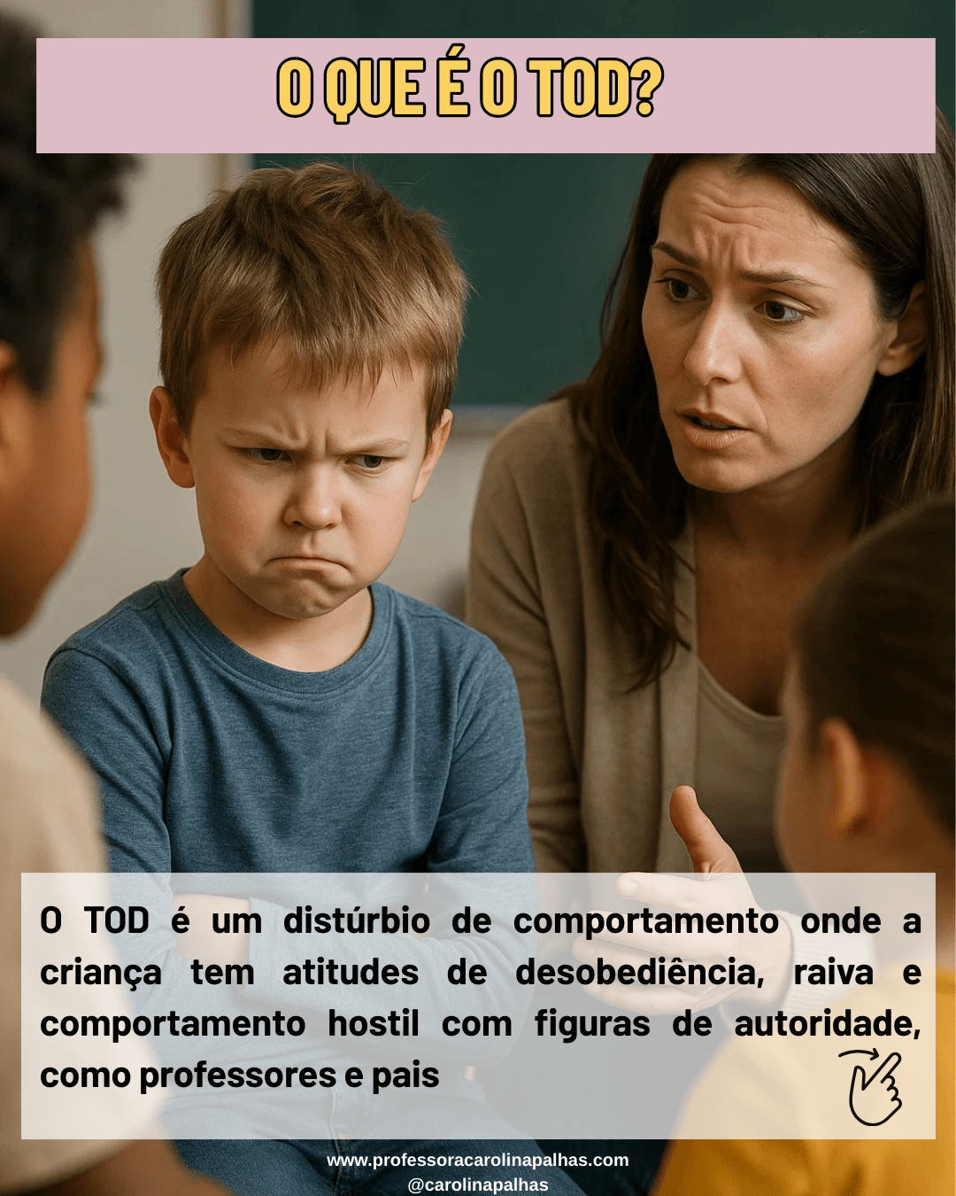 Palavras-chave: Transtorno Opositivo Desafiador, TOD, sintomas TOD, TOD em crianças, diagnóstico TOD, tratamento TOD, atividades TOD, estratégias pedagógicas, relatório escolar, como agir com TOD, TEA e TOD, Síndrome de Down e TOD, educação infantil, comportamento desafiador, práticas pedagógicas, desenvolvimento infantil, BNCC, psicologia infantil, psicopedagogia, sala de aula, professores educação infantil
