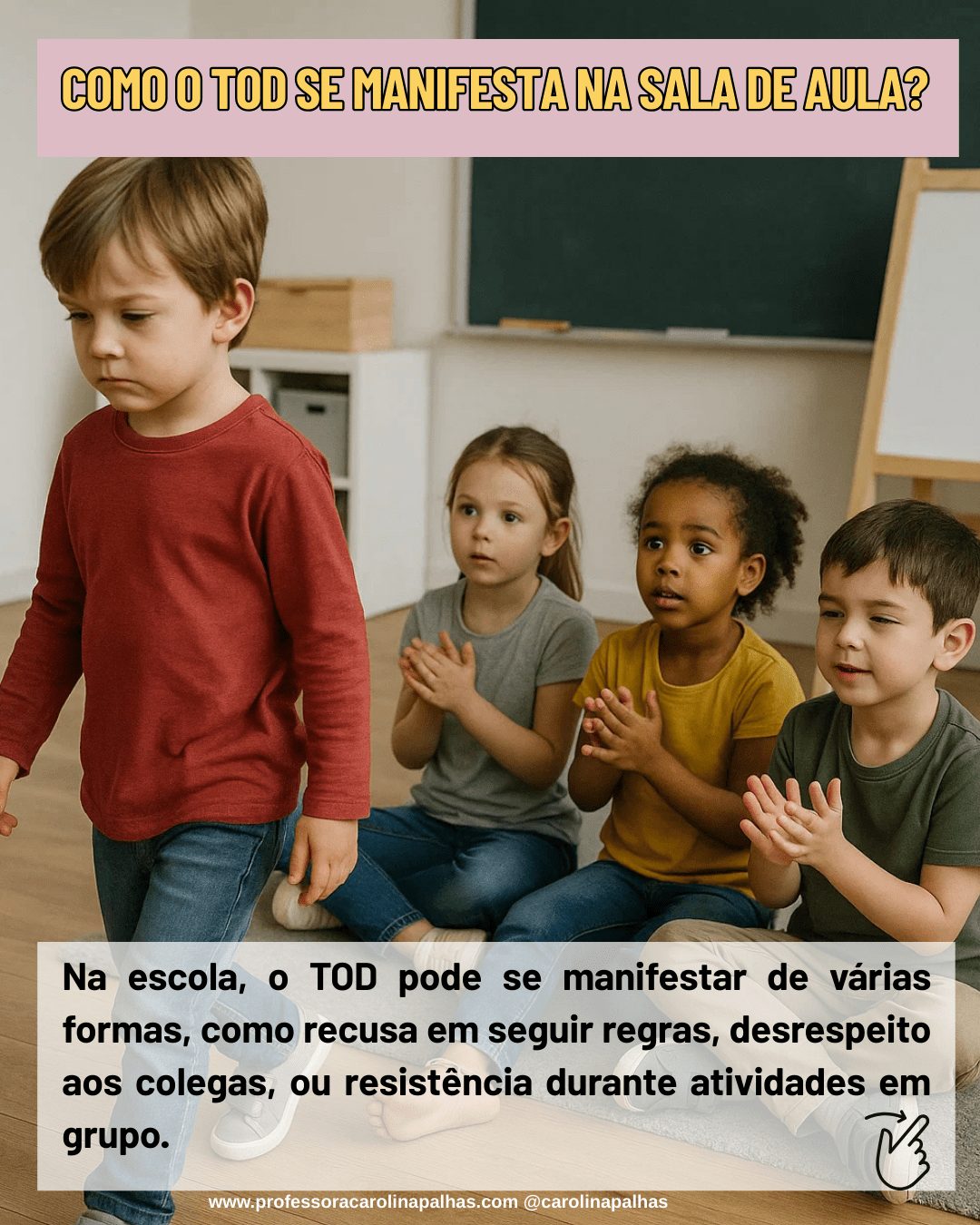 O ambiente escolar é um dos locais em que o TOD mais se manifesta, porque envolve regras, limites, convivência social e figuras de autoridade (professores).
