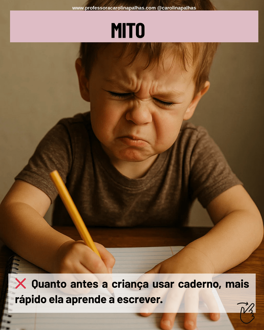 Mito 1: Quanto antes a criança usar caderno, mais rápido aprende a escrever