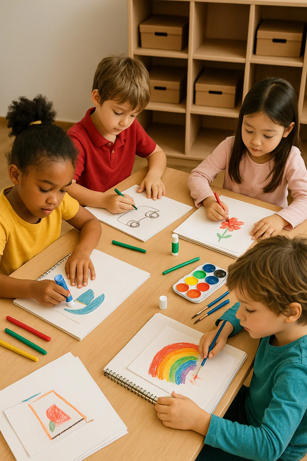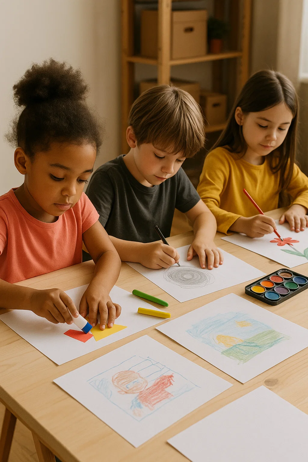 - Atividades de desenho livre ou dirigido – permite explorar traços, cores e formas.