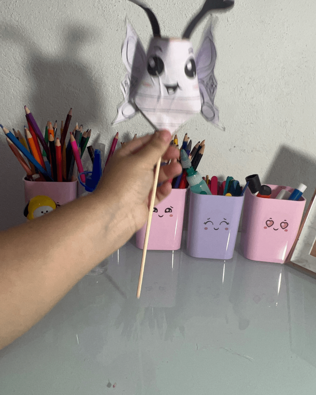 - Materiais: As borboletas de palito prontas.