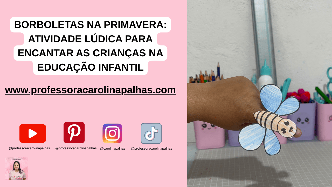 Palavras-chave: borboleta, primavera, atividade infantil, BNCC, educação infantil, planejamento pedagógico, criatividade, coordenação motora, natureza, aprendizagem lúdica