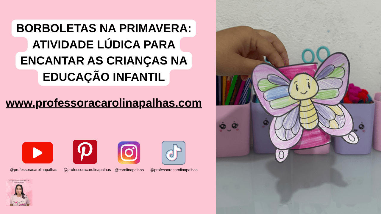 Palavras-chave: borboleta, primavera, atividade infantil, BNCC, educação infantil, planejamento pedagógico, criatividade, coordenação motora, natureza, aprendizagem lúdica