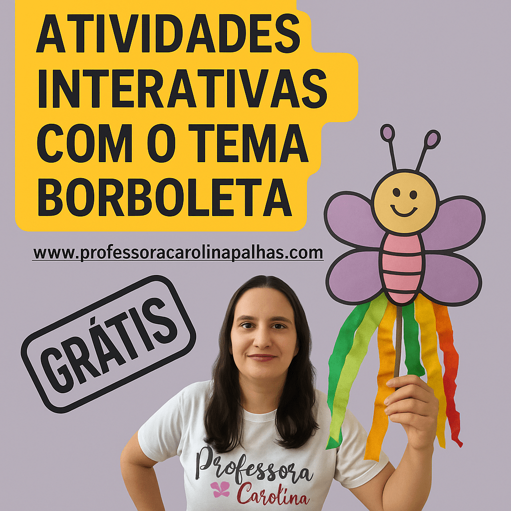 Palavras-chave: atividades com borboleta, educação infantil, atividades interativas, atividades lúdicas, borboleta, primavera, coordenação motora, BNCC, planejamento semanal, pedagogia, atividades grátis, professora carolina palhas, sala de aula criativa, brincadeiras infantis, artes visuais, atividades para imprimir