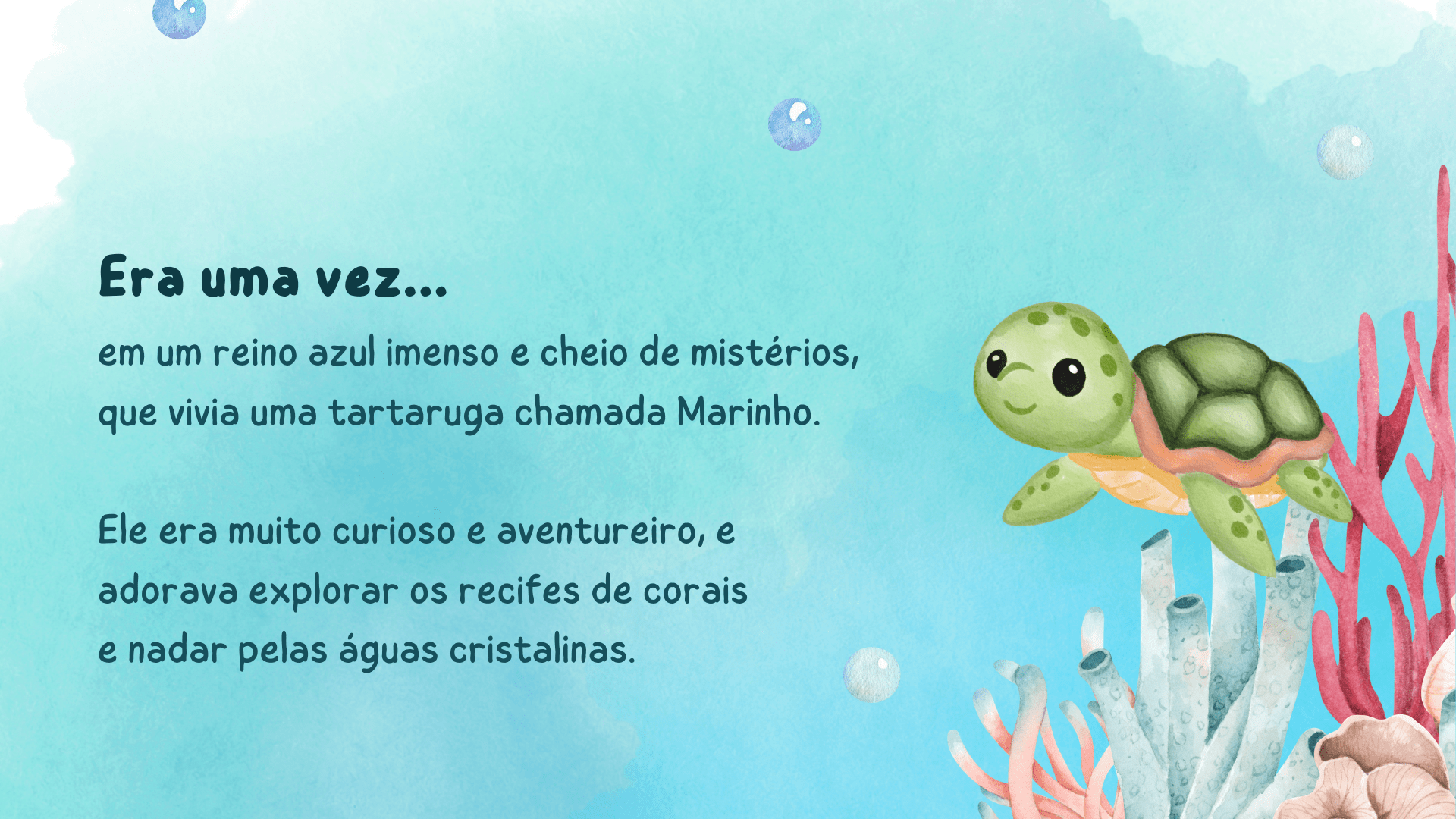 A história “Os Oceanos: Vamos Proteger Nossa Casa”, que também tem uma versão em vídeo no YouTube, é um recurso encantador para iniciar esse diálogo. Por meio da tartaruguinha Marinho e da arraia Coralina, as crianças mergulham em um mundo colorido e cheio de vida, aprendendo que o oceano não é apenas o lar de inúmeros animais, mas também essencial para a sobrevivência de todos nós.