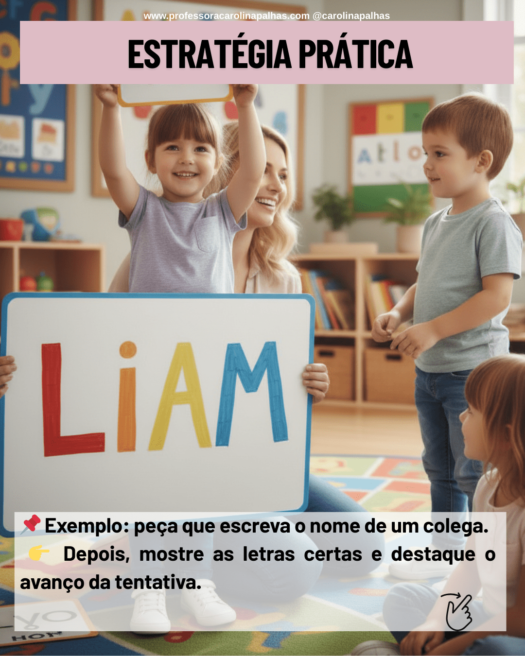 - A Ponte entre o Conhecido e o Novo: Depois que ela tentar, mostre o nome correto do colega em um crachá ou cartaz. Compare as letras. Ajude-a a perceber que “João” começa com J e termina com O, por exemplo.