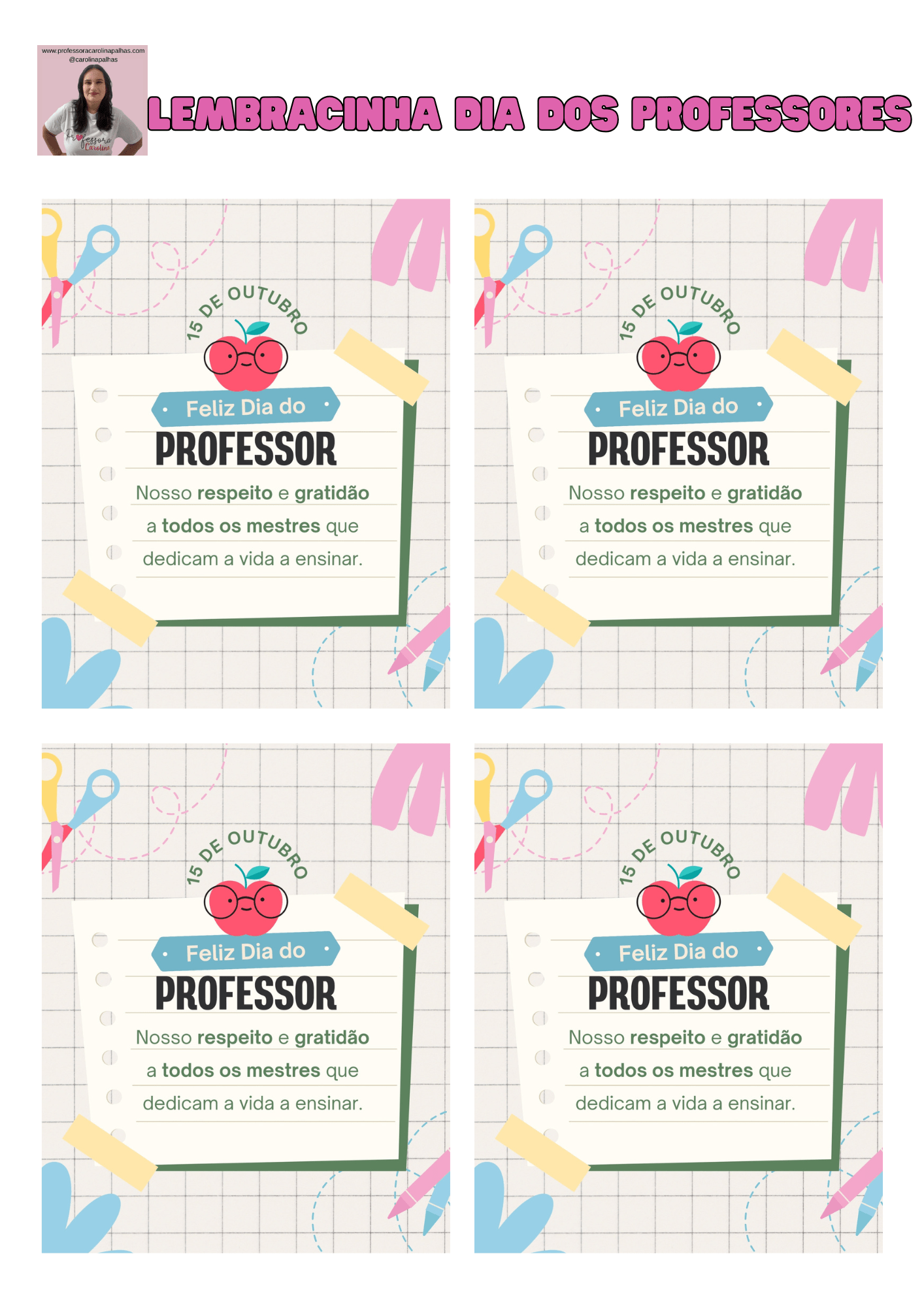 Palavras-chave: Dia dos Professores, cartões lembrança, lembrancinha educativa, gratidão, homenagem ao professor, amor pela educação, criatividade infantil, gesto de carinho, BNCC, educação infantil, lembrança simples, professora Carolina Palhas