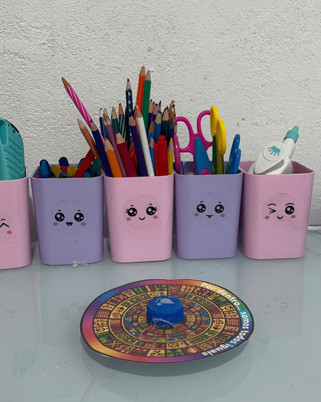 “Assim como as cores giram e se misturam, nossa sala é cheia de pessoas diferentes, e todas juntas formam algo bonito!”