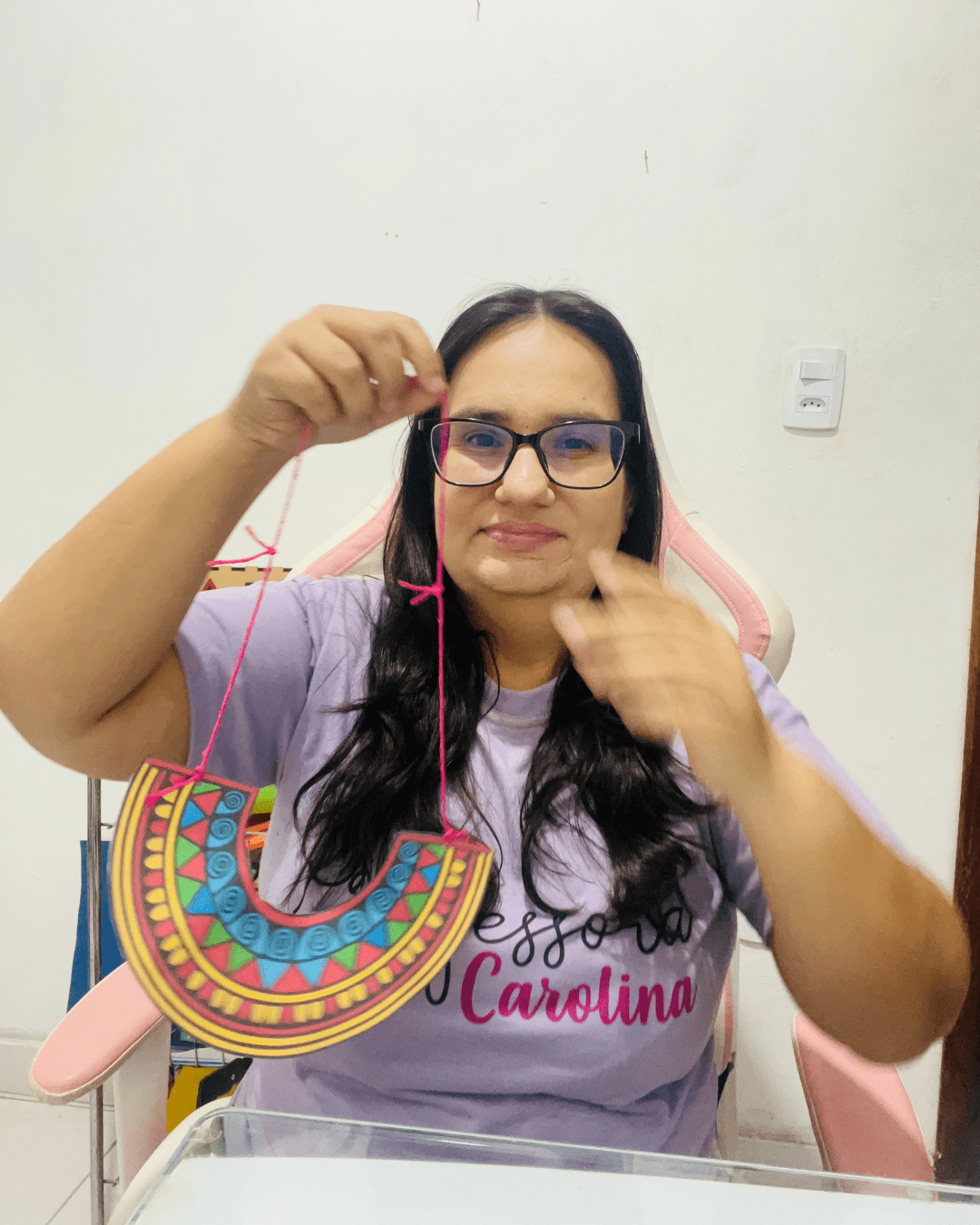 📸 Exposição na sala — montar um mural com todos os colares e fotos das crianças usando suas criações.