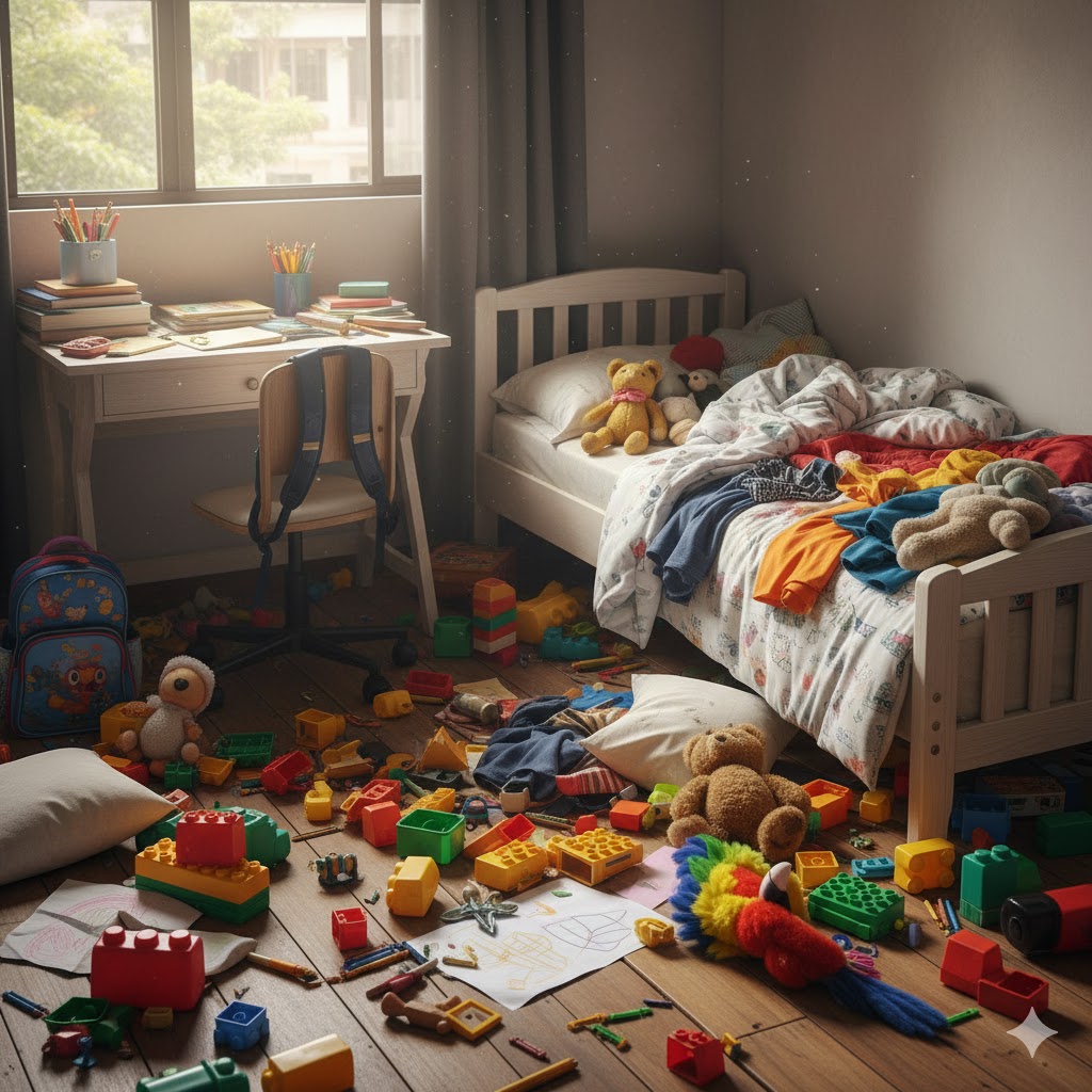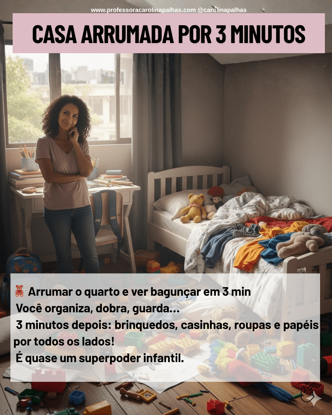 🧸 3. ARRUMAR O QUARTO E VER BAGUNÇAR EM 3 MINUTOS