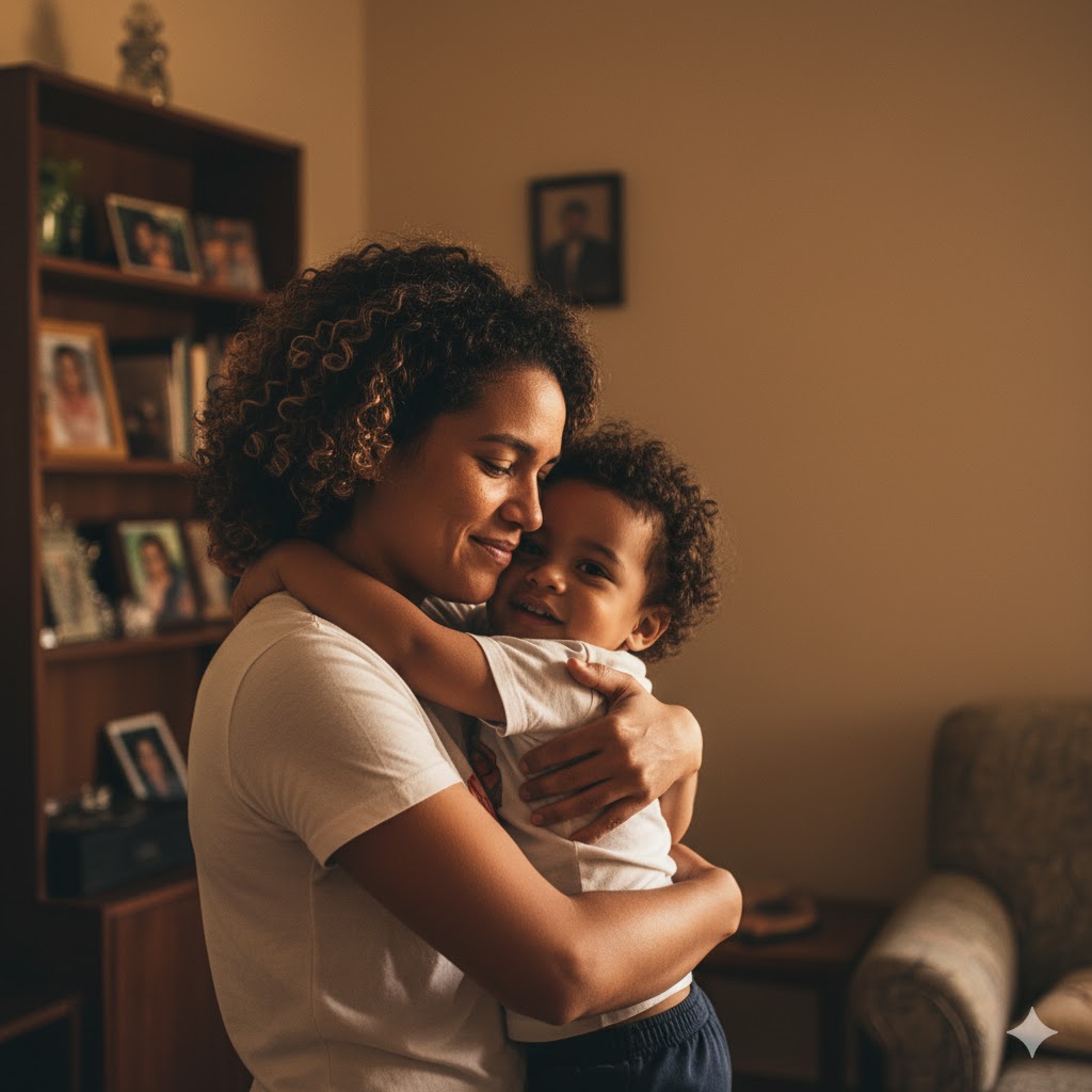 A maternidade real é feita de momentos simples — o café frio, o abraço apertado, o bilhete rabiscado dizendo “te amo, mamãe”.