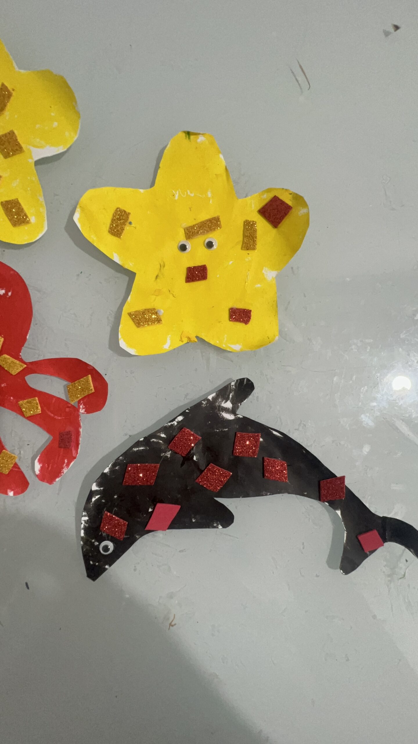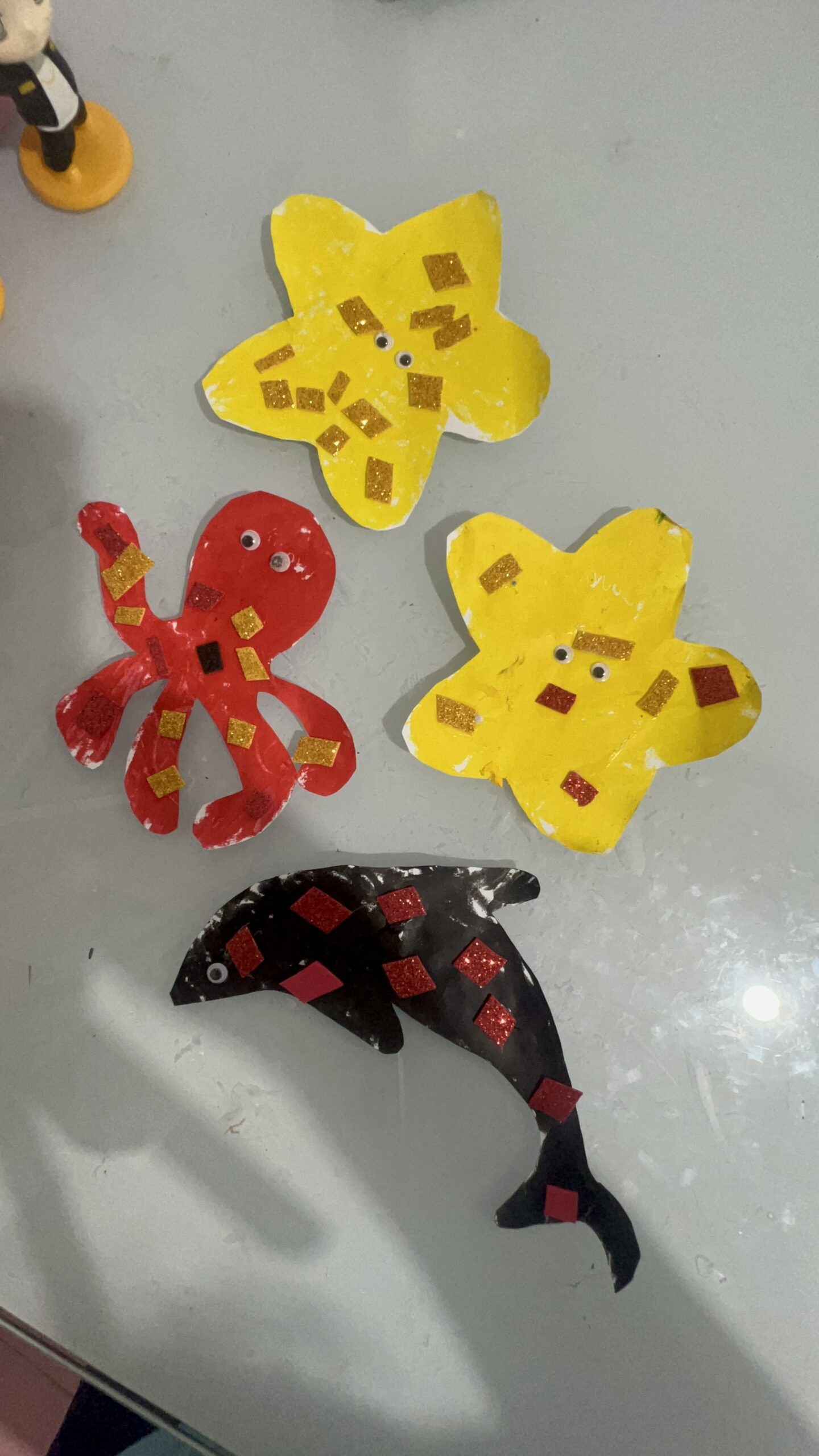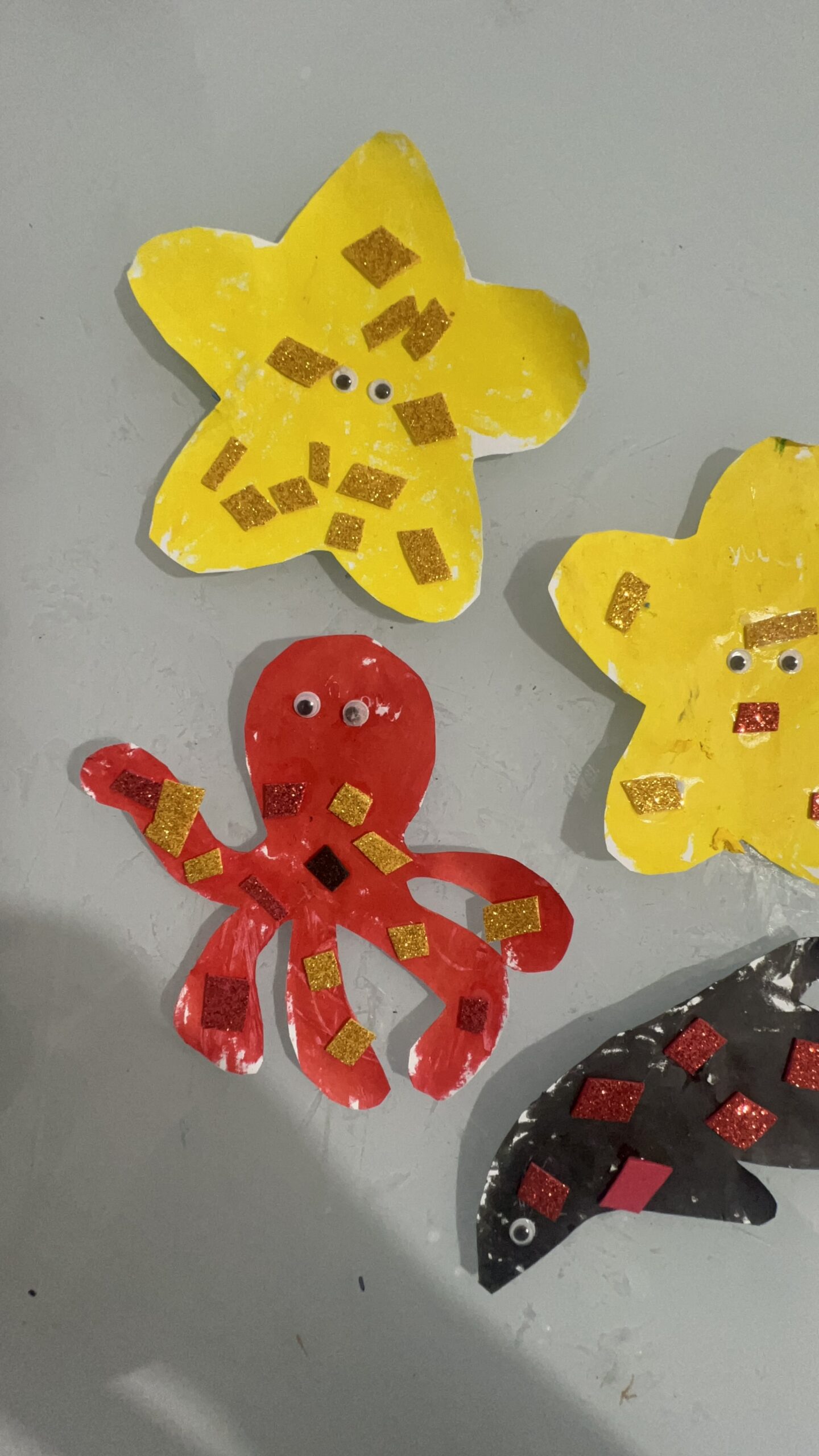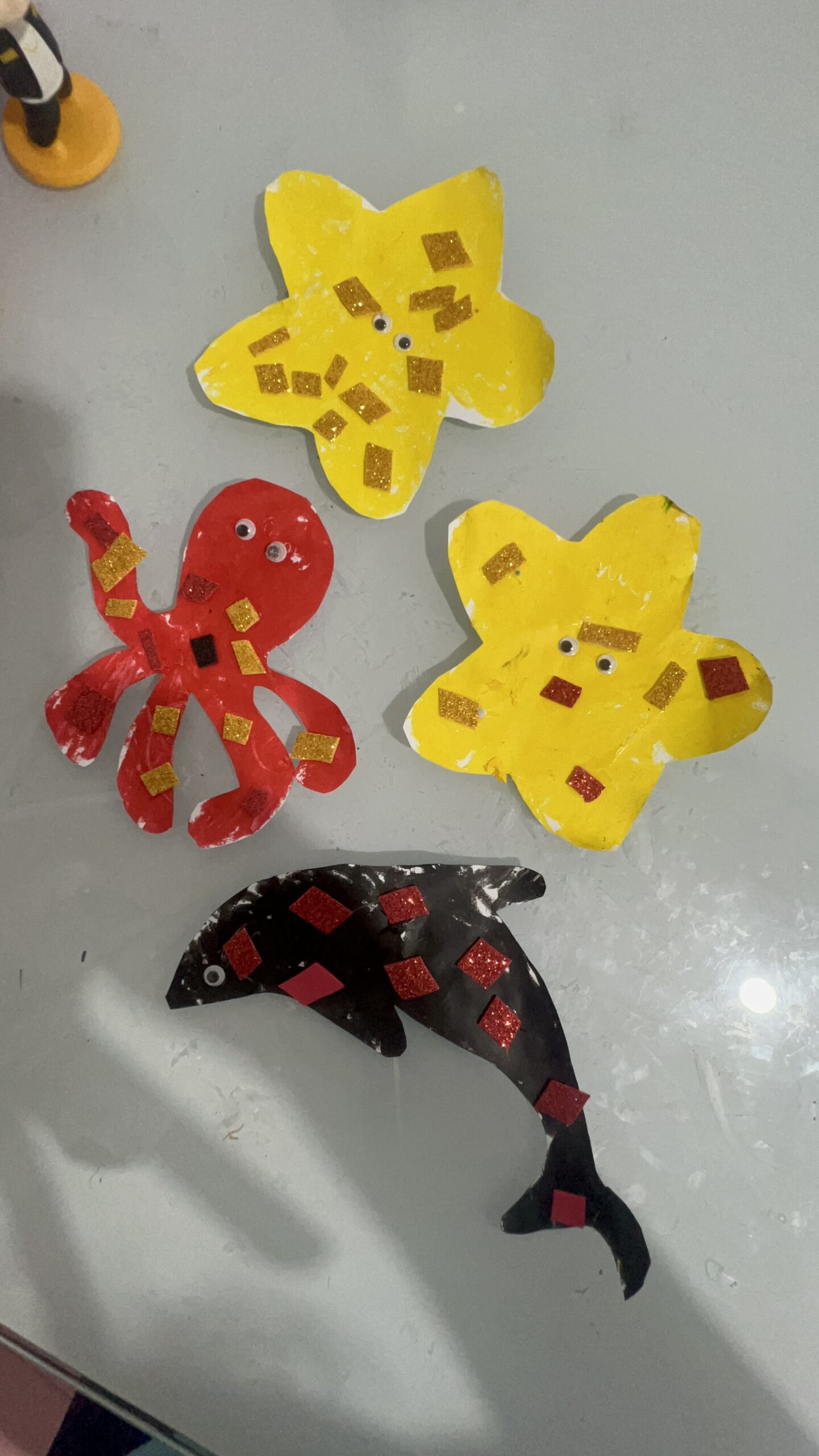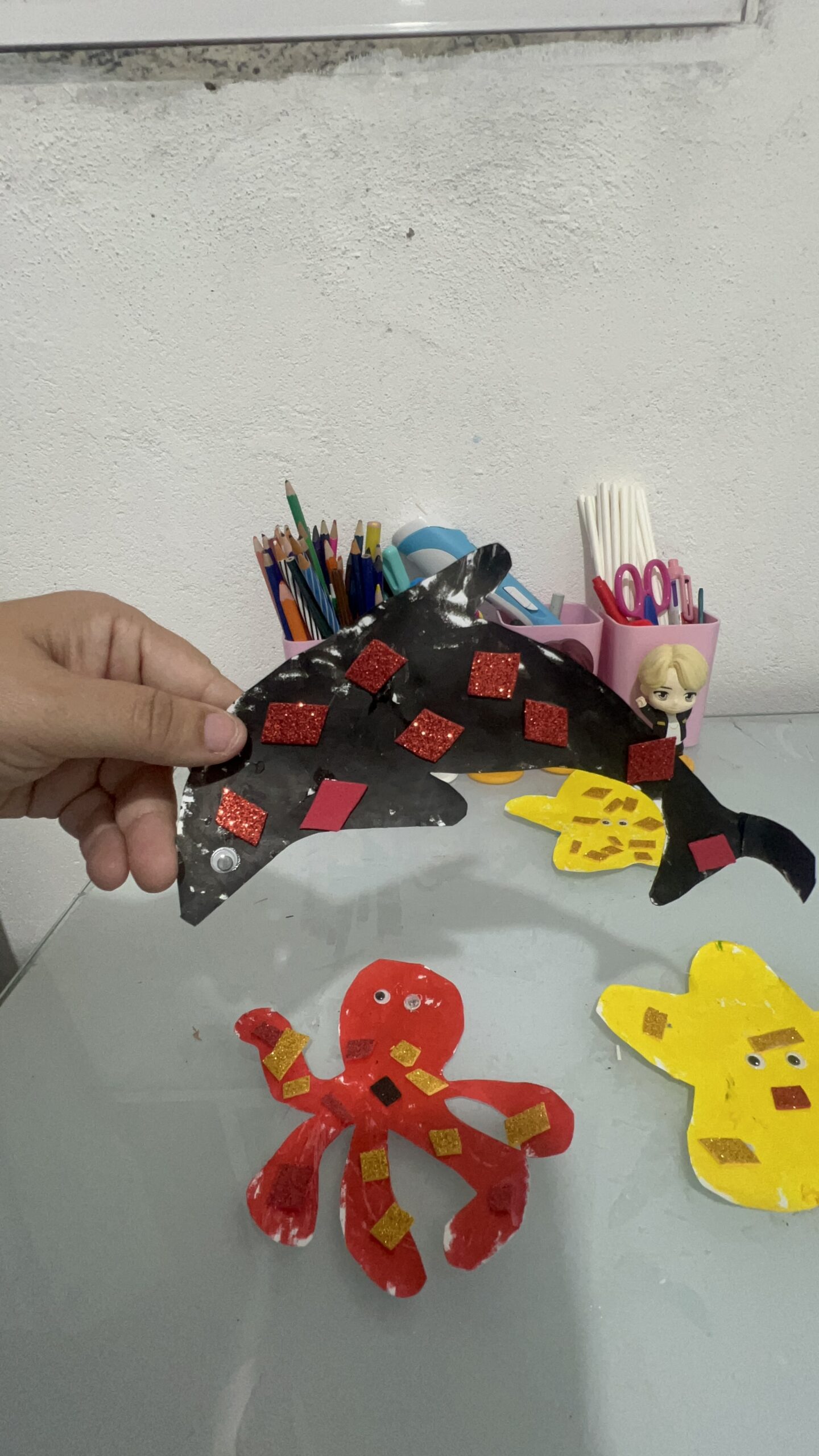• Habilidades Motoras Finas: Recortar escamas, colar lantejoulas, amassar papel crepom para fazer algas, usar tinta guache em bastão… Cada detalhe é um treino precioso para a futura escrita.