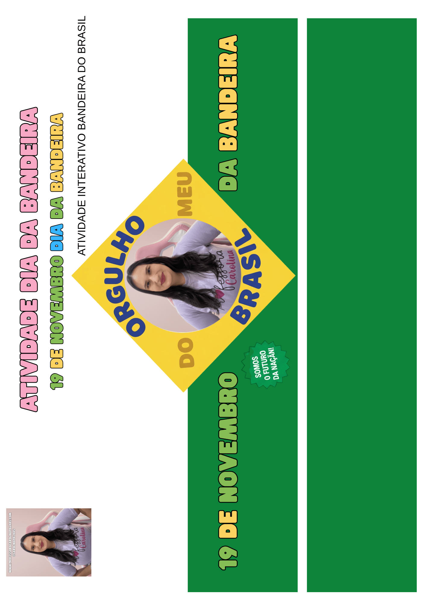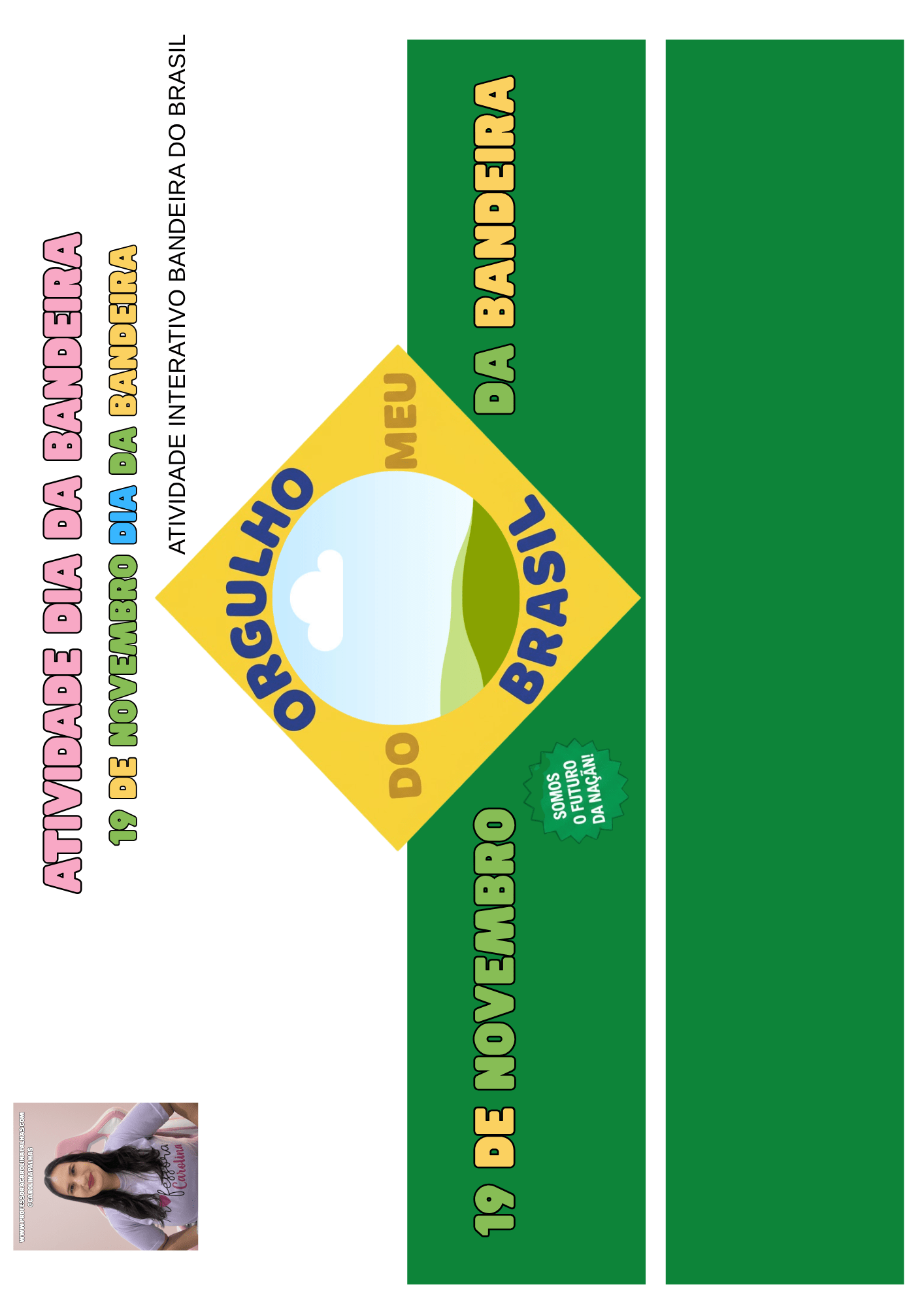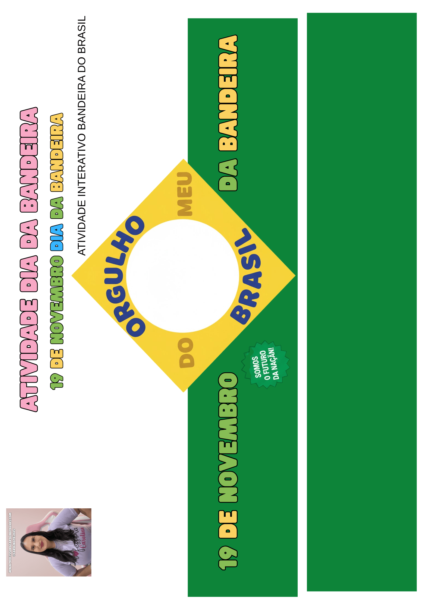 A ideia é montar um painel interativo ou um cartaz articulado, no formato da bandeira, com o título “Orgulho do Meu Brasil”, que pode ser completado com fotos das crianças.