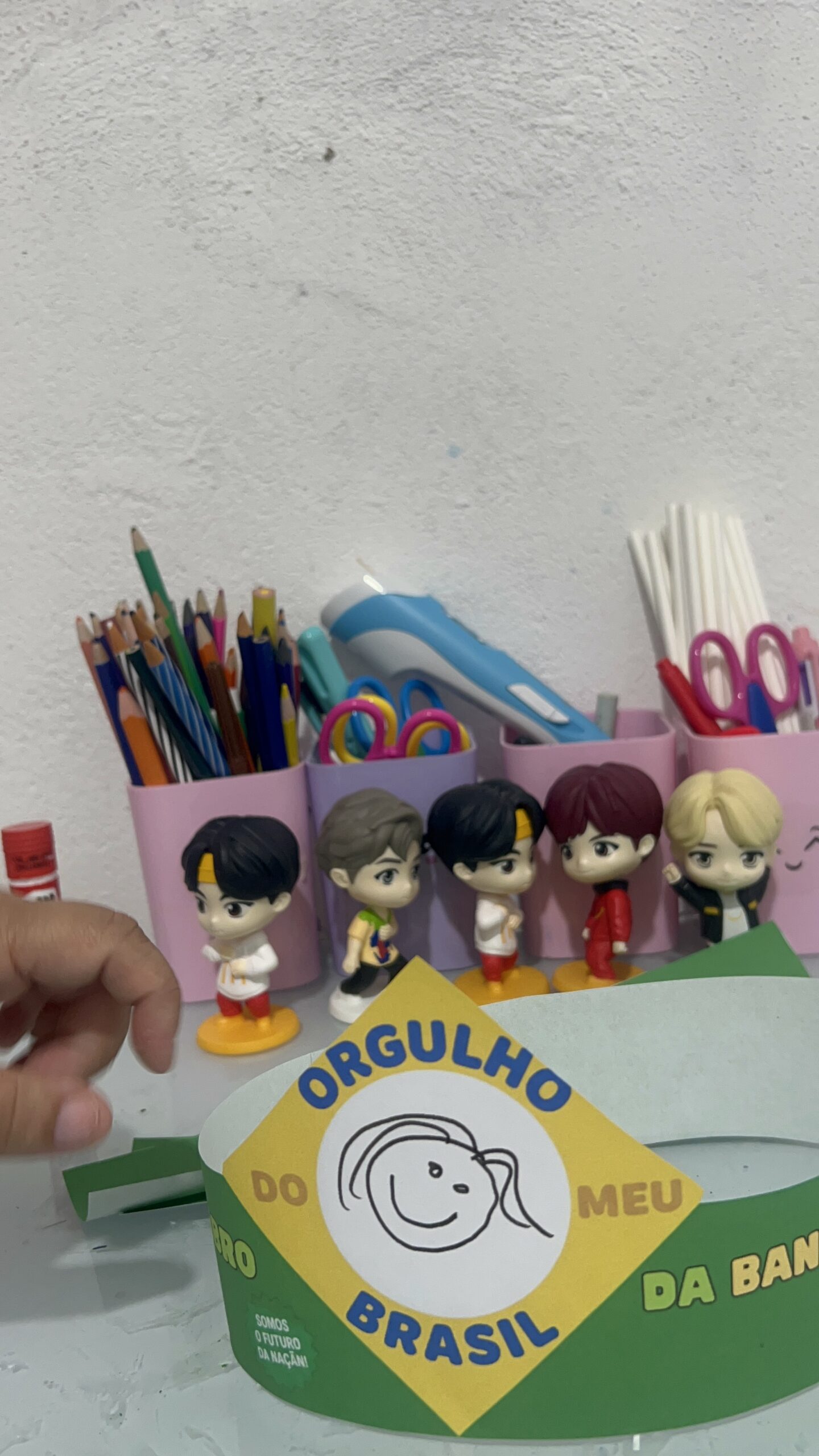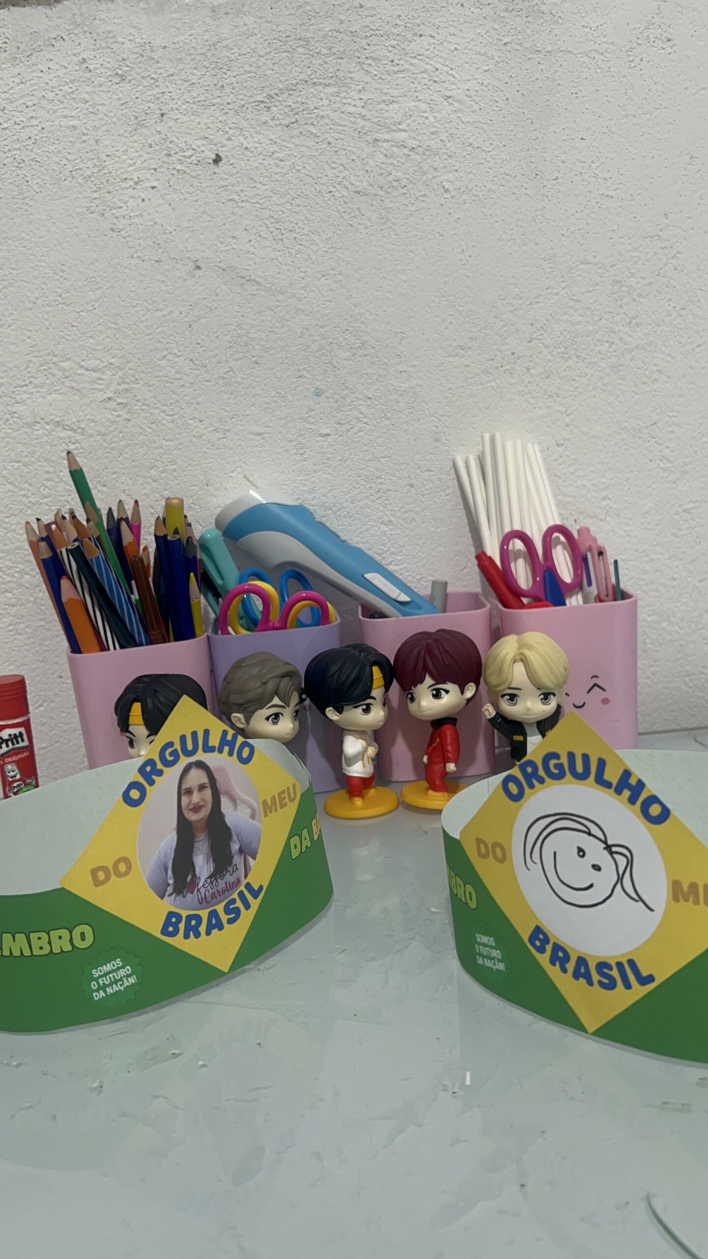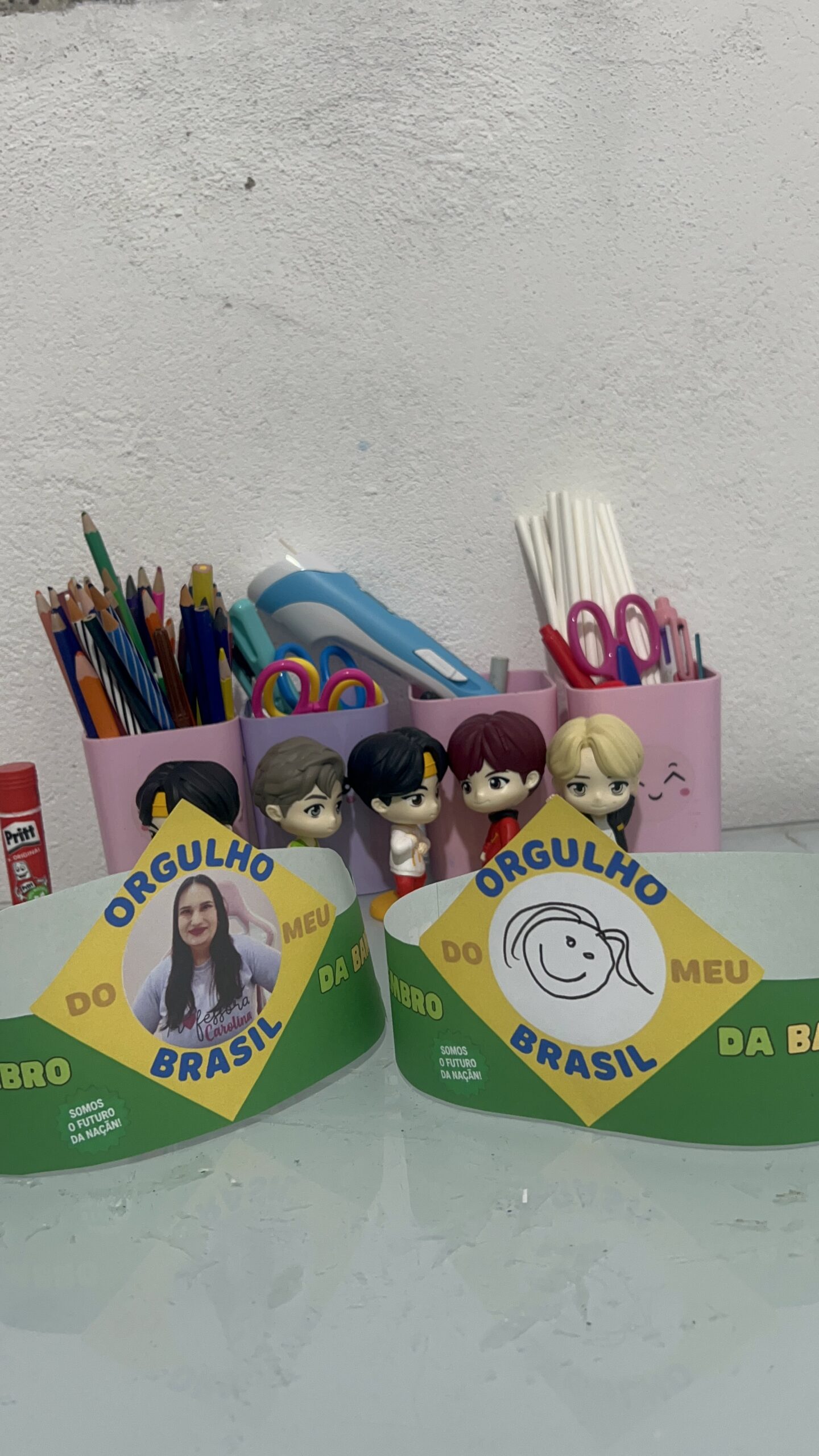 - Peça que cada criança cole sua foto dentro de um círculo azul, simbolizando o “céu do Brasil”.