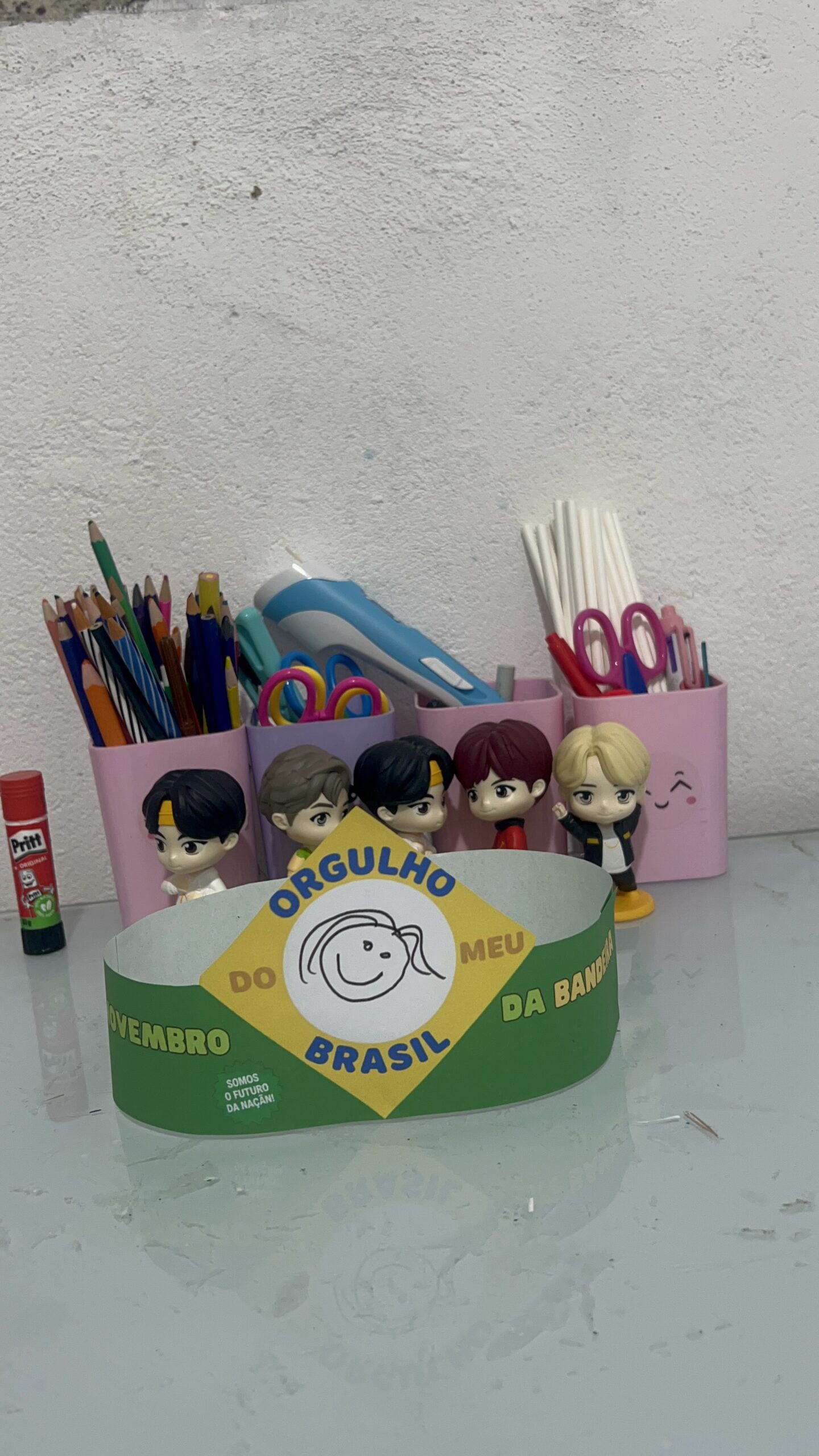 - Peça que cada criança cole sua foto dentro de um círculo azul, simbolizando o “céu do Brasil”.