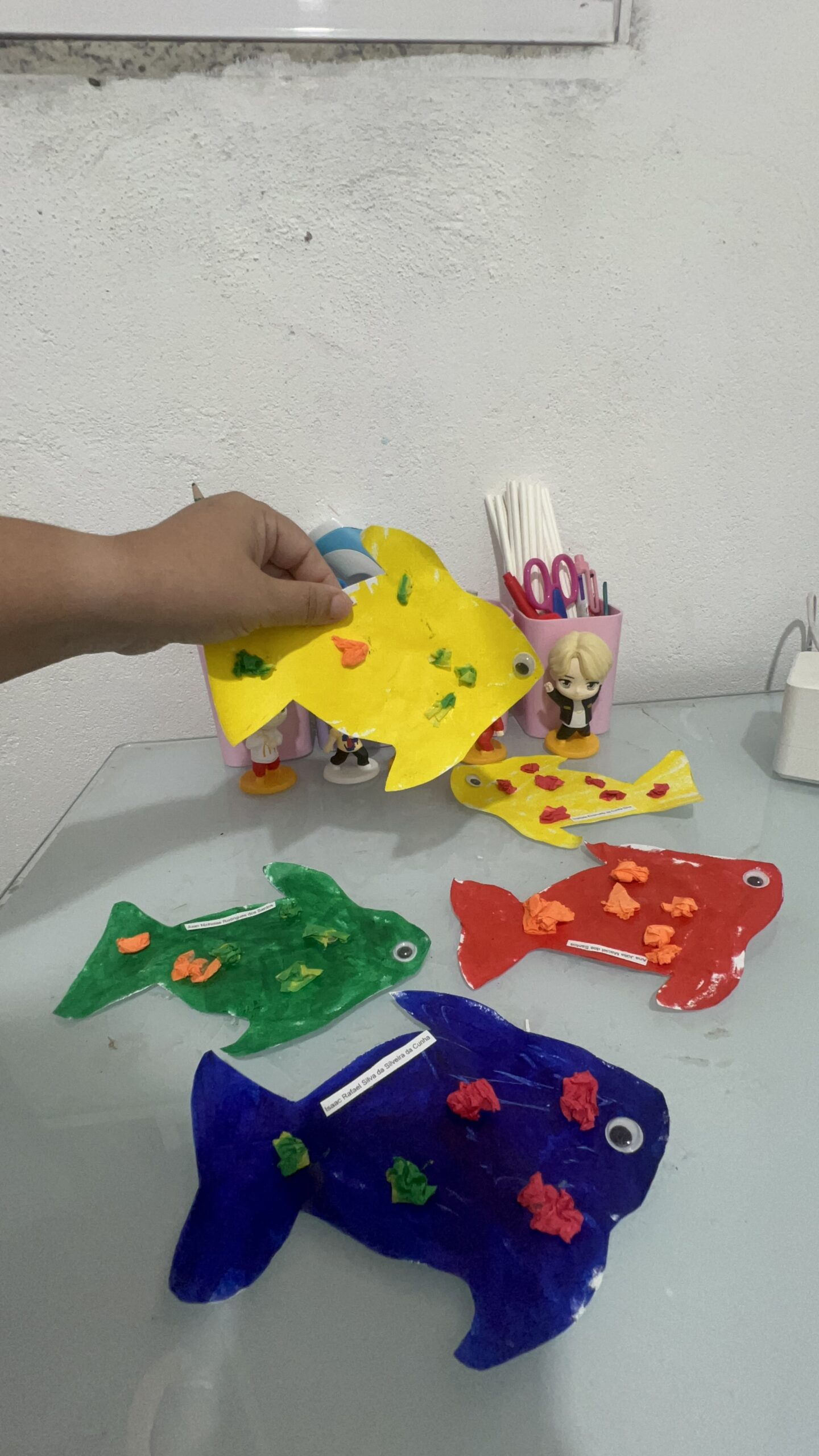 • Habilidades Motoras Finas: Recortar escamas, colar lantejoulas, amassar papel crepom para fazer algas, usar tinta guache em bastão… Cada detalhe é um treino precioso para a futura escrita.