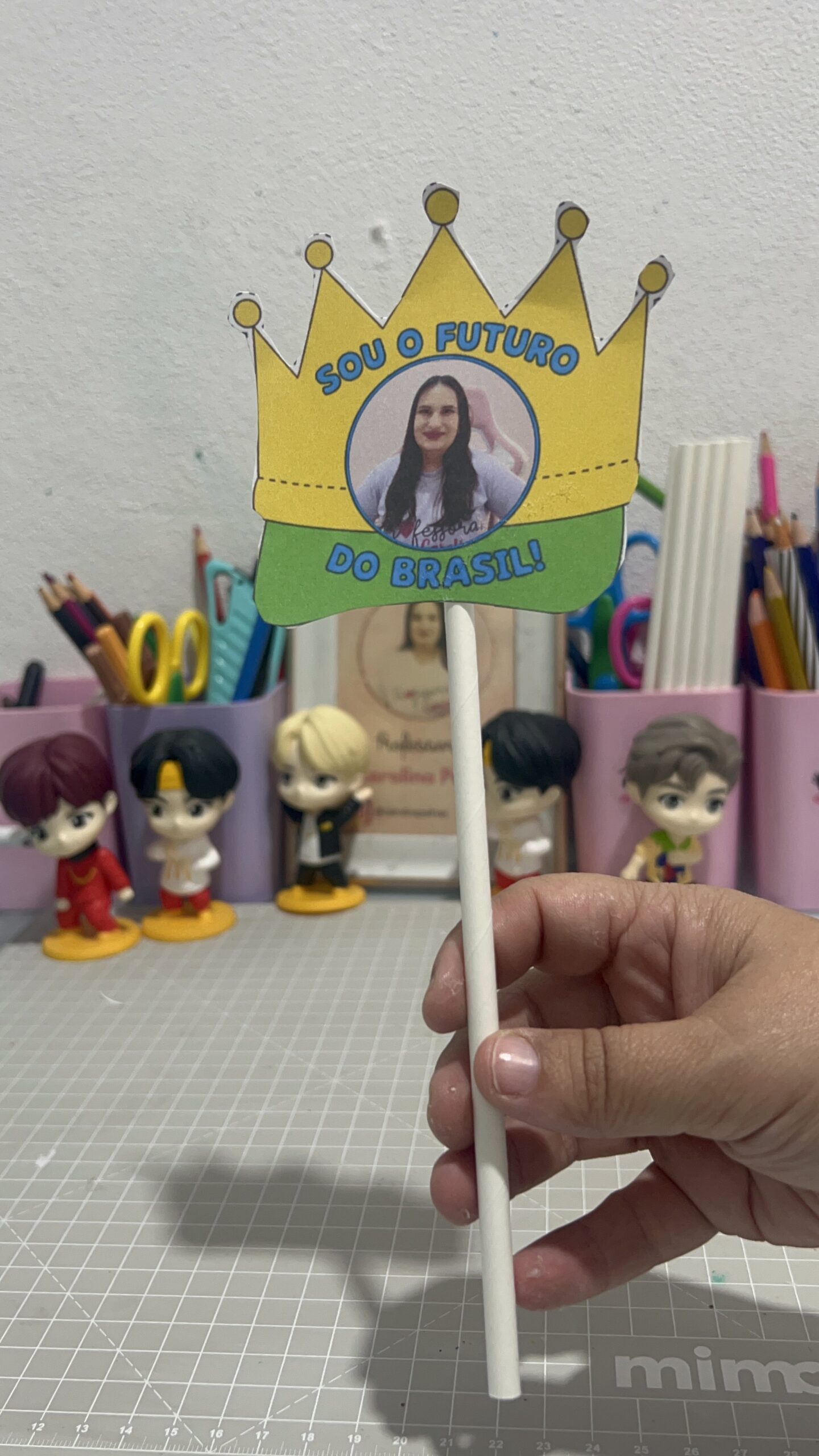 Pensando nisso, criamos um Palitoche Interativo do Dia da Bandeira, totalmente editável no Canva, que permite personalizar a atividade com a foto da própria criança. O resultado é uma experiência encantadora, cheia de identidade, pertencimento e protagonismo infantil.