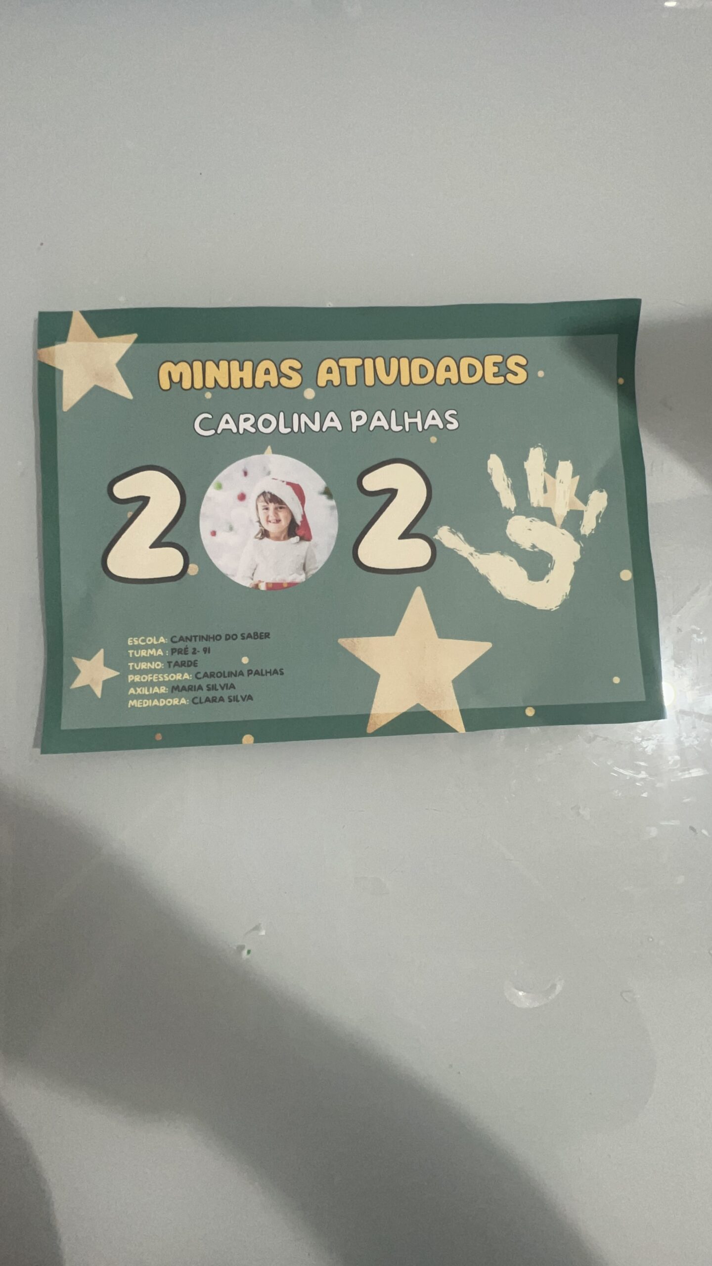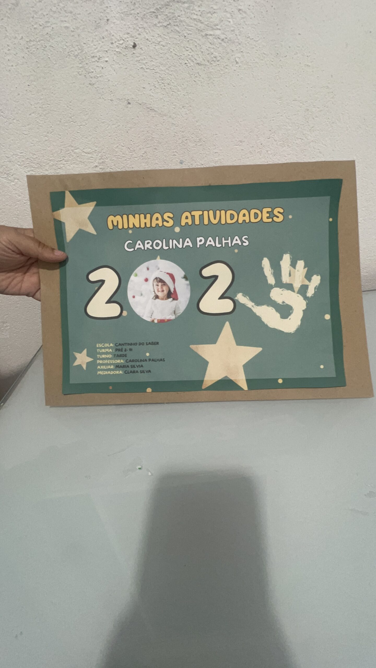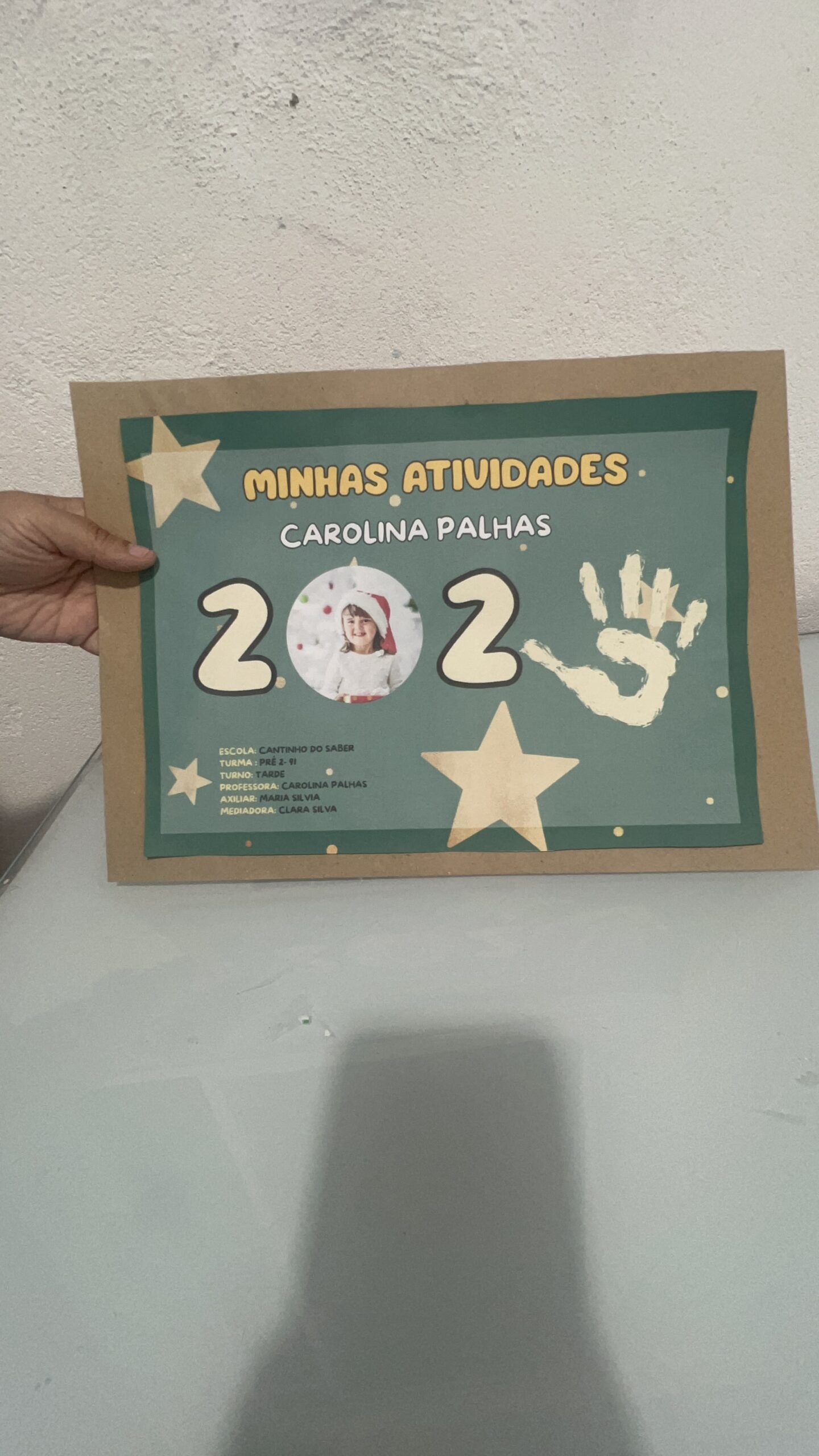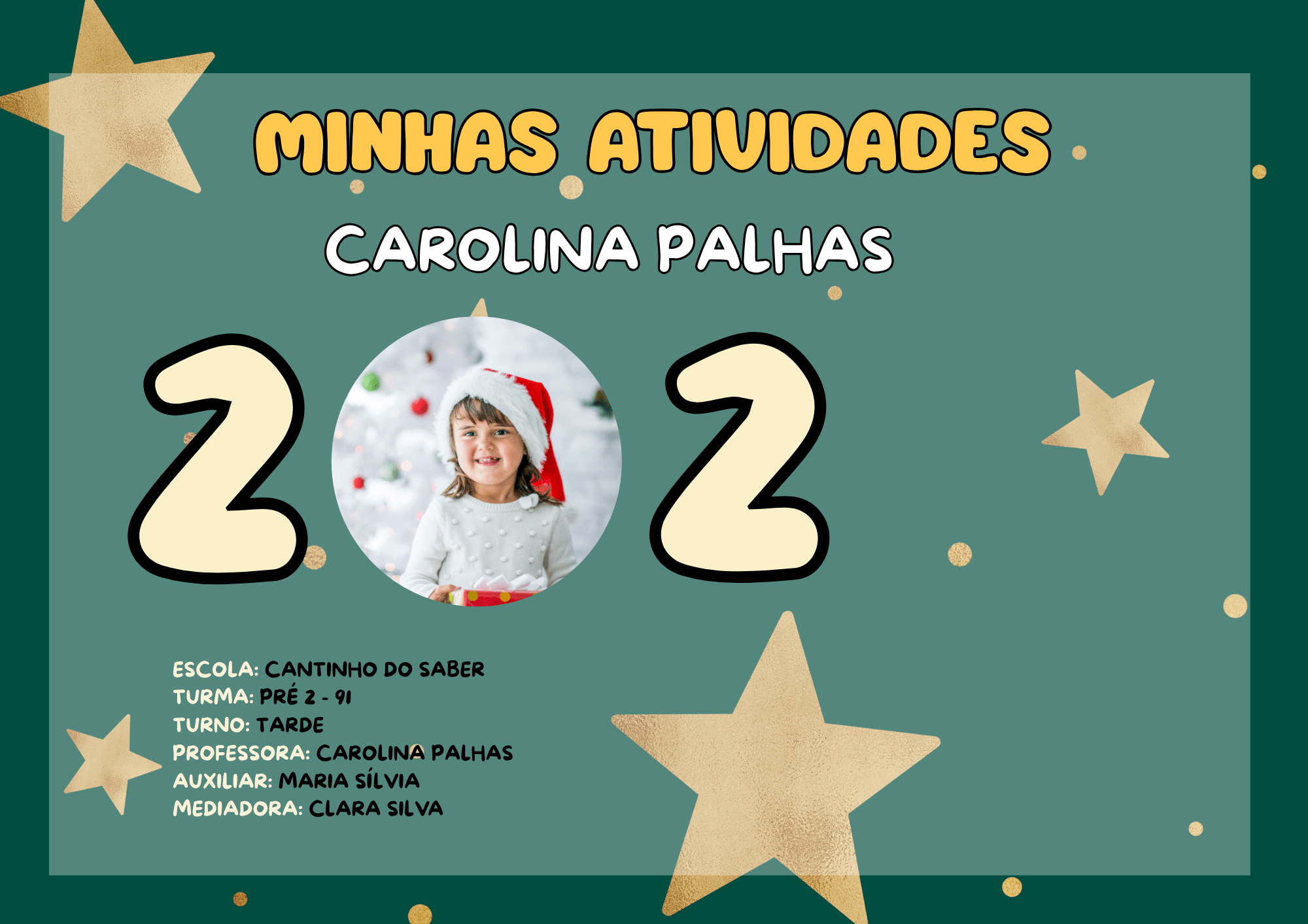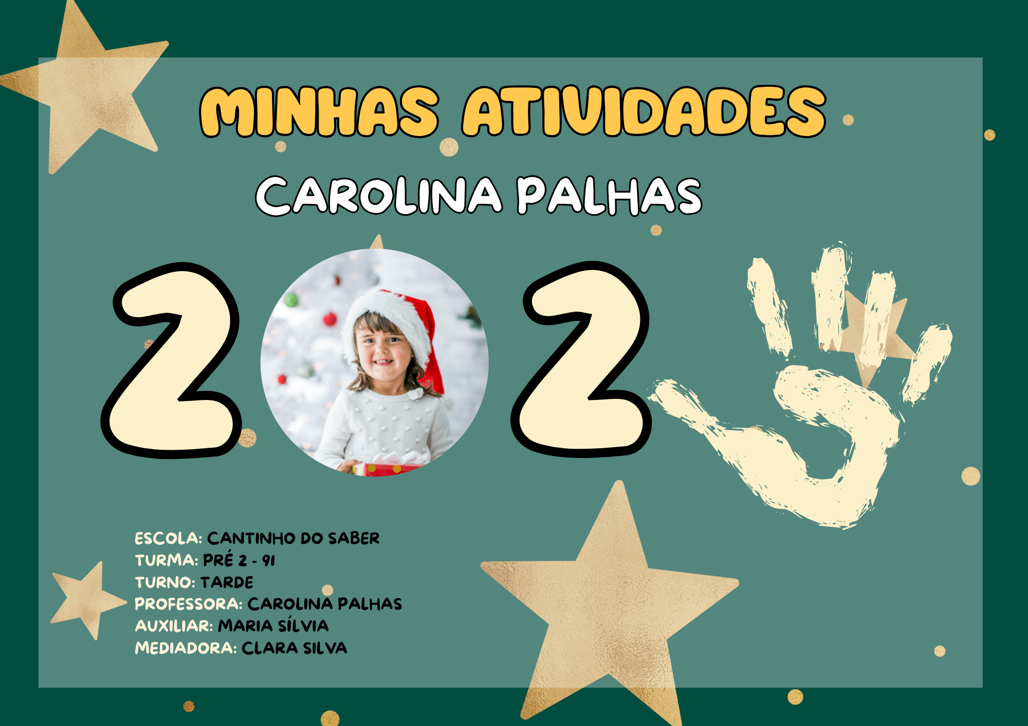 espaço para nome da criança, turma, ano e professora;