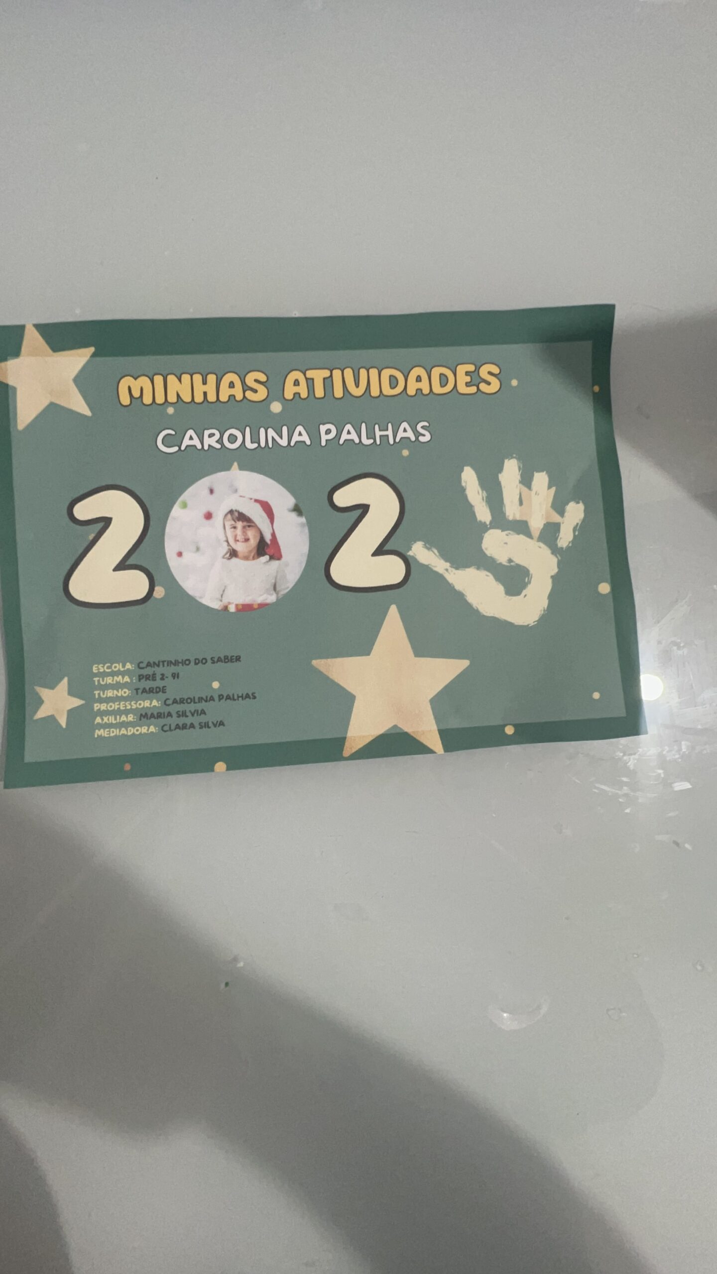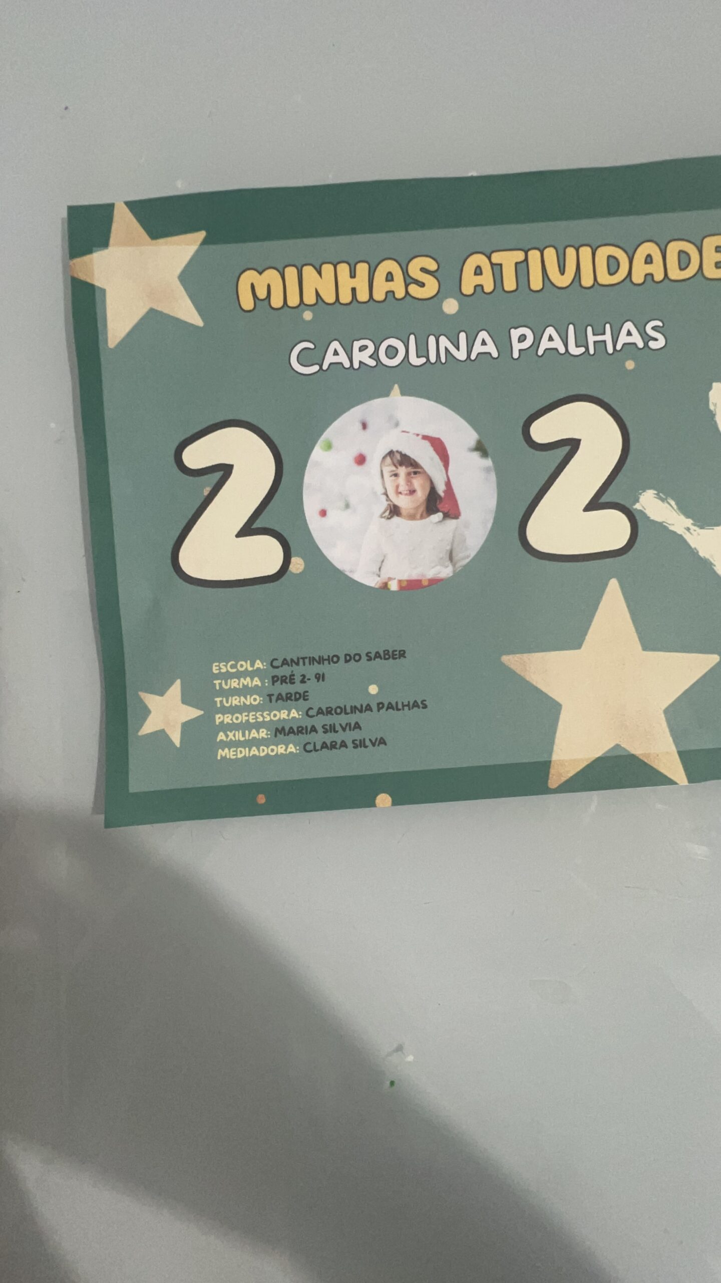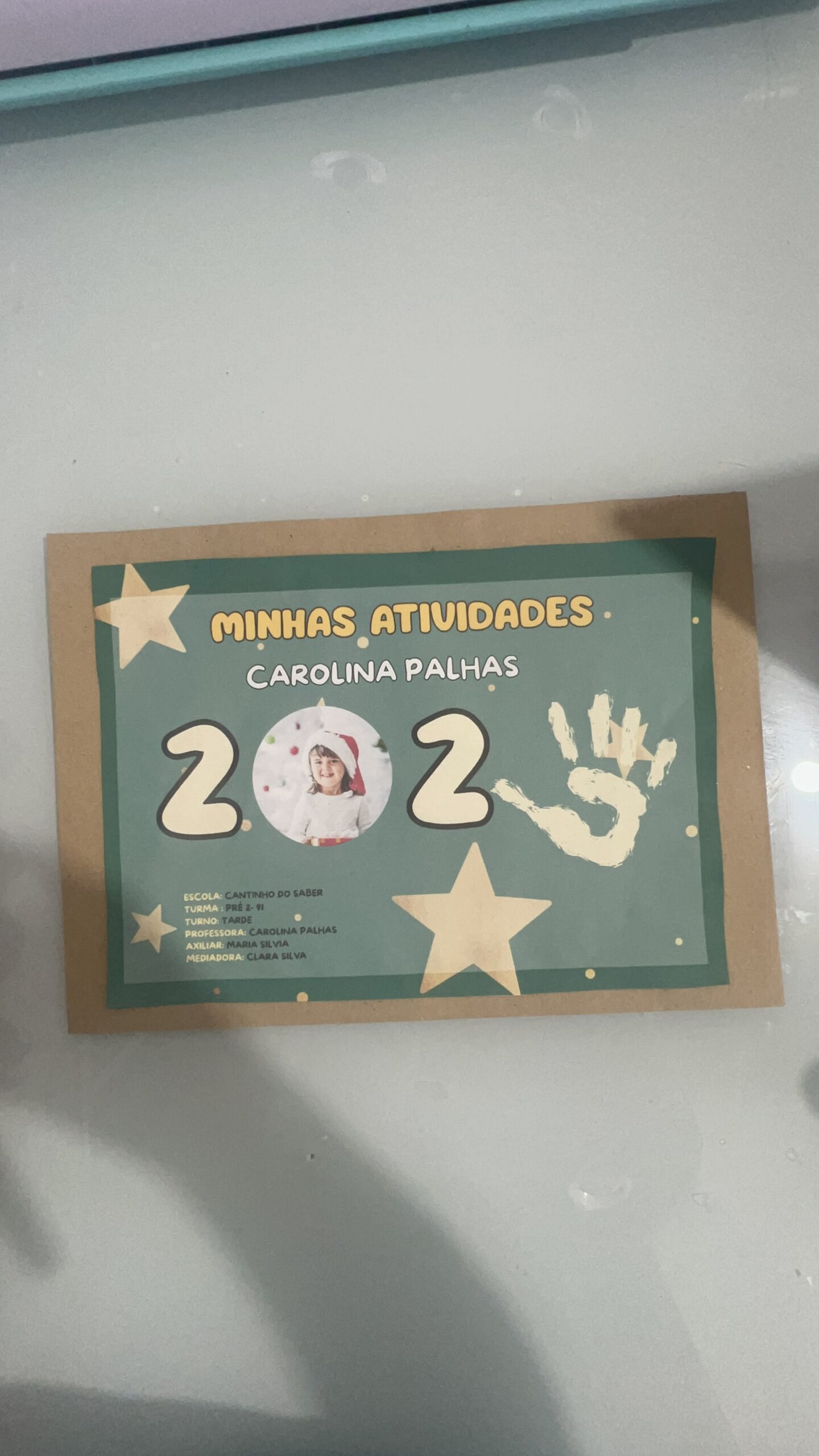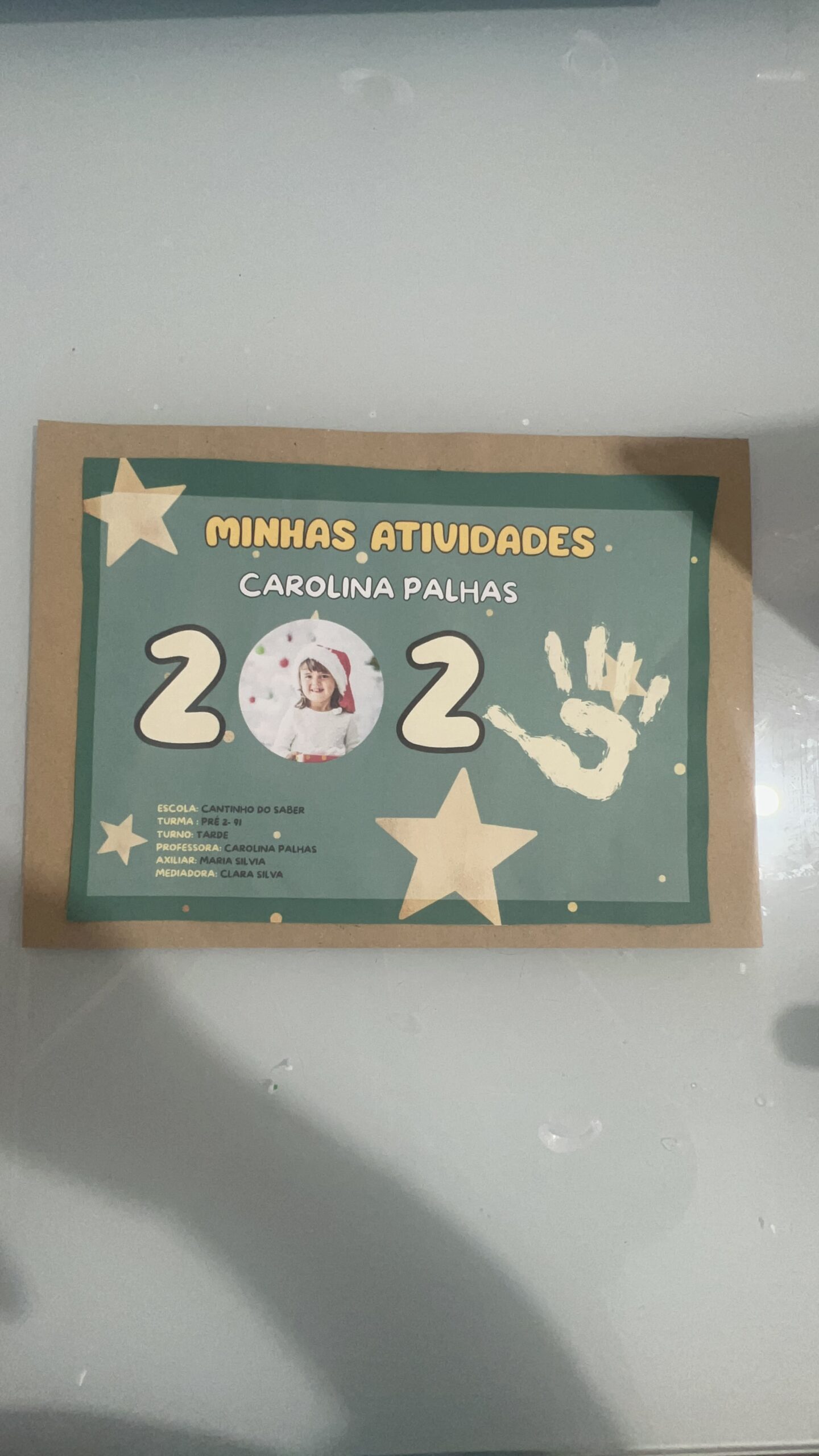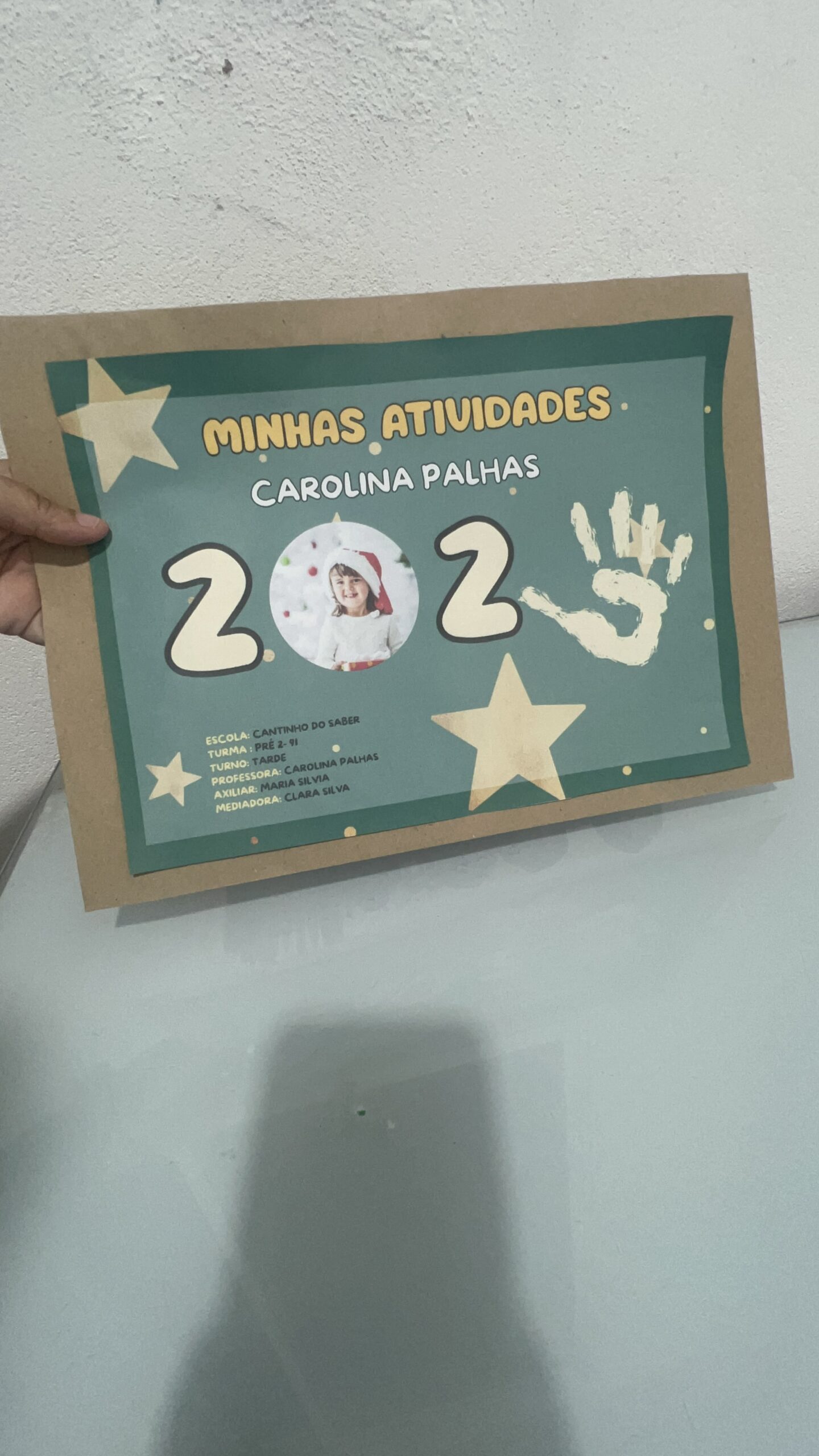 espaço para nome da criança, turma, ano e professora;