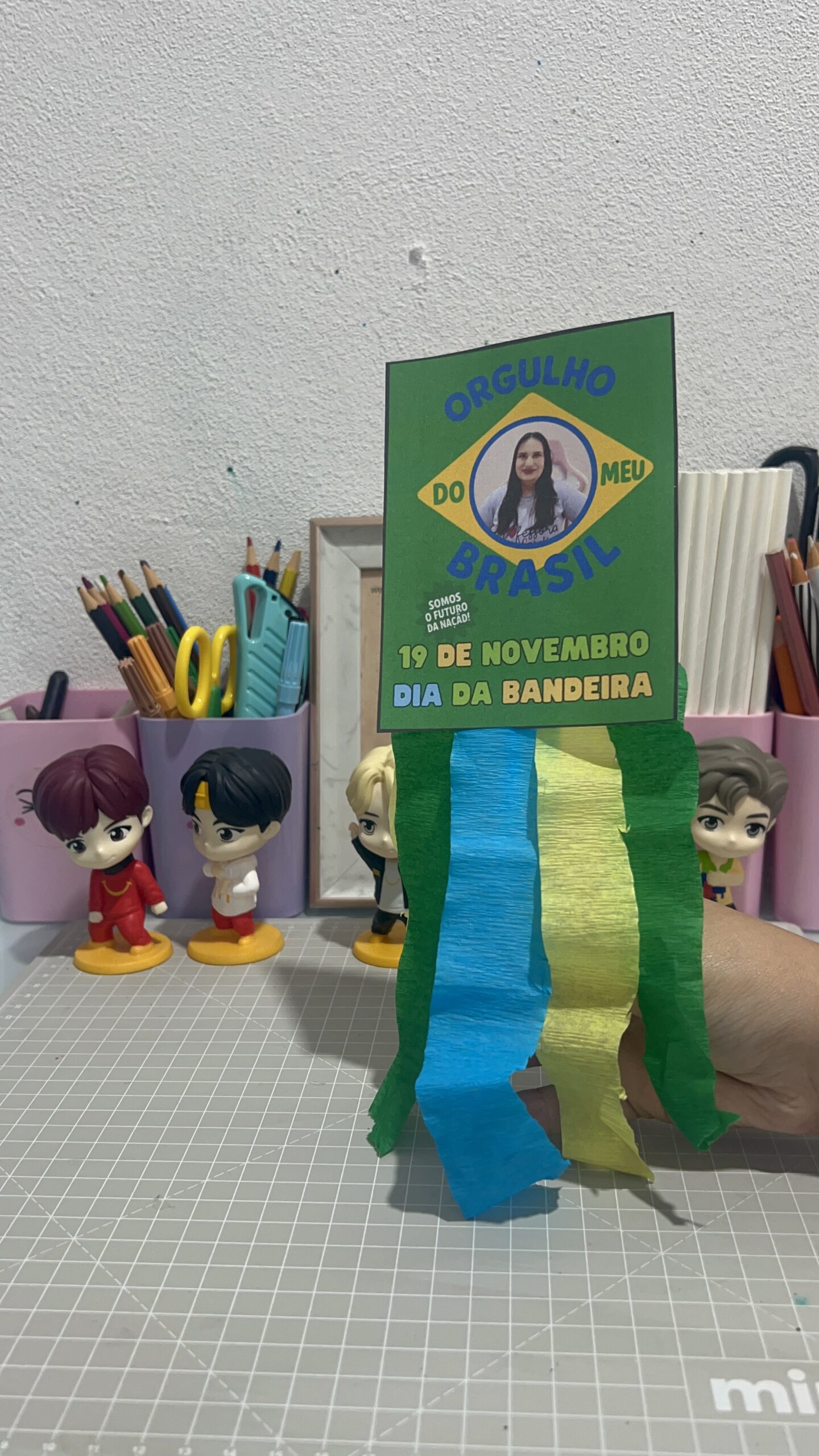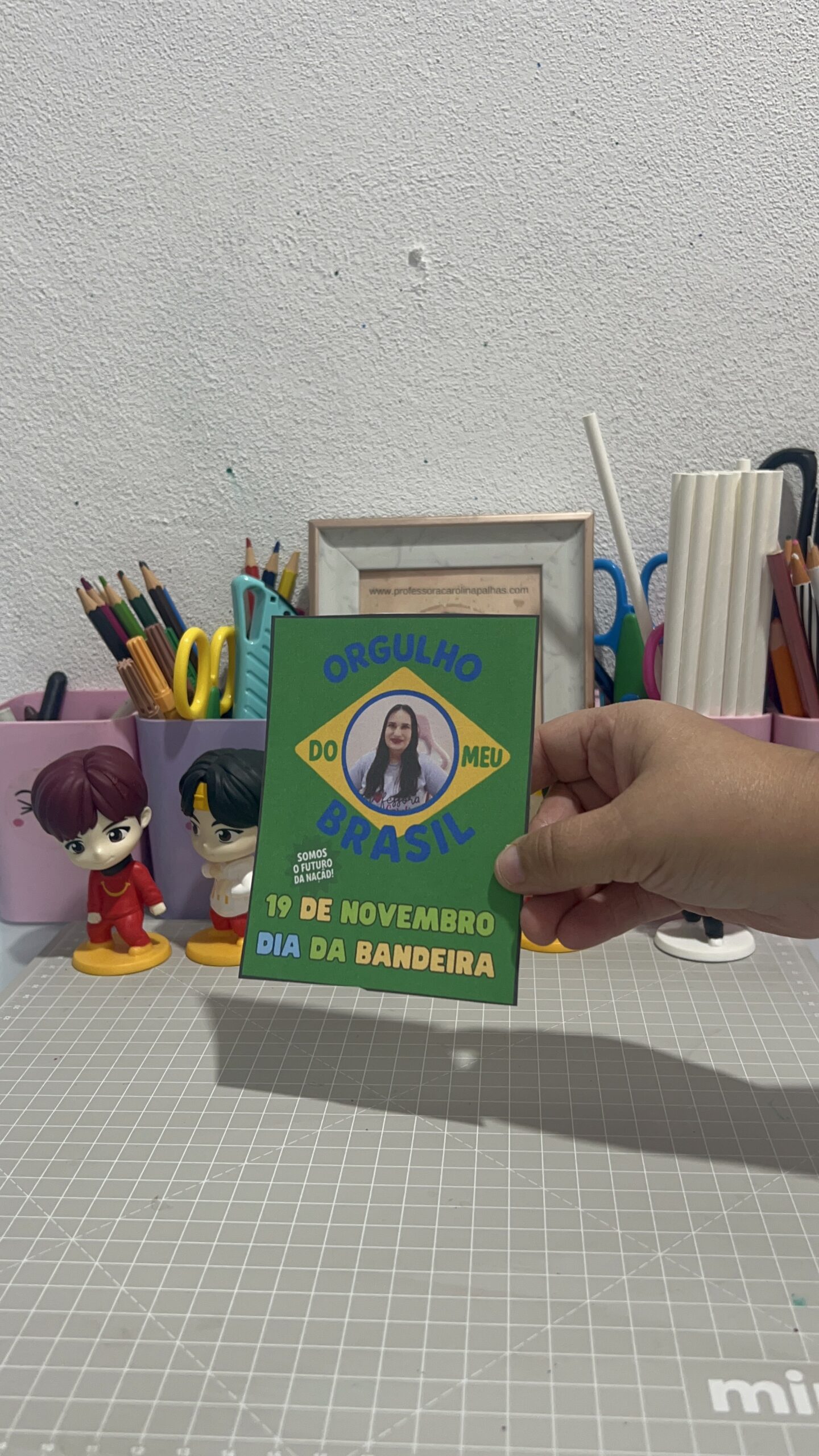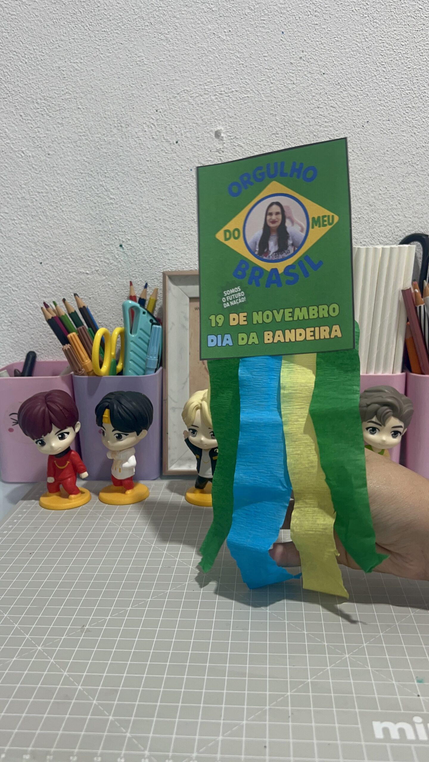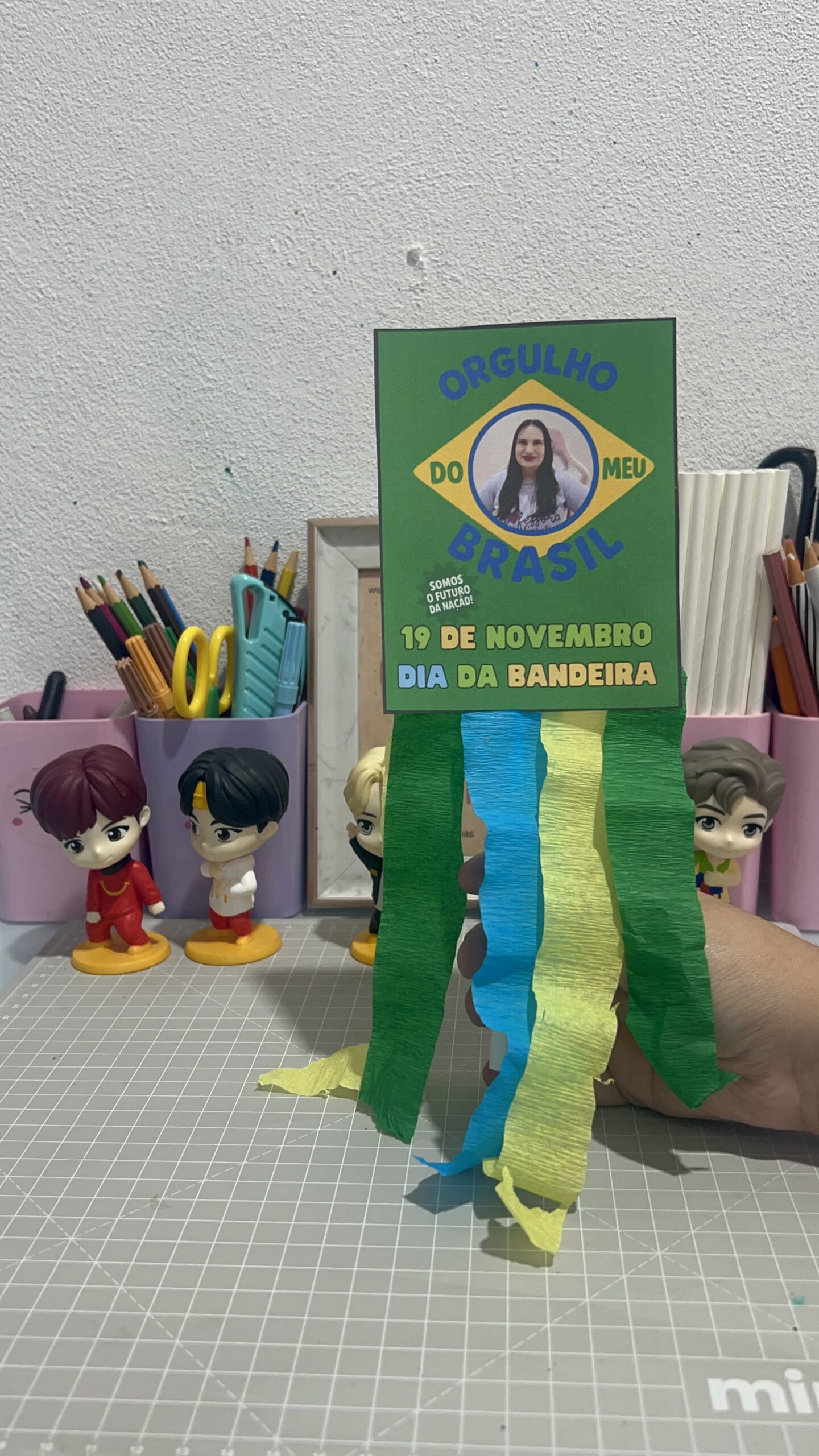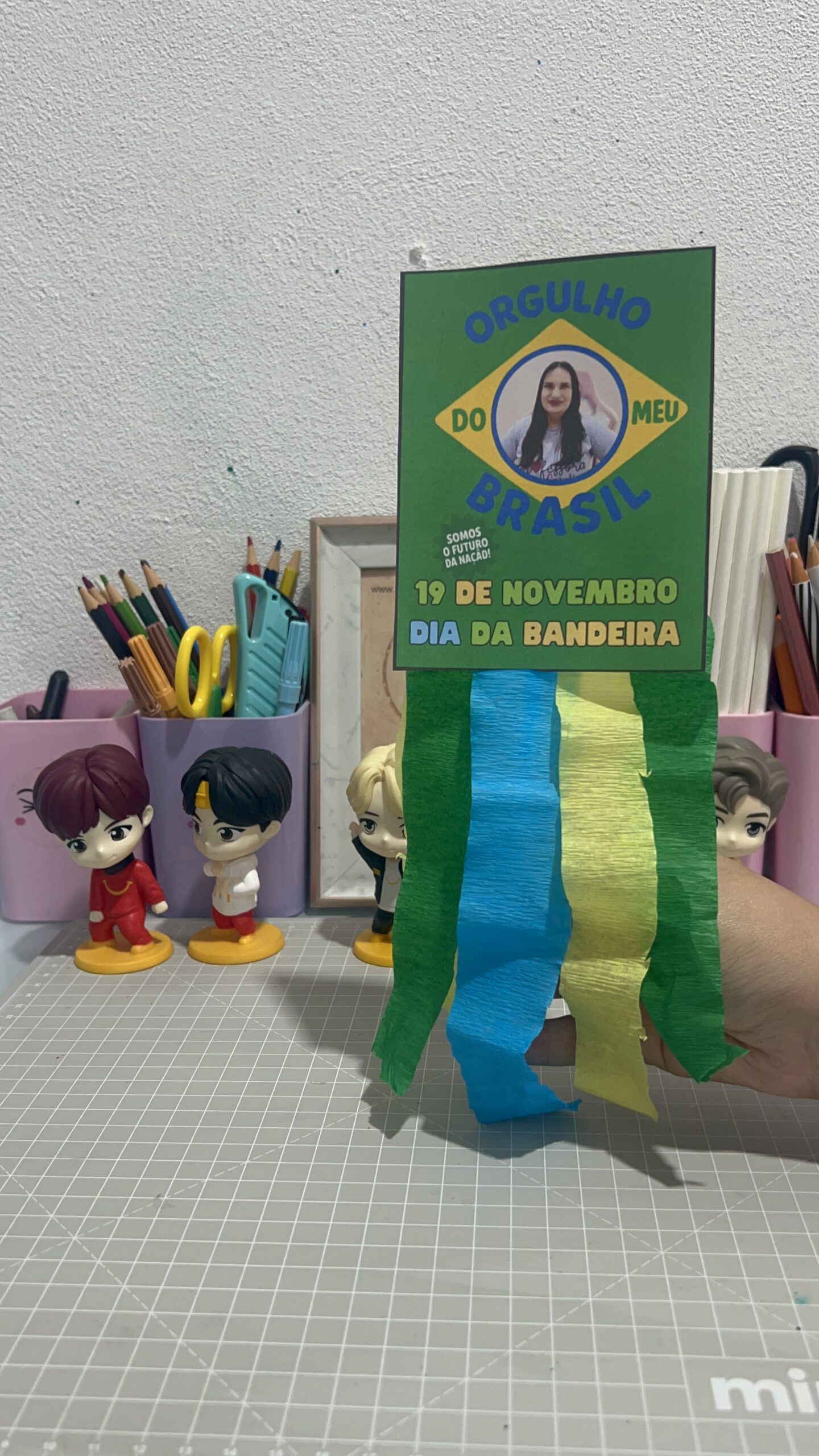 Pensando nisso, criamos um Palitoche Interativo do Dia da Bandeira, totalmente editável no Canva, que permite personalizar a atividade com a foto da própria criança. O resultado é uma experiência encantadora, cheia de identidade, pertencimento e protagonismo infantil.