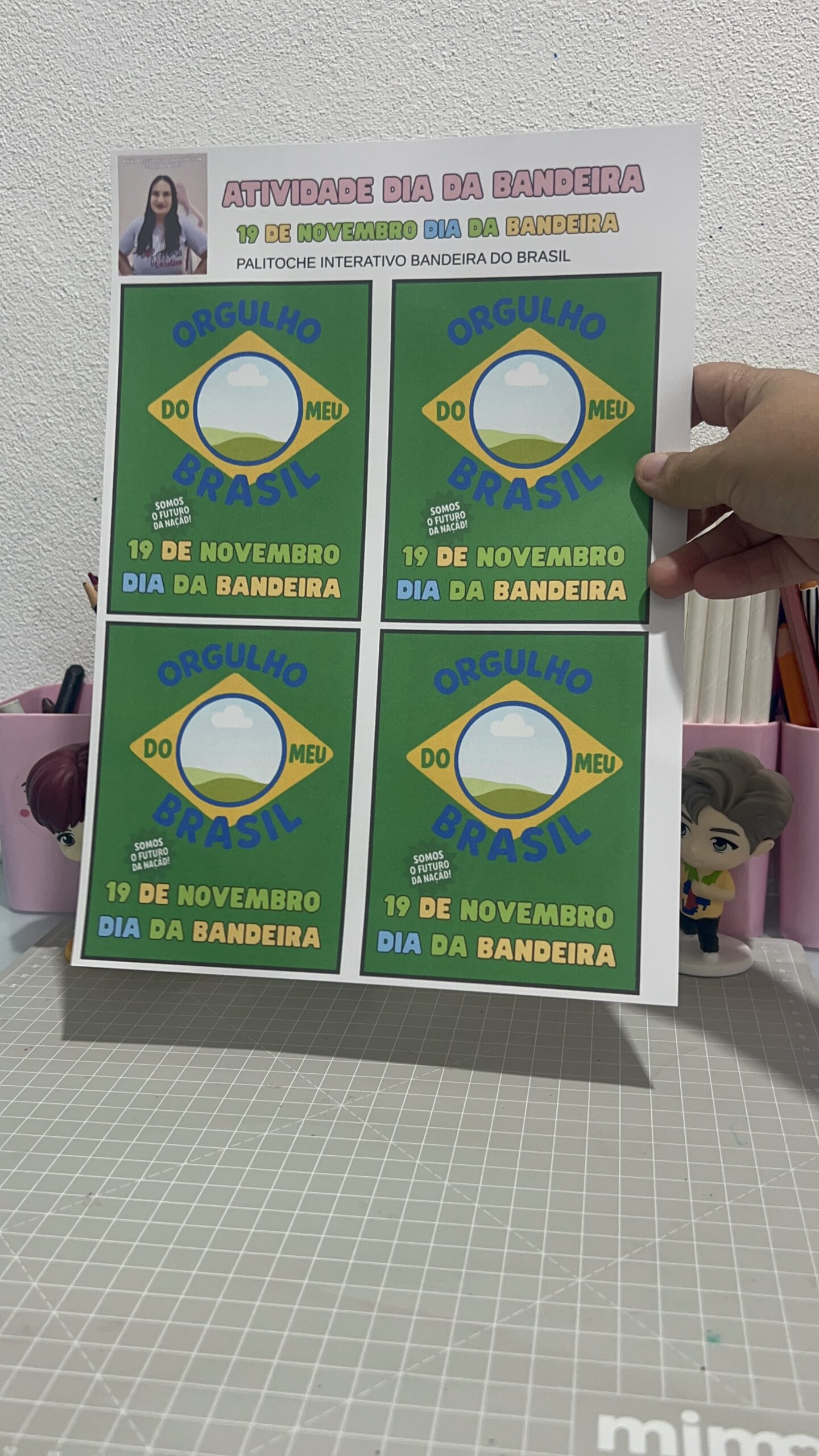 Palavras-chave: Dia da Bandeira, atividade Dia da Bandeira, palitoche Brasil, recurso pedagógico Dia da Bandeira, atividade lúdica Brasil, atividade educação infantil Brasil, 19 de novembro, identidade e pertencimento, projeto Brasil educação infantil, palitoche editável Canva, atividade com foto da criança, projeto patriotismo infantil, ensino simbólico Brasil, recurso para imprimir Brasil, atividade interativa Dia da Bandeira.