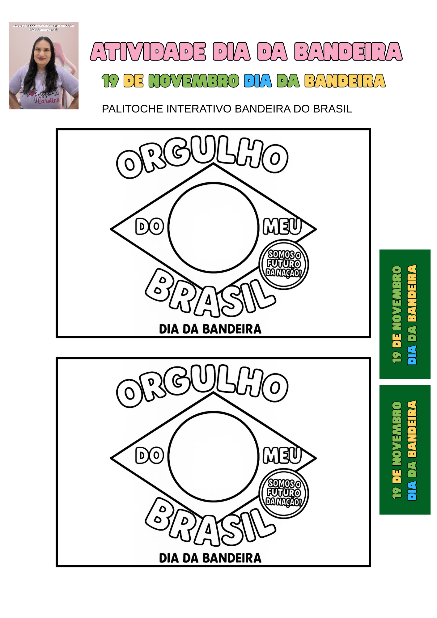 Palavras-chave: Dia da Bandeira, atividade Dia da Bandeira, palitoche Brasil, recurso pedagógico Dia da Bandeira, atividade lúdica Brasil, atividade educação infantil Brasil, 19 de novembro, identidade e pertencimento, projeto Brasil educação infantil, palitoche editável Canva, atividade com foto da criança, projeto patriotismo infantil, ensino simbólico Brasil, recurso para imprimir Brasil, atividade interativa Dia da Bandeira.
