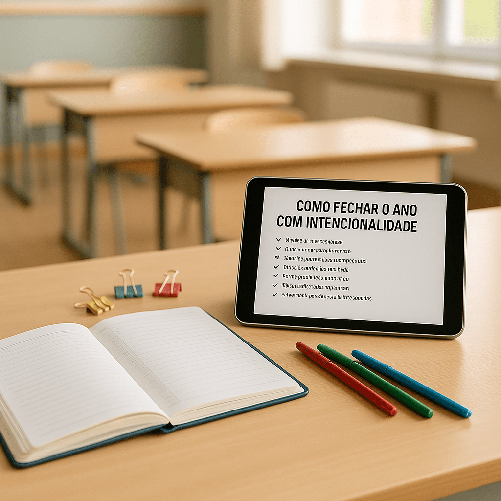 Por isso, neste artigo você encontrará um guia completo para realizar um fechamento pedagógico realmente intencional, organizado e leve — incluindo um modelo pronto para baixar, sugestões práticas, prompts para gerar imagens do seu carrossel e estratégias para transformar essa etapa em um momento de fortalecimento profissional.