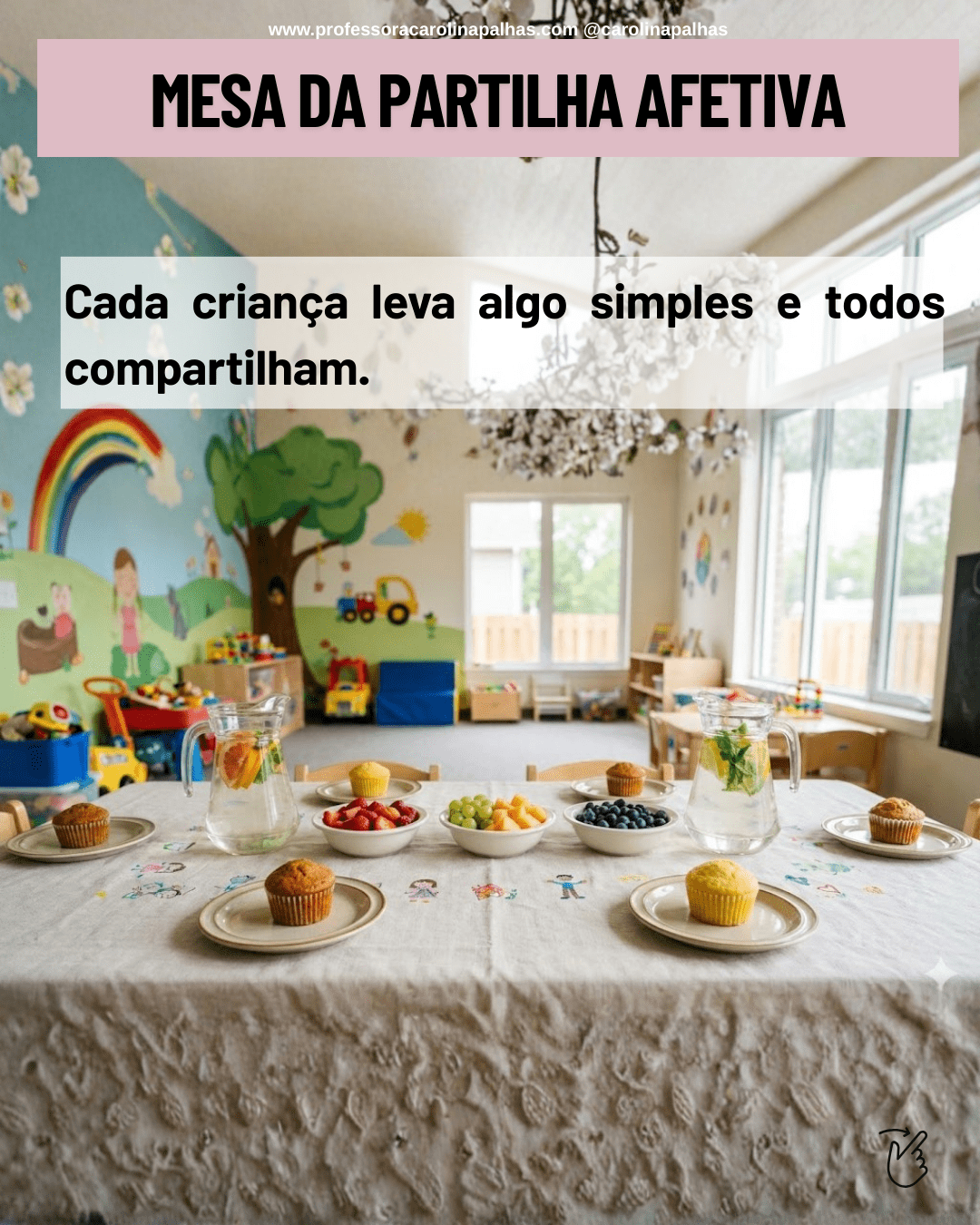 A partilha é um gesto que ensina empatia, cuidado e generosidade. A Mesa da Partilha Afetiva é uma atividade perfeita para o último dia de aula, pois convida as crianças a celebrarem juntas.