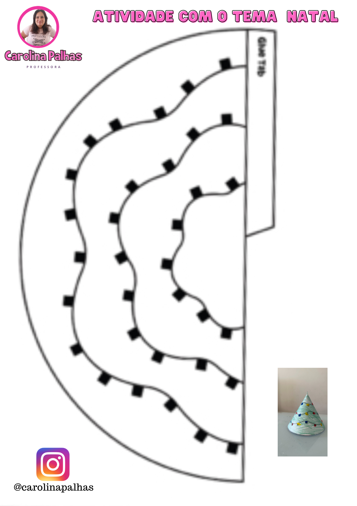 Baseando-nos nas imagens que inspiraram este post, a atividade central consiste em colorir um semicírculo que, ao ser fechado, forma um cone perfeito.