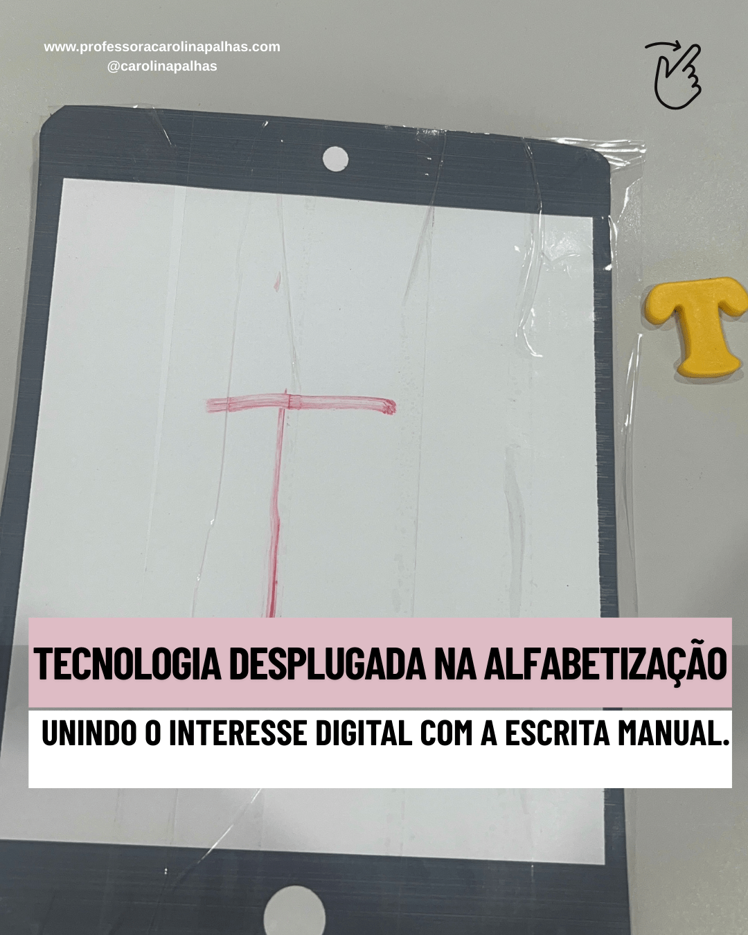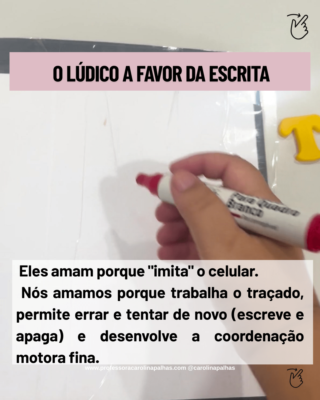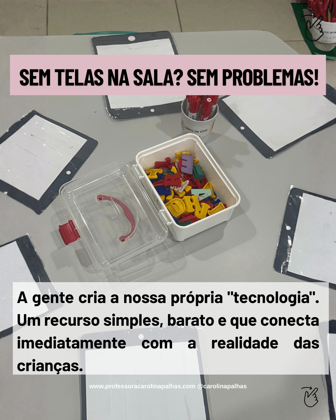 Texto: A gente cria a nossa própria “tecnologia”. Um recurso simples, barato e que conecta imediatamente com a realidade das crianças.