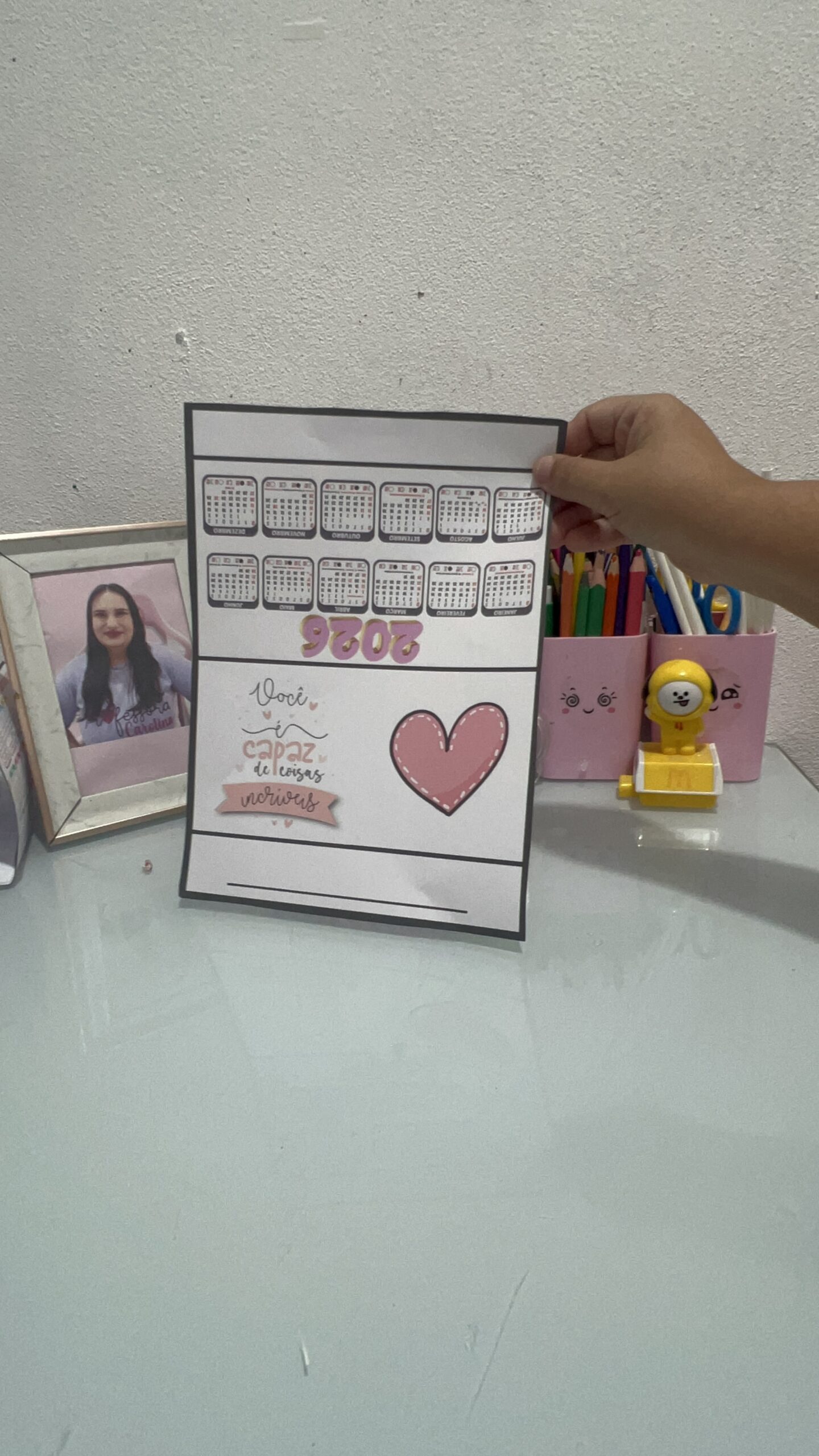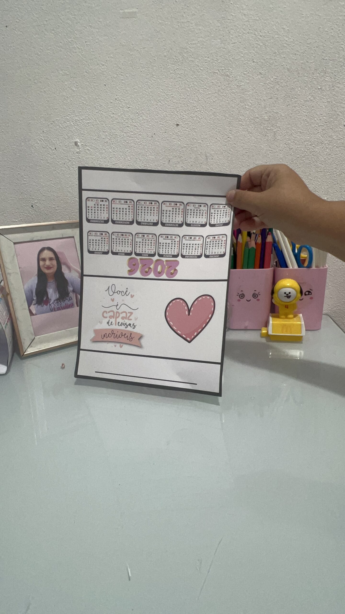 Ao utilizar um calendário de mesa, mesmo em modelos simples, coloridos ou temáticos (como personagens infantis, florais, bonequinhos fofos, BT21, minimalistas ou pedagógicos), a professora cria oportunidades para que as crianças compreendam conceitos essenciais: passagem do tempo, noções de ontem-hoje-amanhã, sequência lógica, organização, autonomia e responsabilidade.