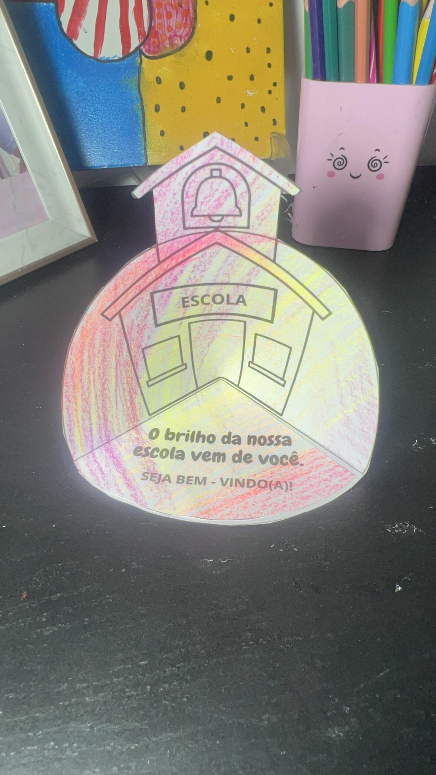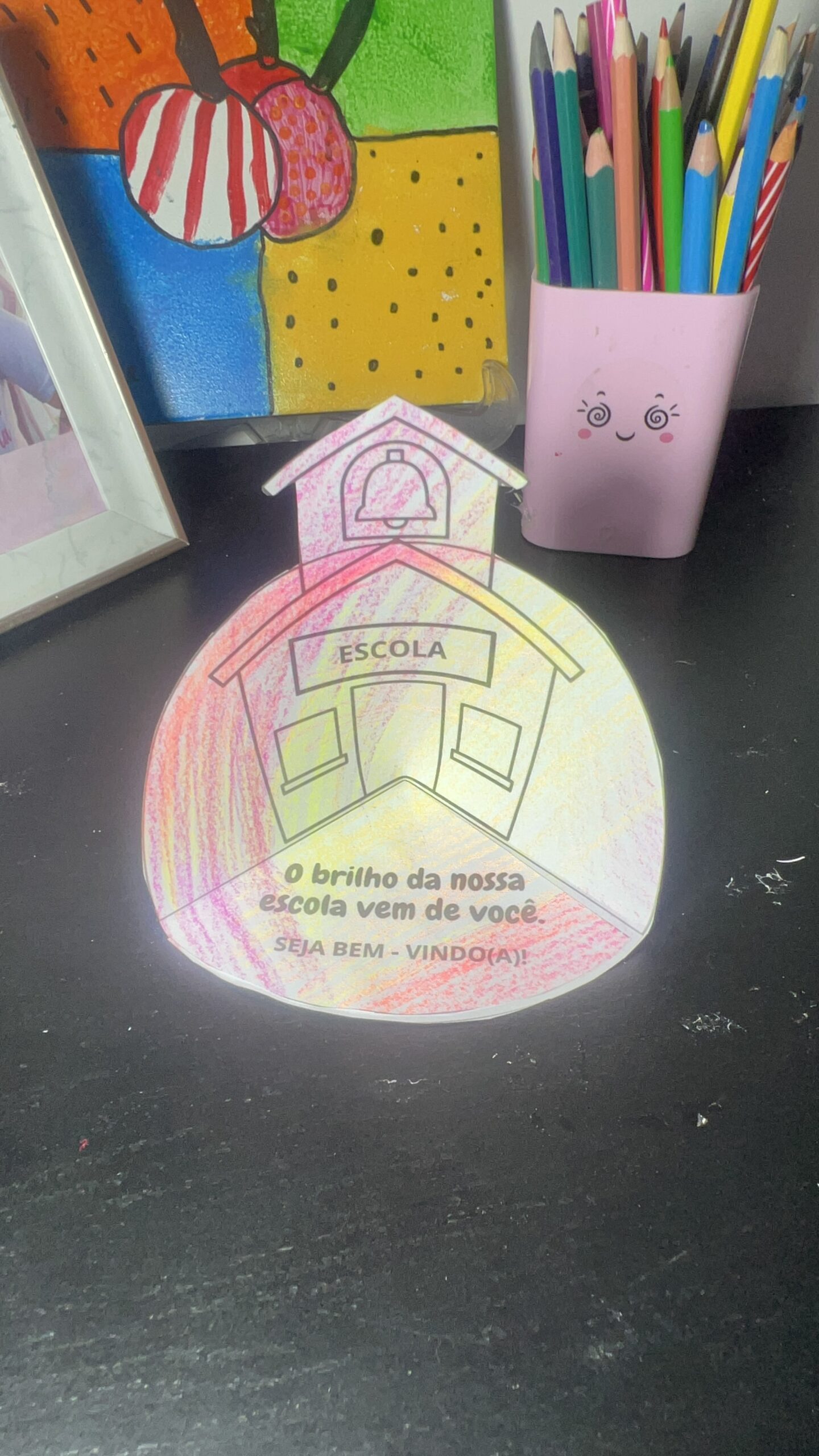 Descrição: Desenho livre sobre como a criança imagina ou vê a escola.