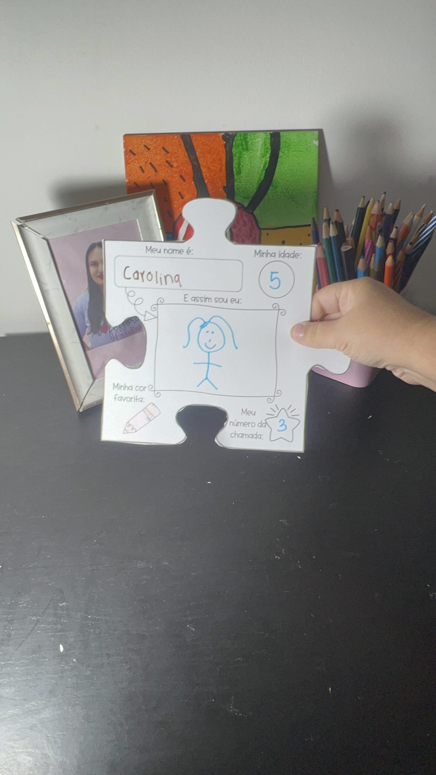 Descrição: Uso de fichas com nomes e fotos das crianças.