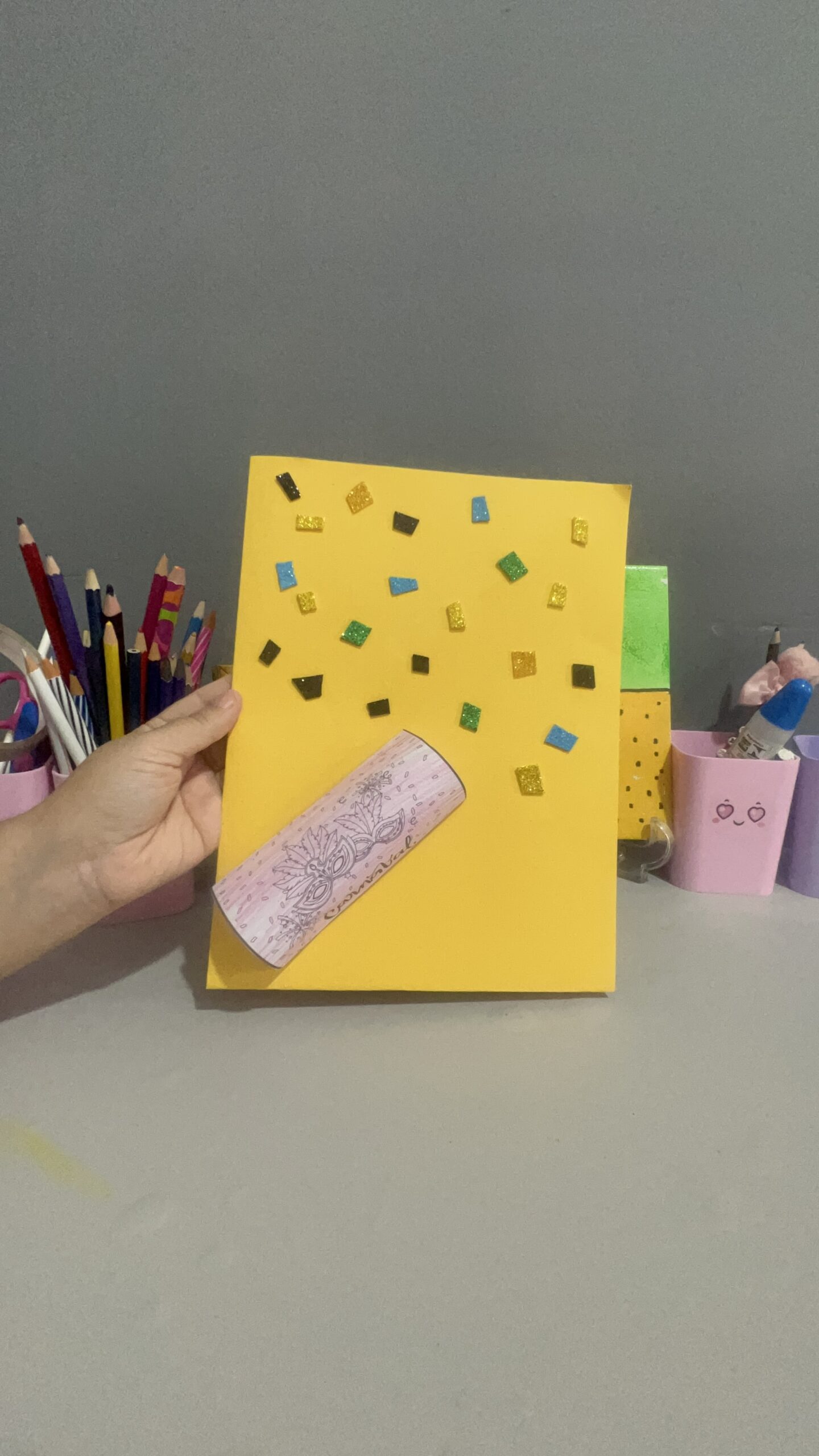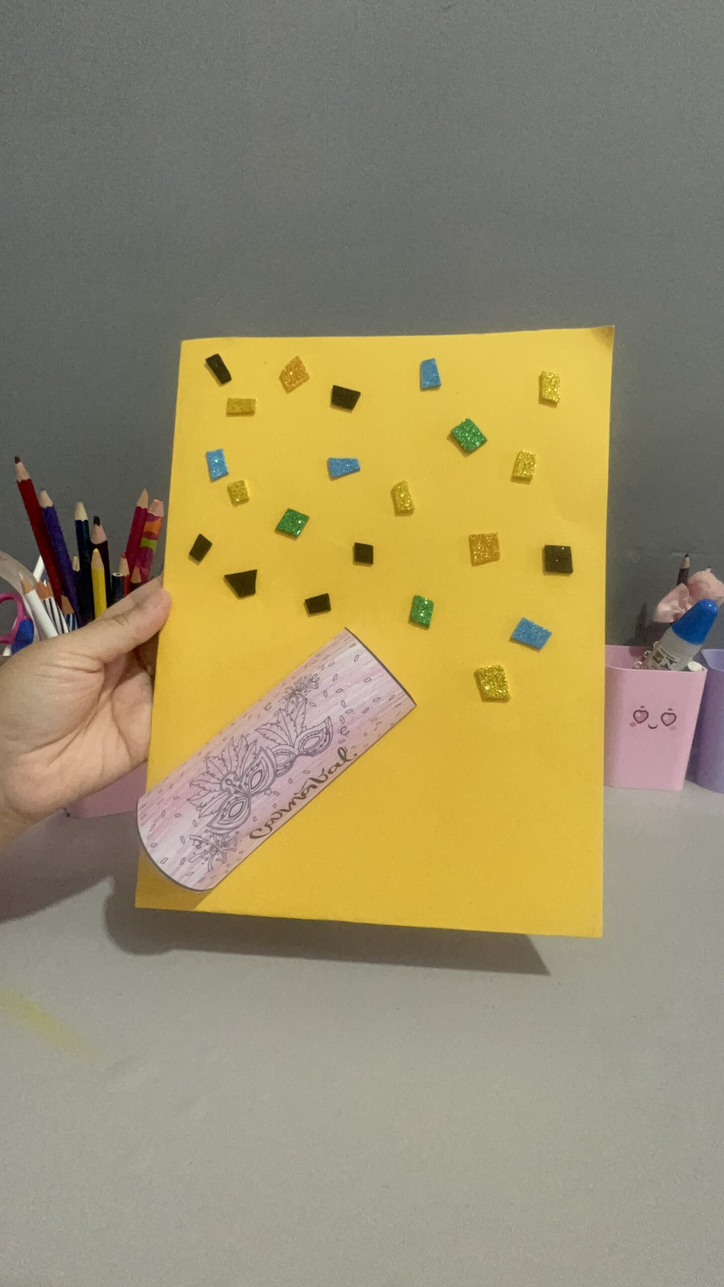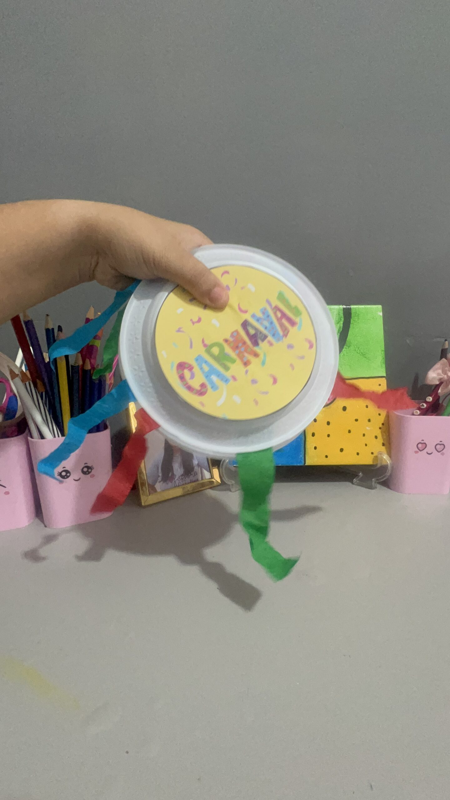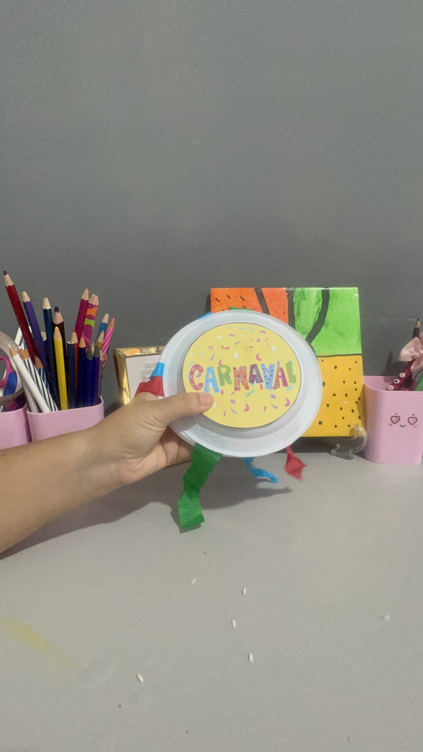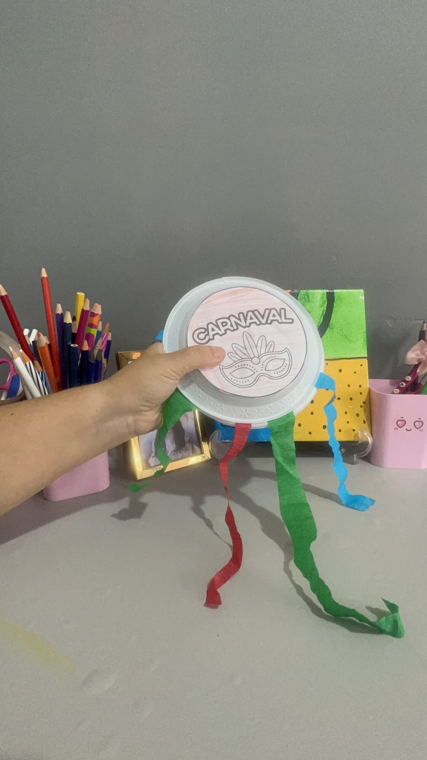 • Como fazer: Relembre os combinados do Dia 1. Cada criança escolhe um adereço (máscara, colar, fita) e faz uma “missão”: cuidar do colega, guardar confete no pote, etc.