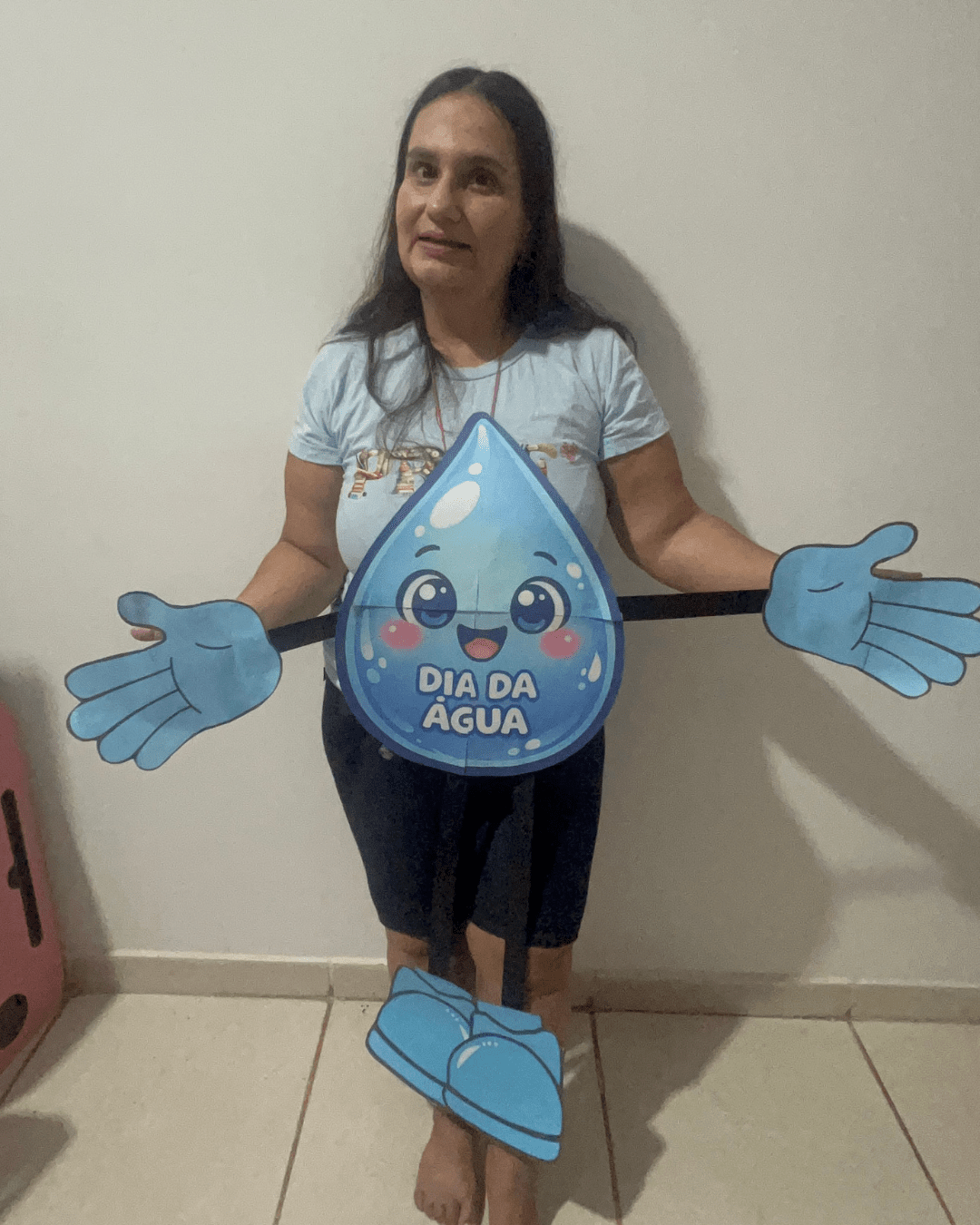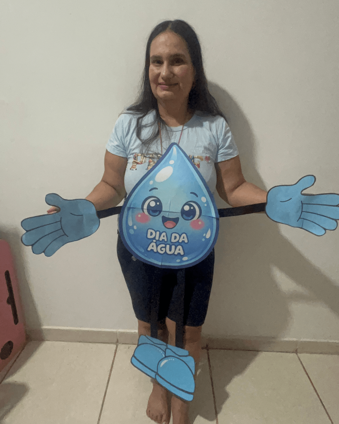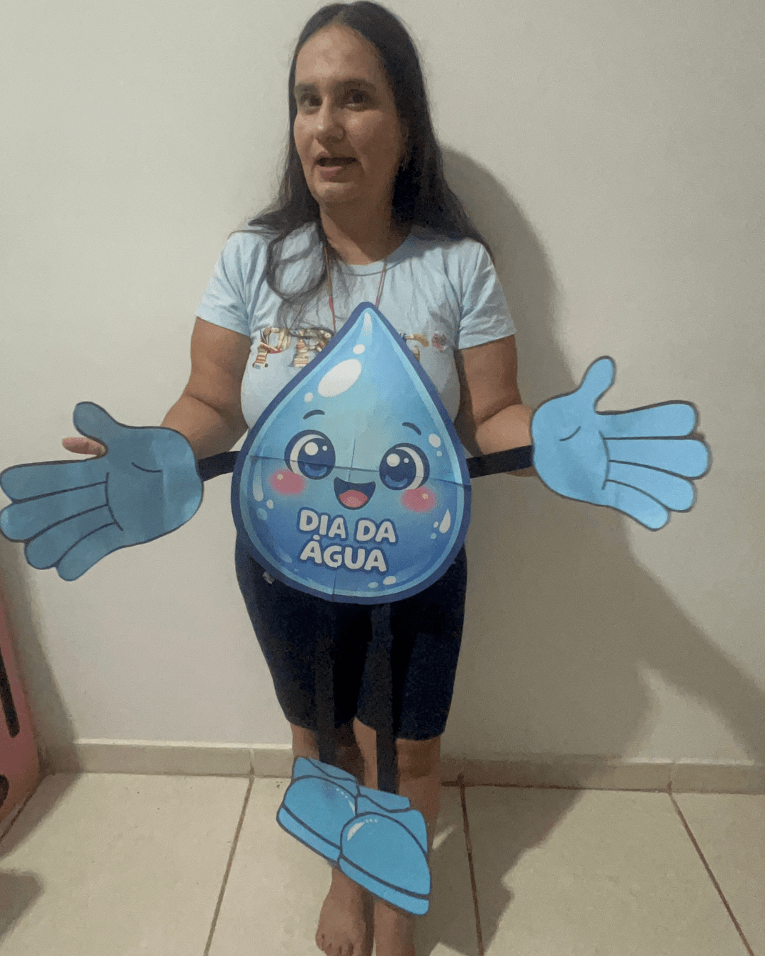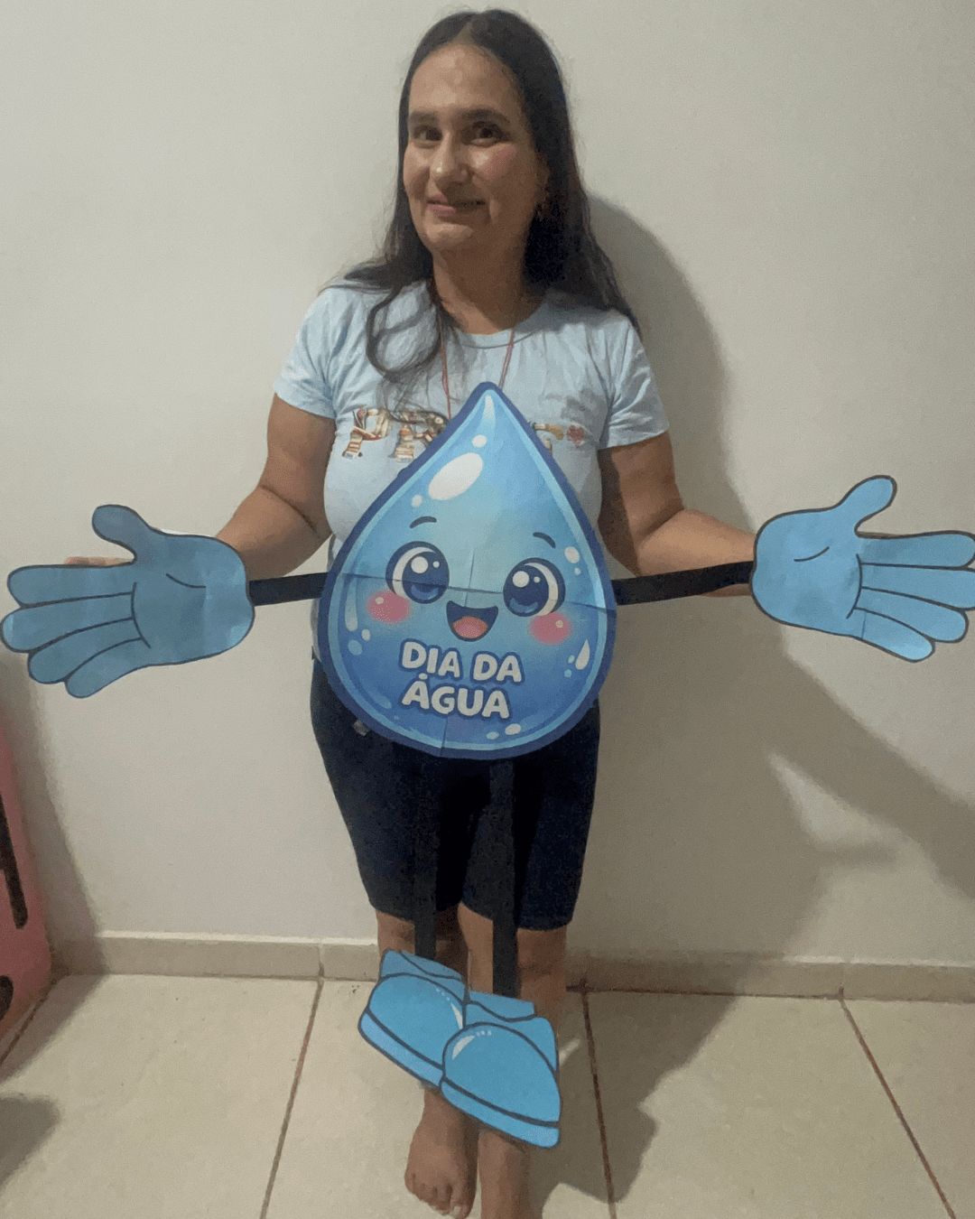 A Gotinha Dançante surge como um recurso pedagógico encantador: um personagem articulado, grande, interativo e cheio de movimento. Ele não é apenas um cartaz. Ele dança, balança, abraça, participa da roda e interage com as crianças. Quando integrado à música “Abraça a Água” (disponível em MP3), o aprendizado ganha ritmo, emoção e significado.