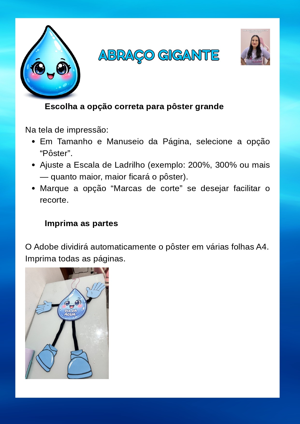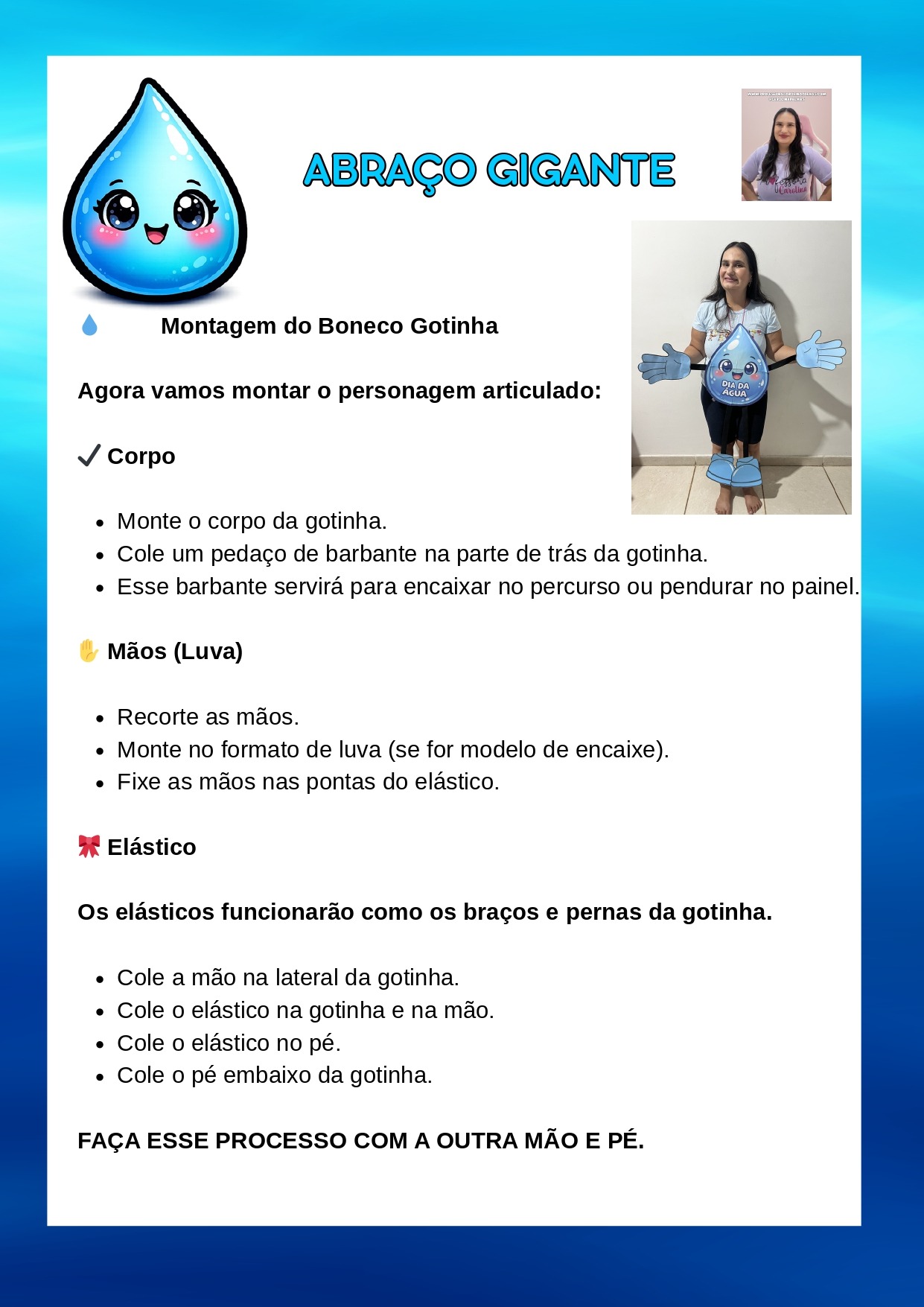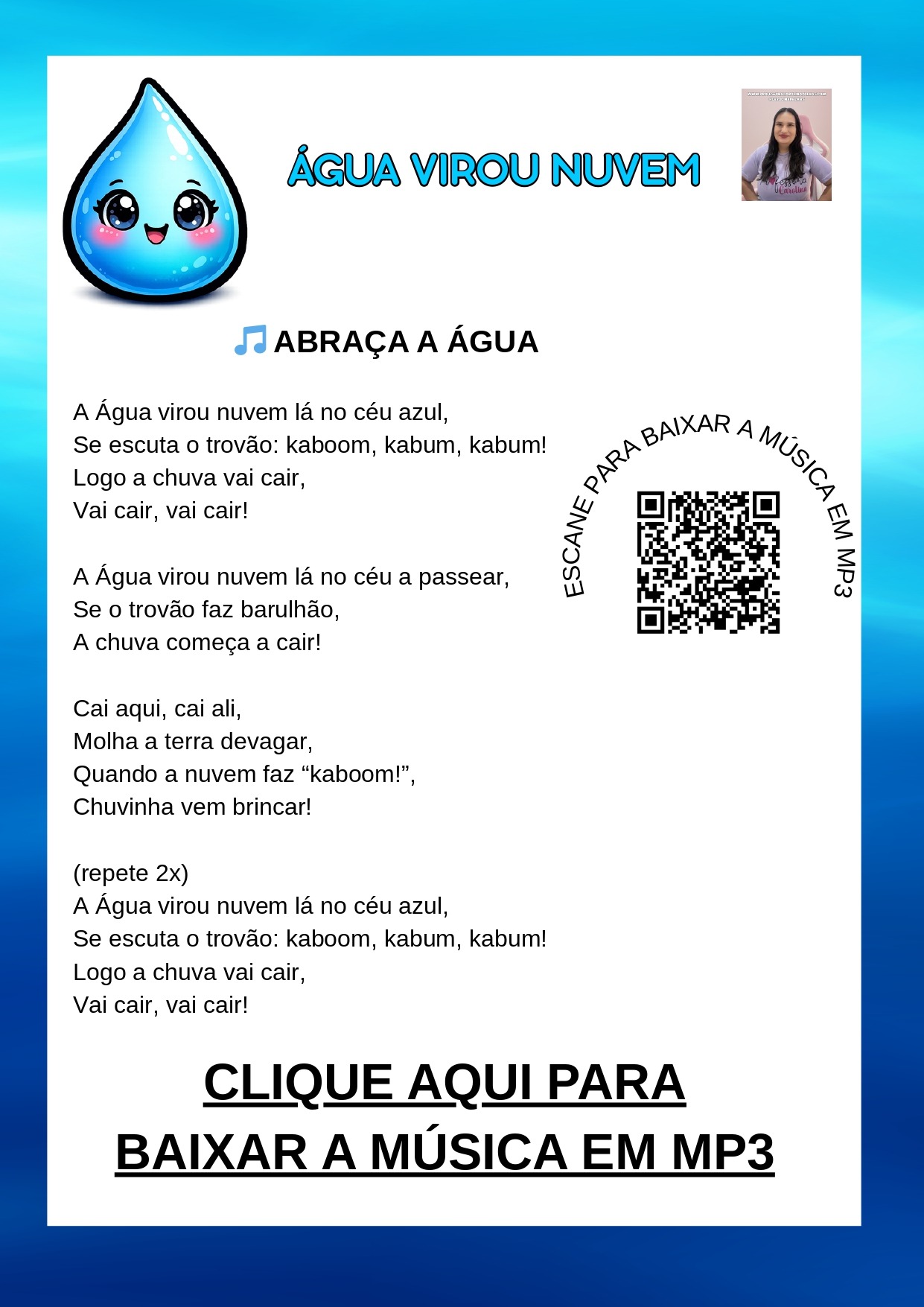 Palavras-chave: gotinha dançante, gotinha dançante dia da água, música água mp3 educação infantil, atividade dia da água educação infantil, ciclo da água infantil, projeto água BNCC, planejamento semanal educação infantil água, atividade lúdica sobre água, personagem articulado água, música infantil sobre chuva, recurso pedagógico dia da água, consciência ambiental infantil, educação ambiental na educação infantil, painel dia da água, atividade com música e movimento infantil