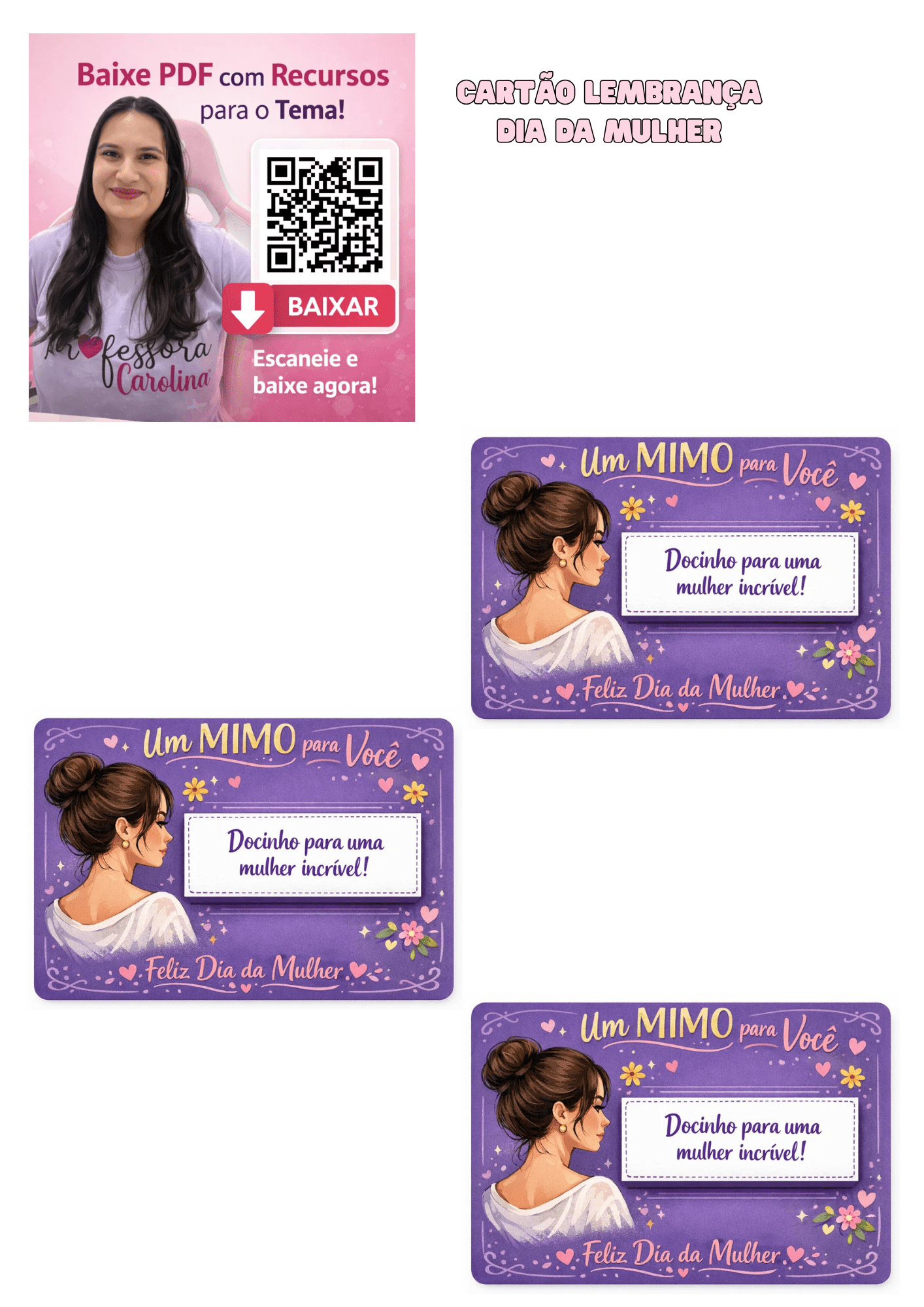 Palavras-chave: cartão lembrancinha dia da mulher, dia da mulher educação infantil, atividade dia da mulher, lembrancinha dia da mulher para imprimir, cartão dia da mulher infantil, planejamento semanal educação infantil, atividades lúdicas dia da mulher, BNCC educação infantil, campos de experiência BNCC, projeto dia da mulher educação infantil, cartão com mimo dia da mulher, arte dia da mulher educação infantil