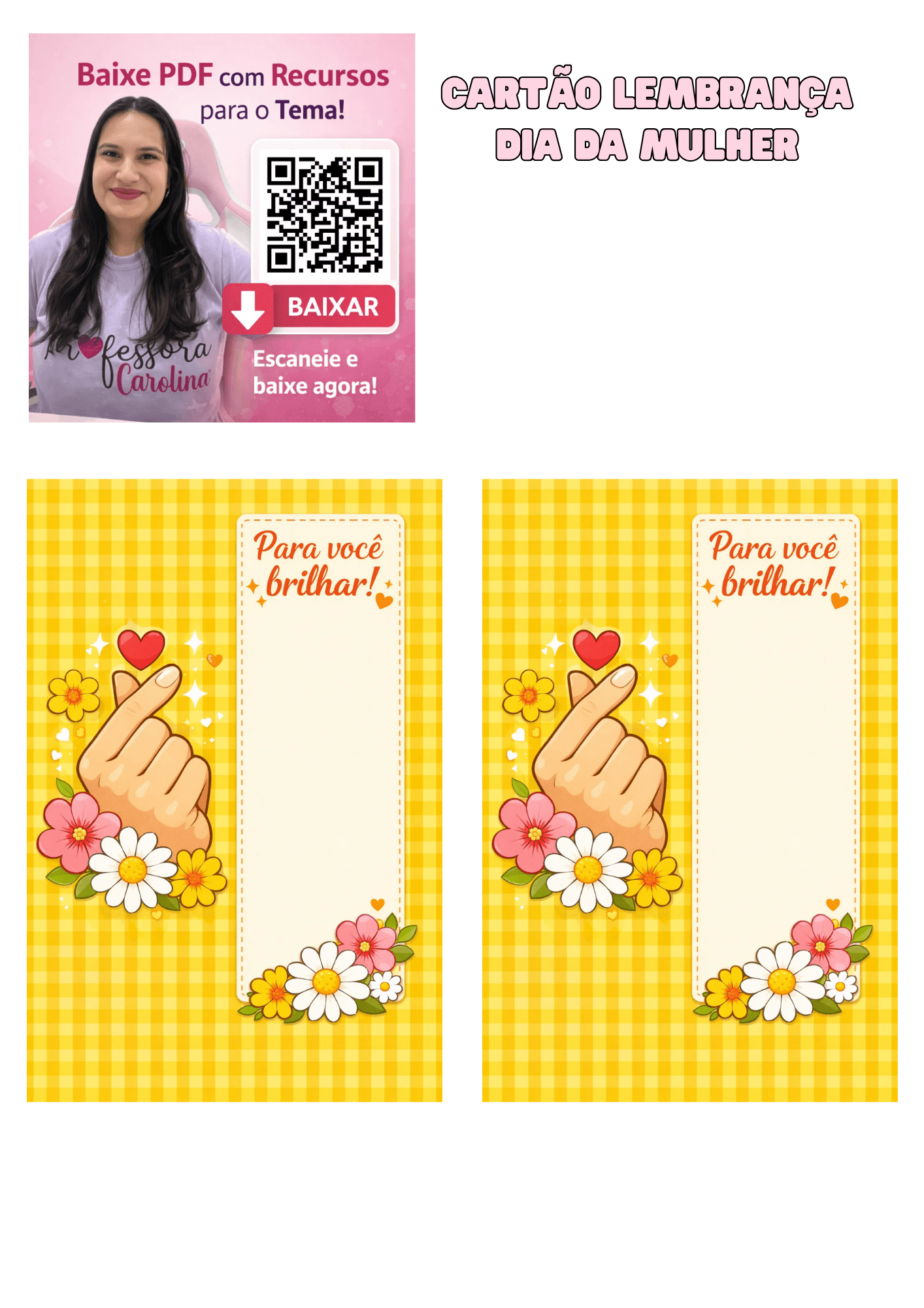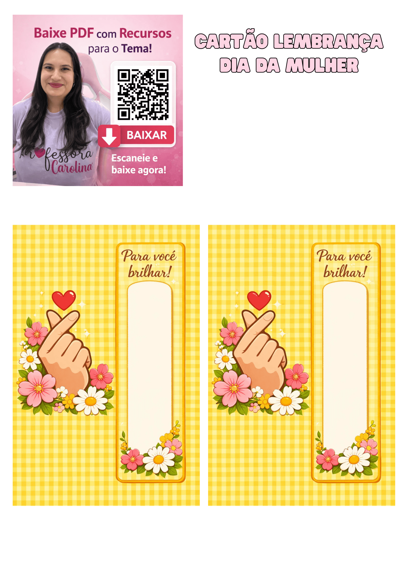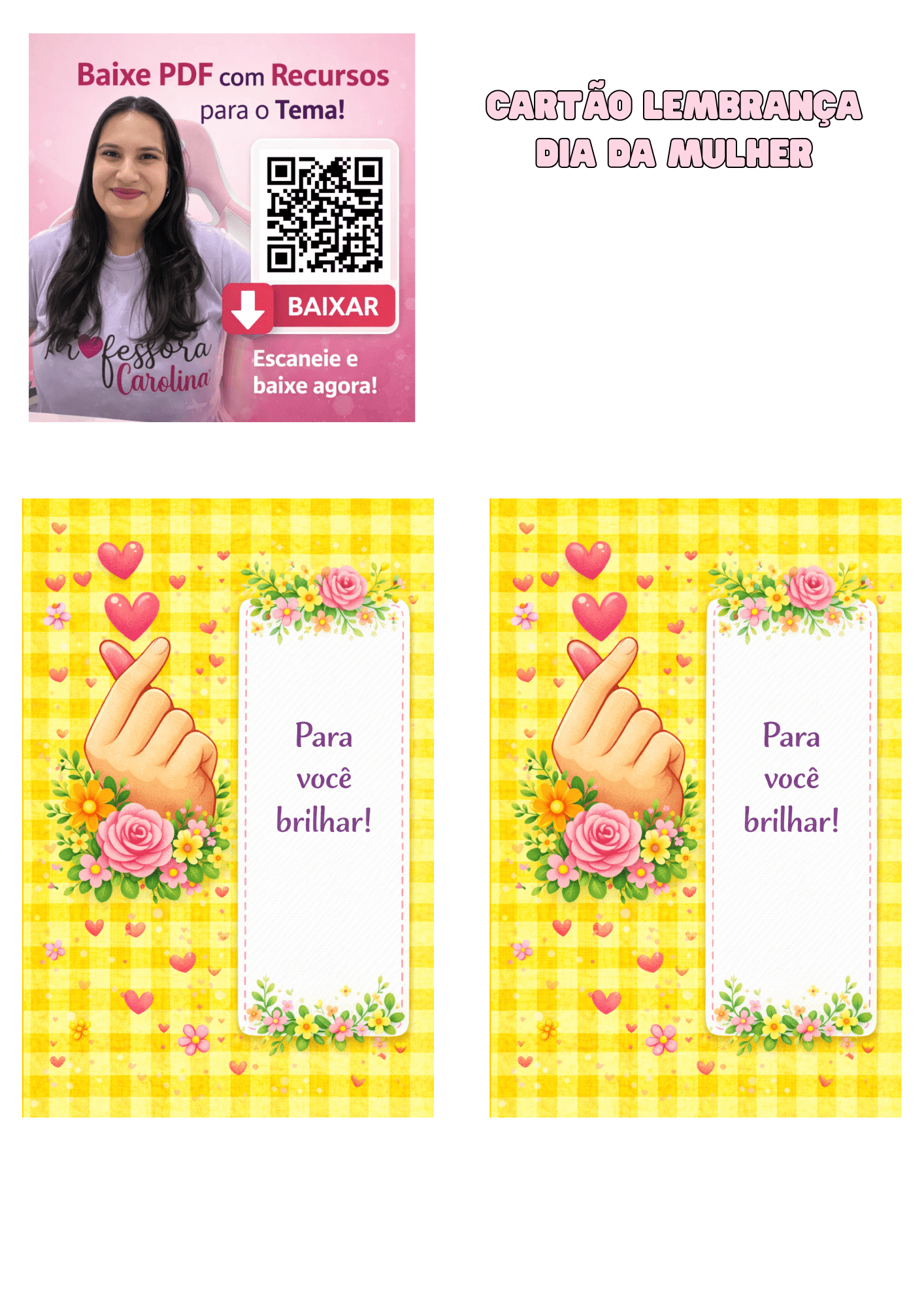 PROJETO: CARTÃO LEMBRANCINHA DIA DA MULHER